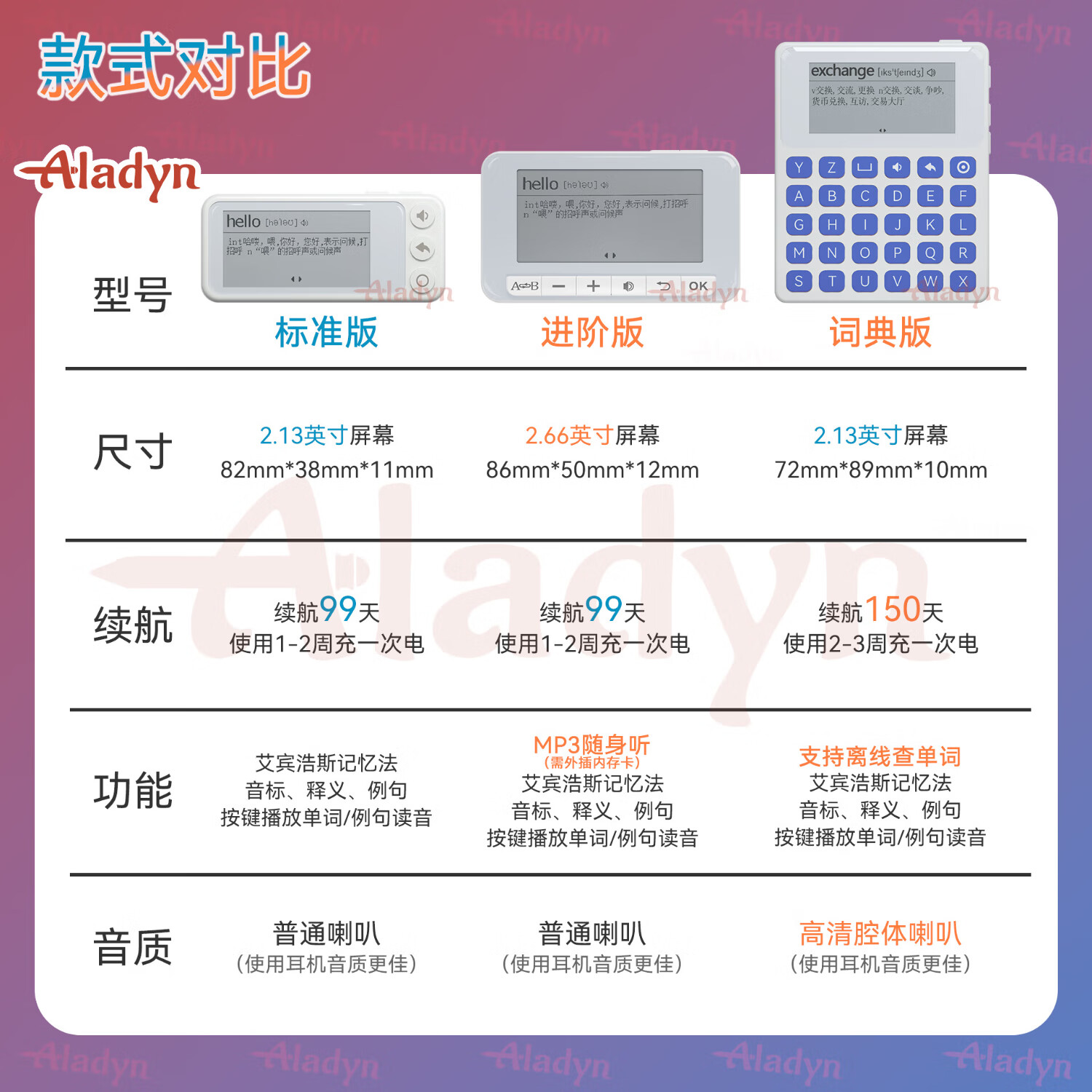 ALADYN English word memory machine for primary school students Standard version word machine* (white) Standard version word machine + protective cover