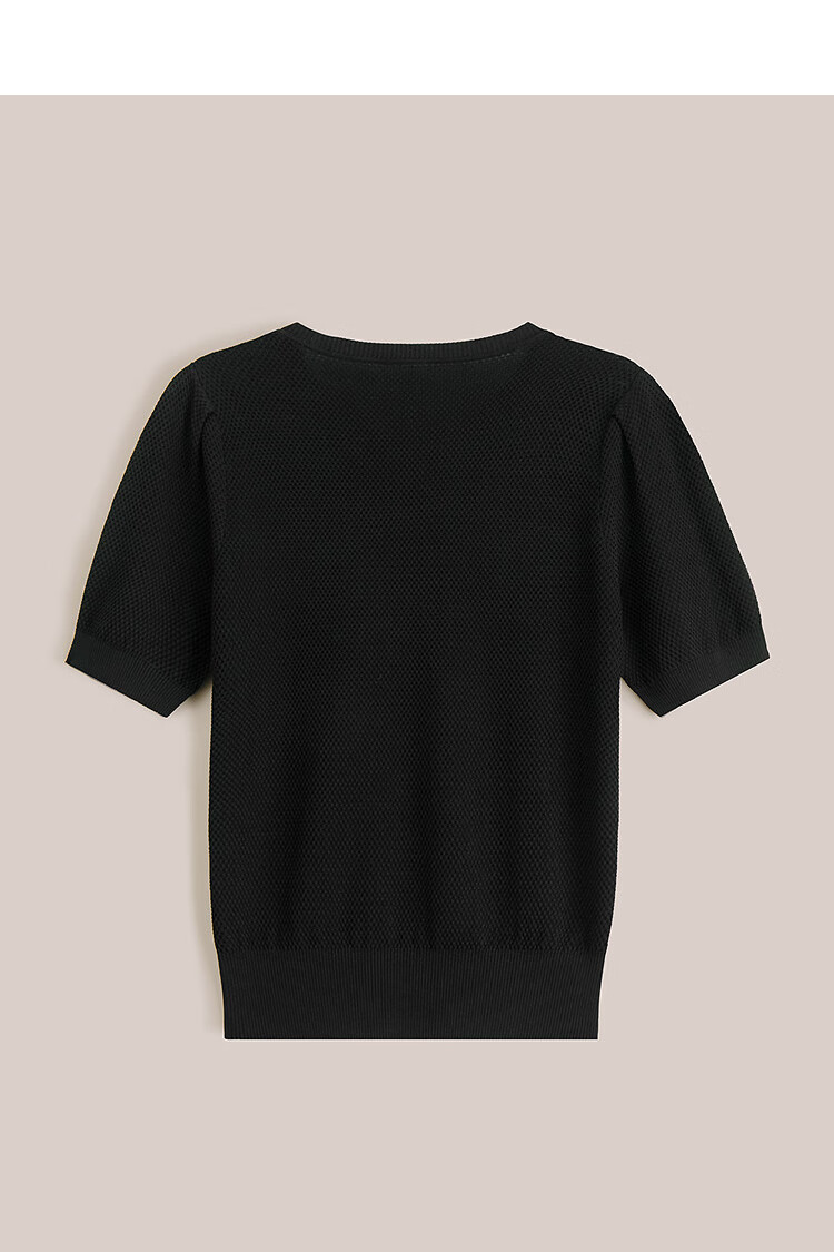 OBBLIGATO Olivia summer round neck hand-beaded waffle sweater black sweater S