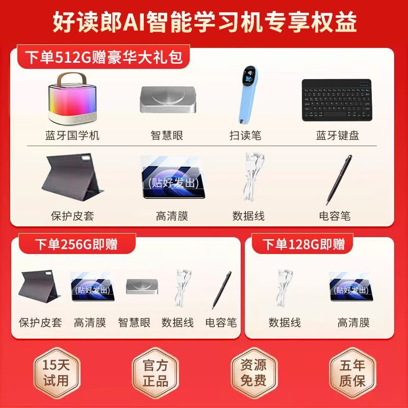 Haoduluang S90Pro comprehensive learning machine, tablet, children's students from primary school to high school education and guidance, early education learning machine, practice machine, point reading machine, tutoring machine, companion learning machine, word machine, flagship version + 512G, free scanning pen + Bluetooth keyboard... 8-piece set