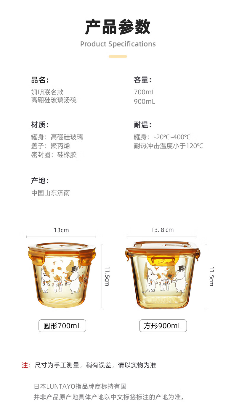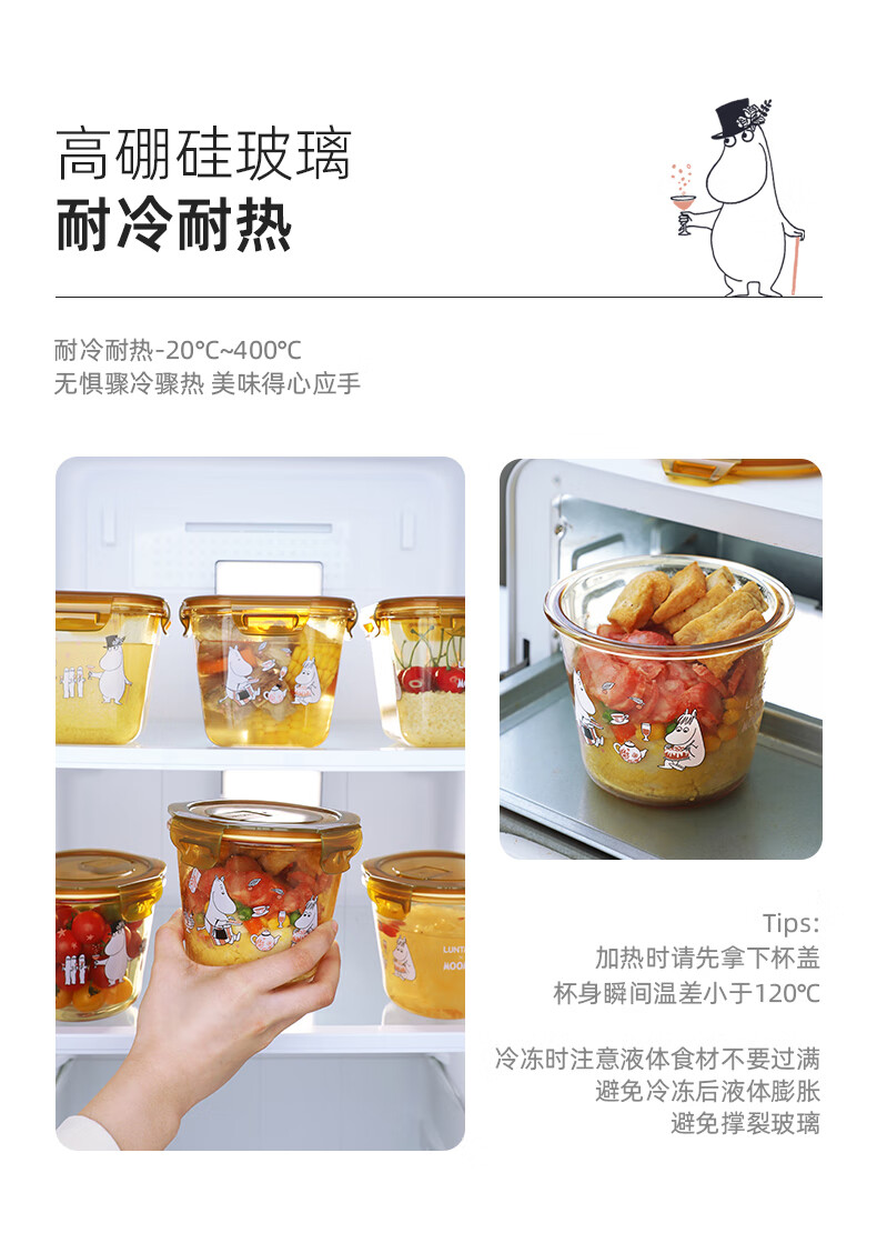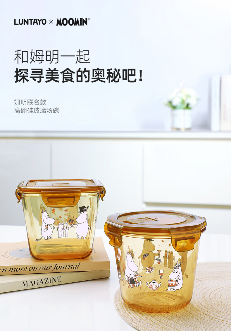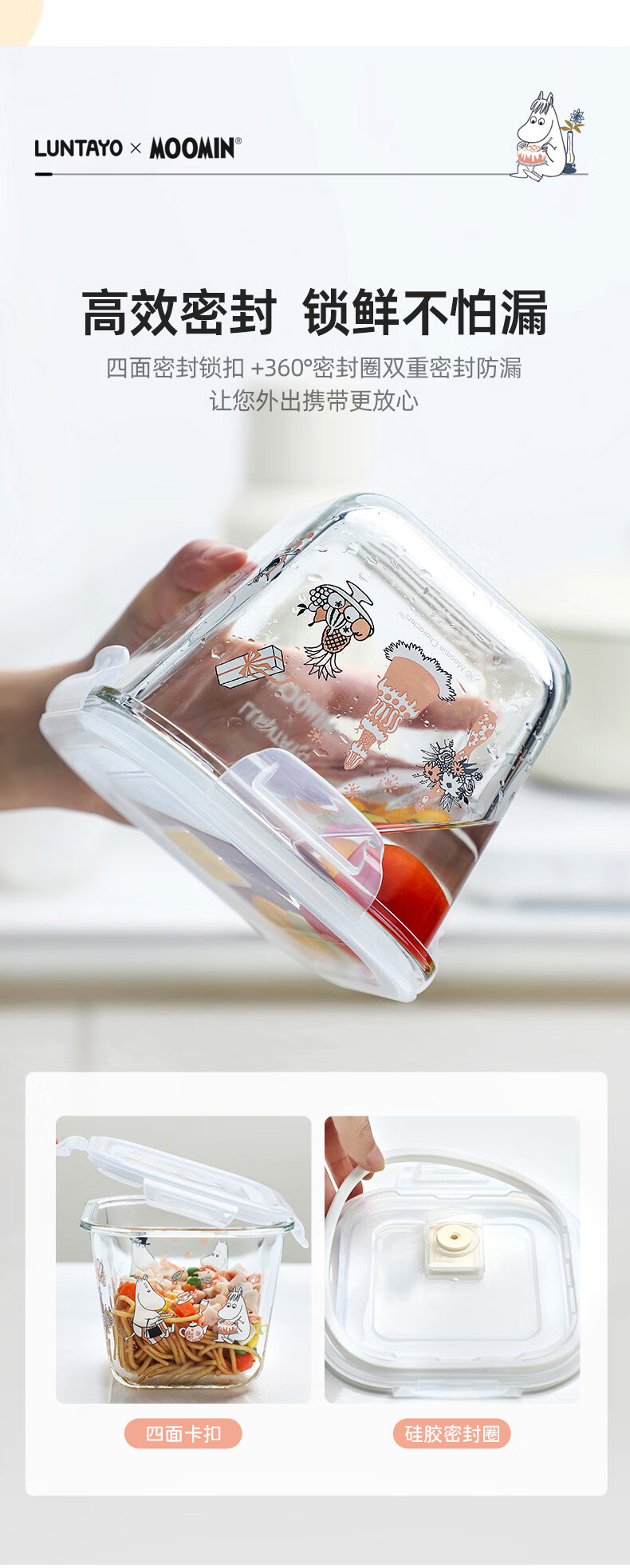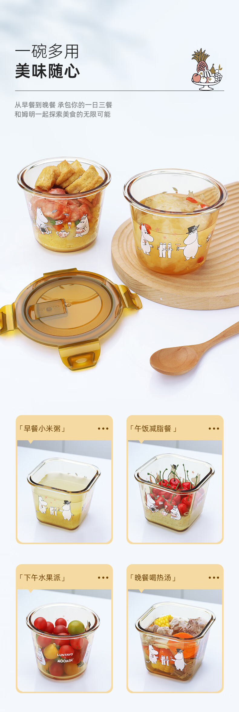 LUNTAYO Moomin co-branded heat-resistant glass food preservation box, fat-reducing meal box, lunch box, refrigerator storage box, sealed jar, brown round 700ml single pack
