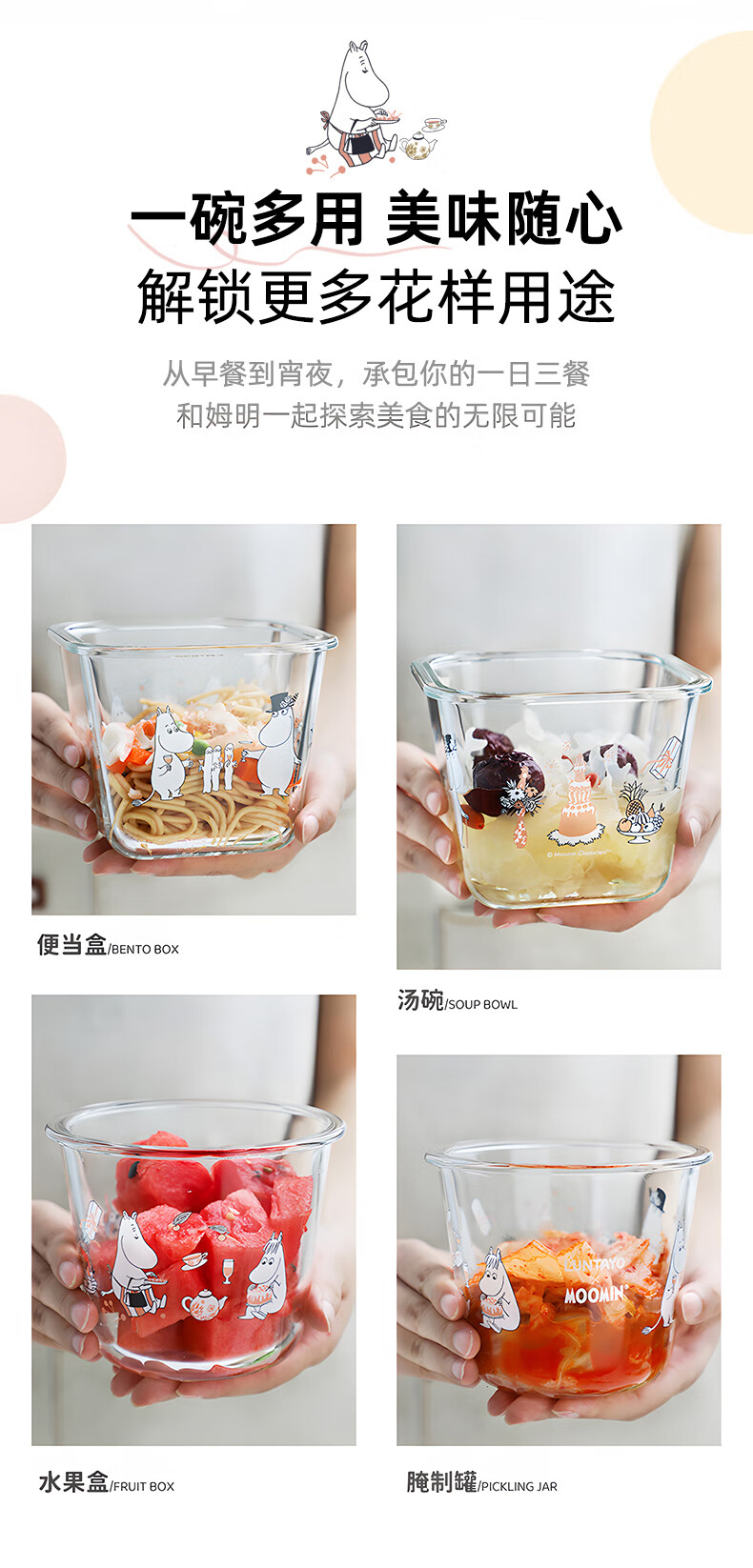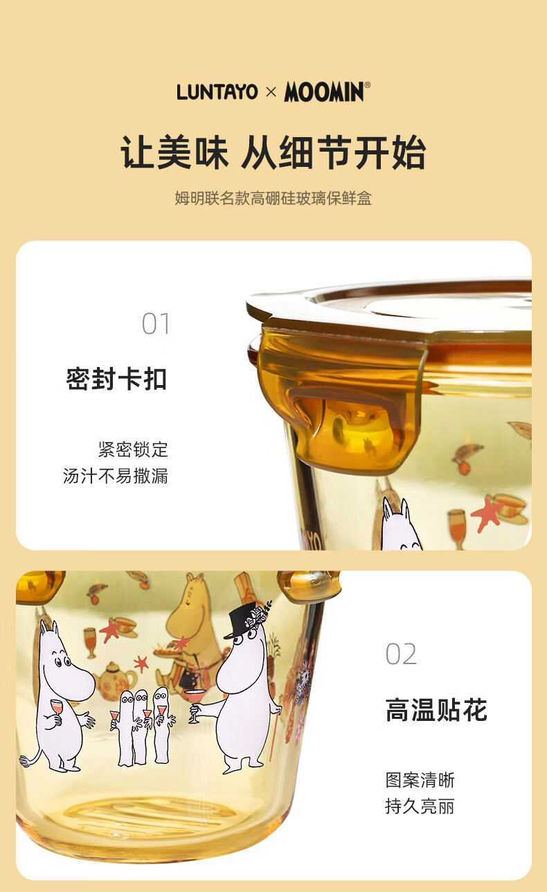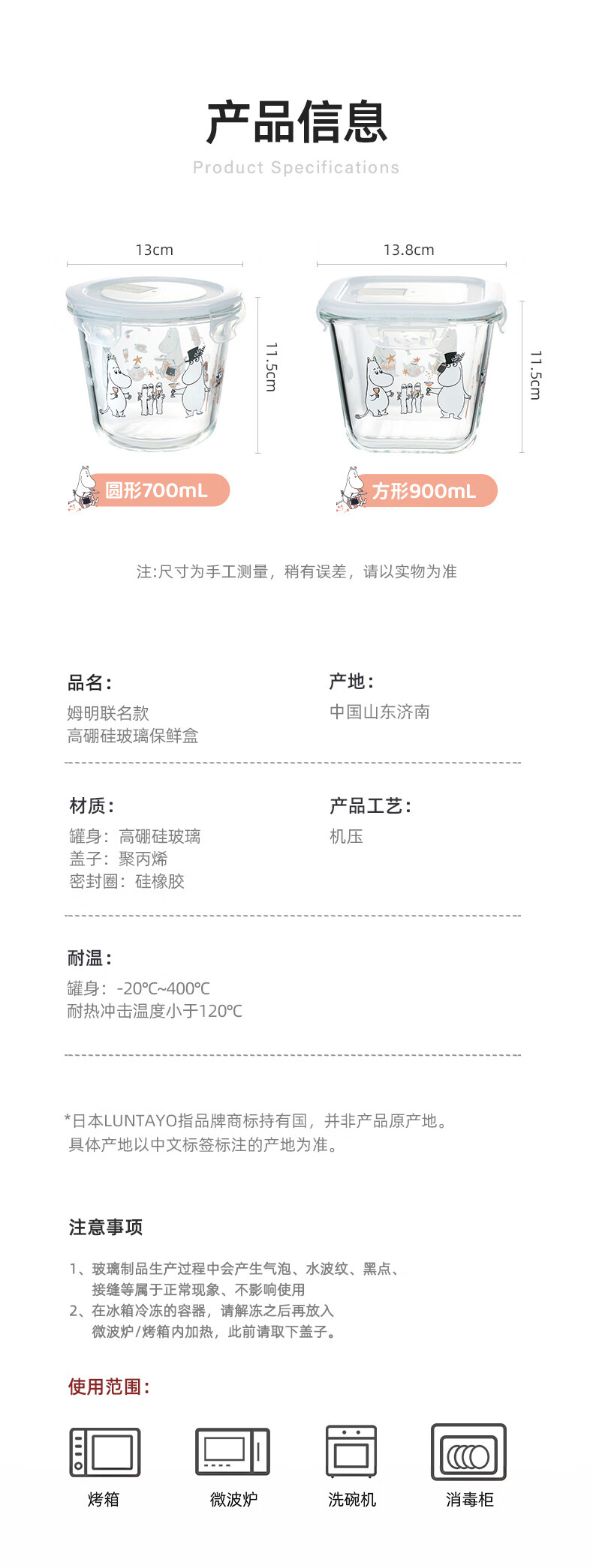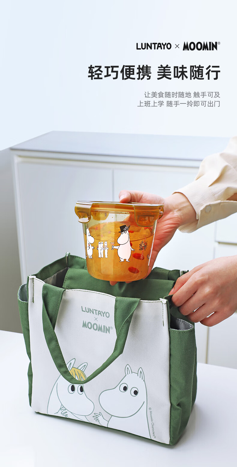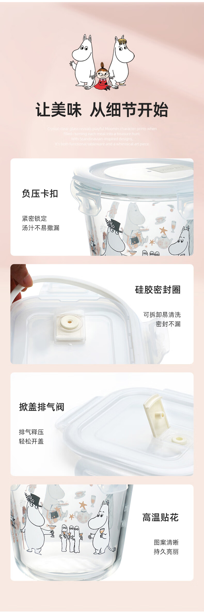 LUNTAYO Moomin co-branded heat-resistant glass food preservation box, fat-reducing meal box, lunch box, refrigerator storage box, sealed jar, brown round 700ml single pack