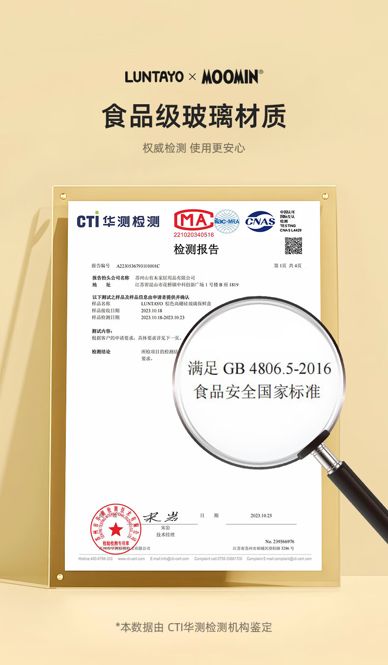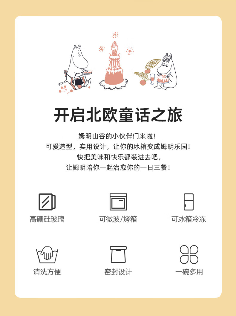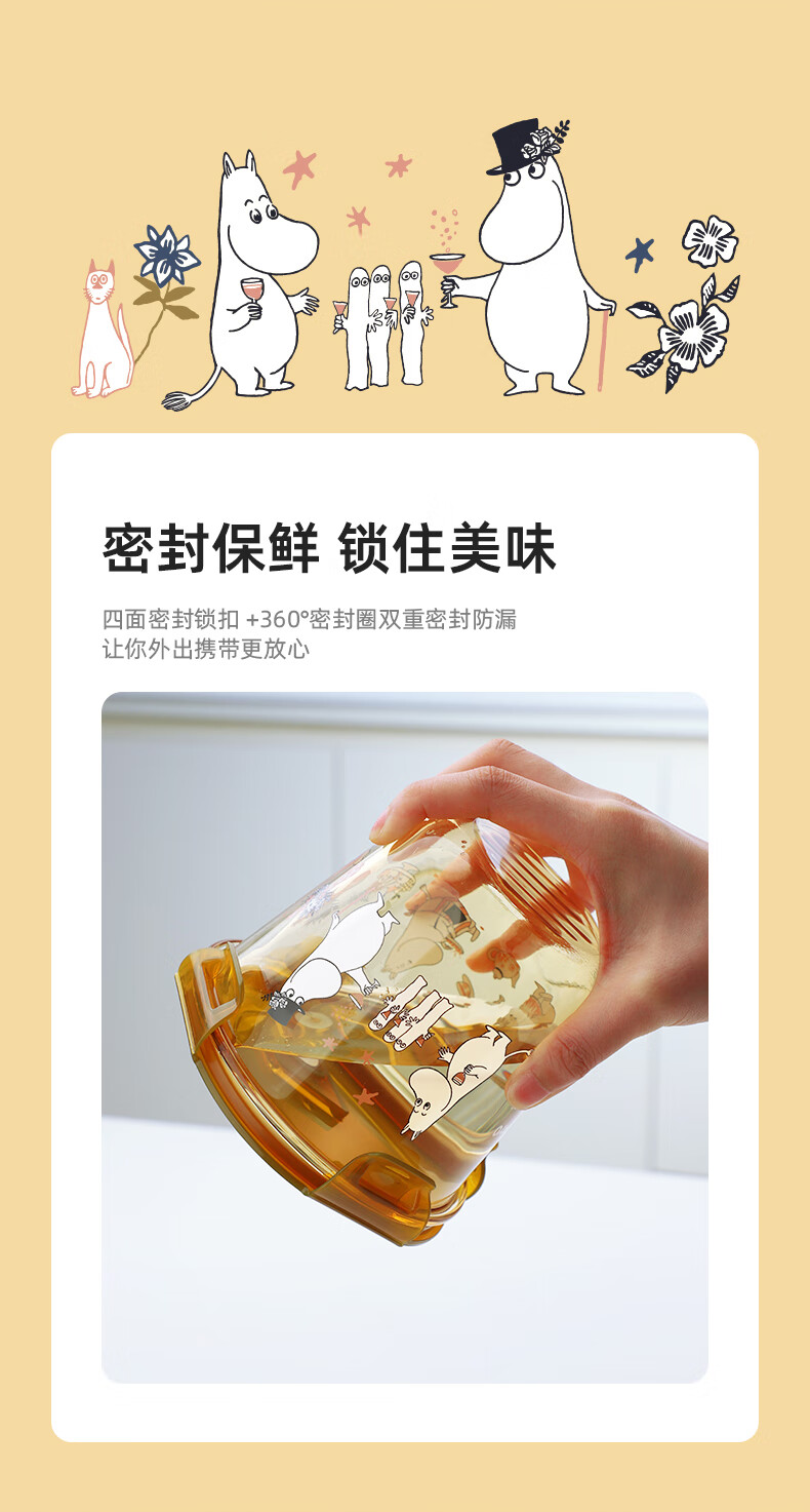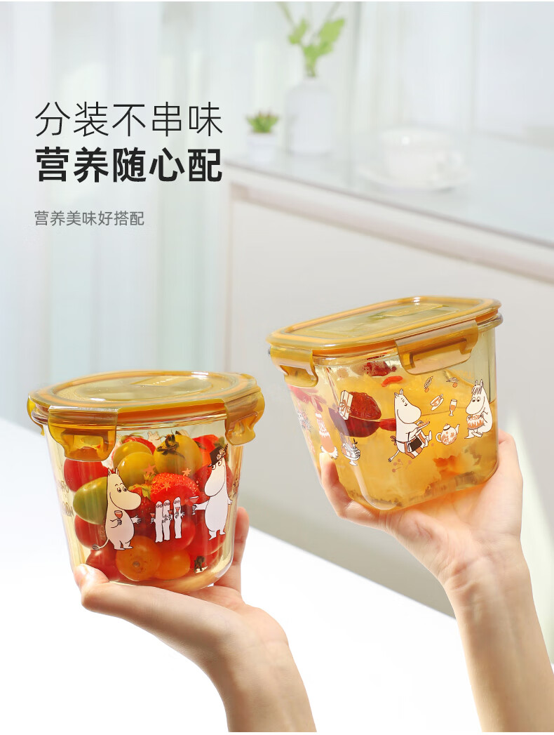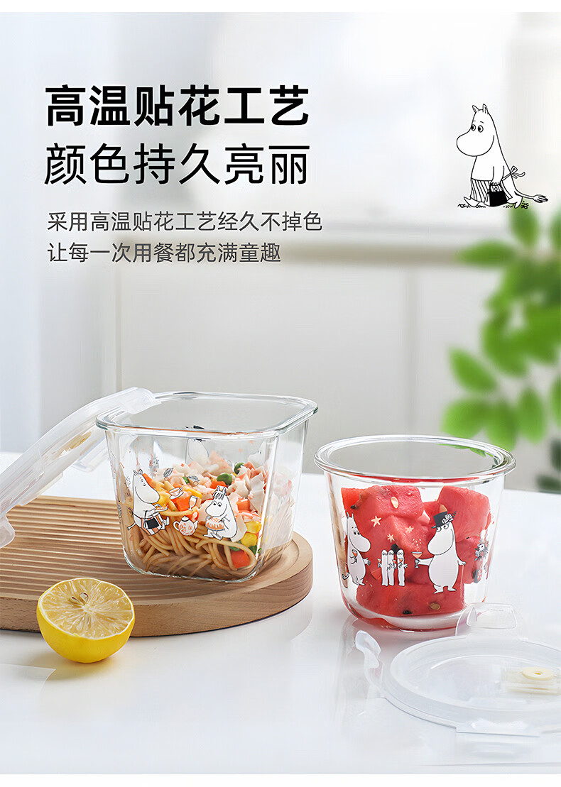 LUNTAYO Moomin co-branded heat-resistant glass food preservation box, fat-reducing meal box, lunch box, refrigerator storage box, sealed jar, brown round 700ml single pack