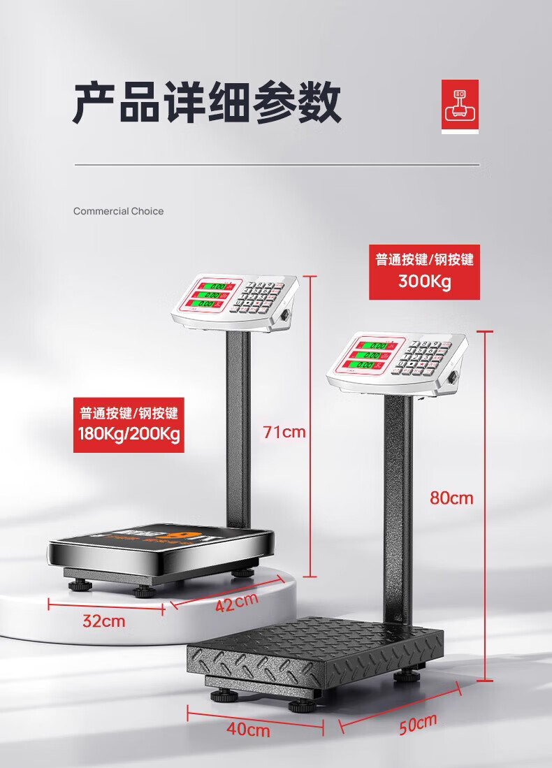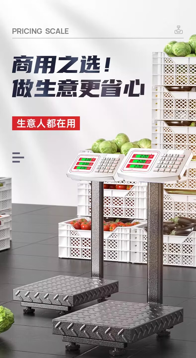 Export to domestic sales electronic scale commercial precision platform scale weighing household food high-precision stall scale 200kg0.01kg black letter steel key 32*42cm