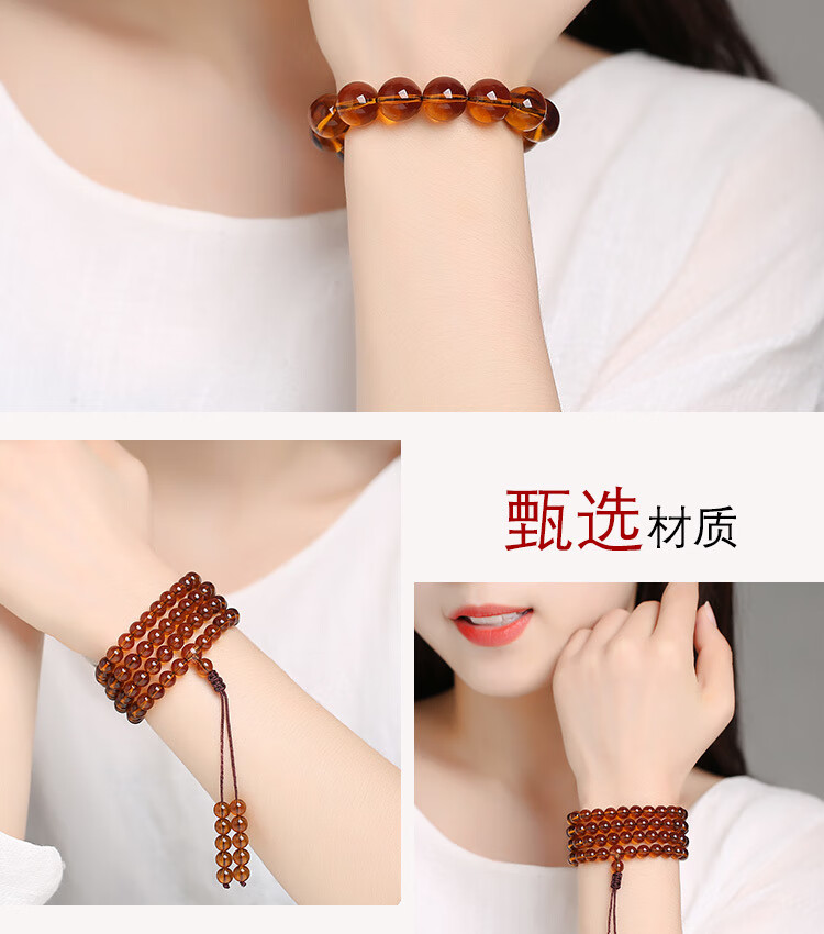 DRJEFUN natural authentic beeswax amber Burmese tea amber bracelet color changing blue amber sweater chain for men and women tea amber single circle 10mm
