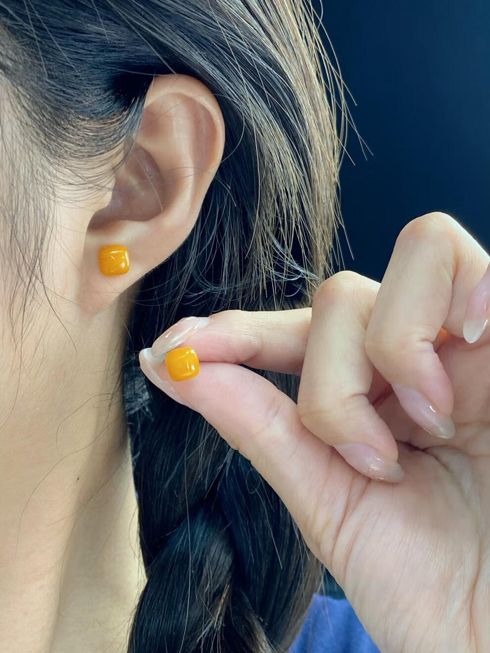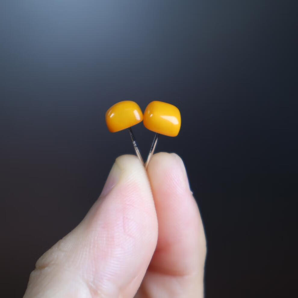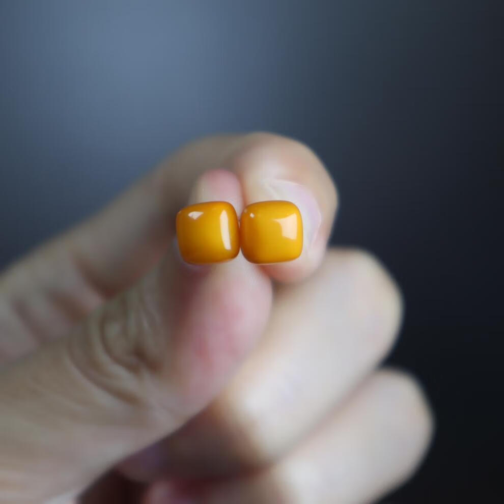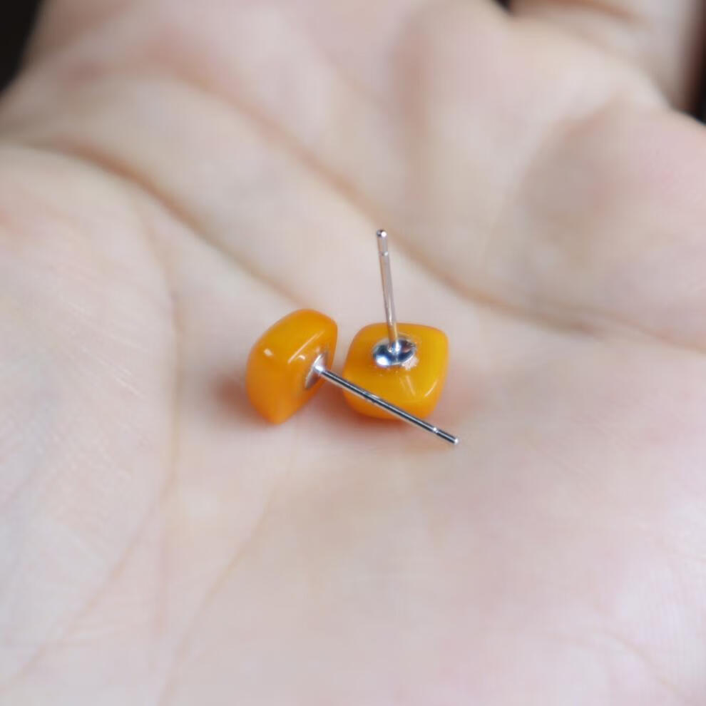 Fat Donglai's same style beeswax earrings natural old chicken oil yellow 6mm small sugar cube silver inlaid earrings for women simple daily basic beeswax small sugar cube earrings