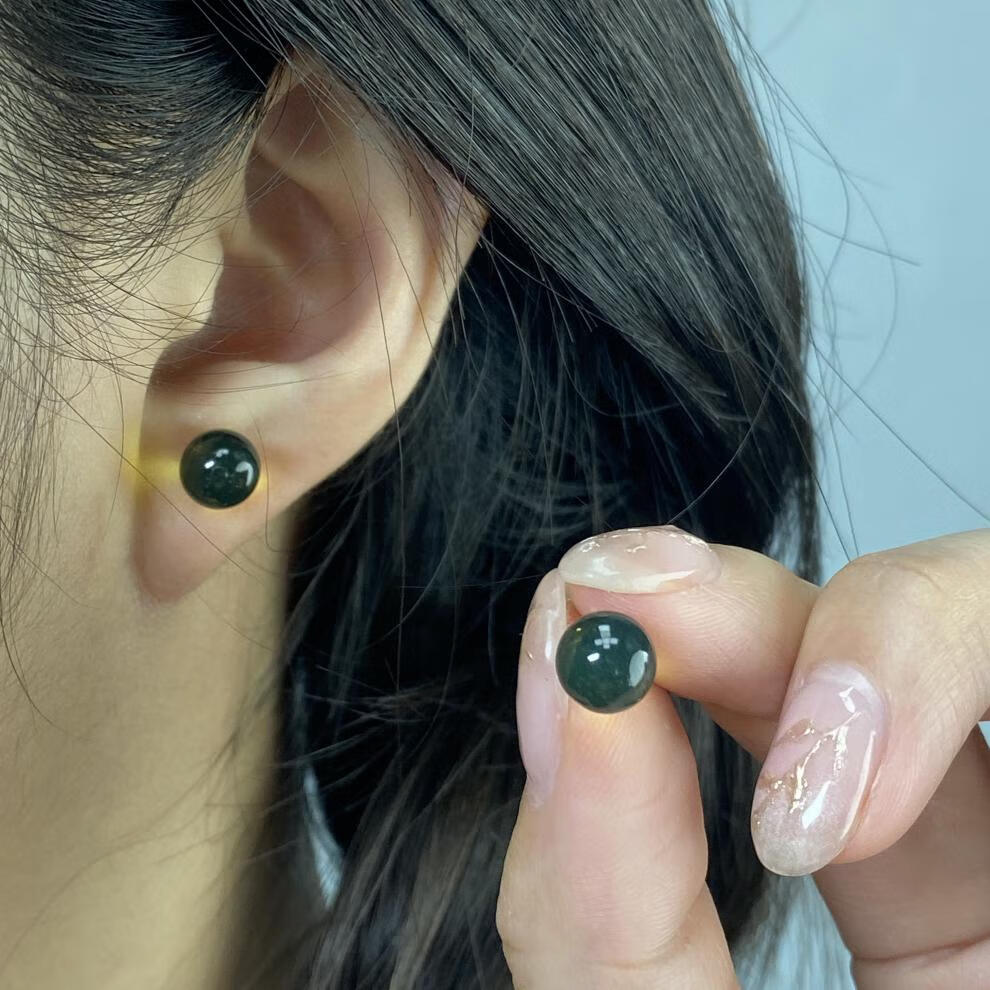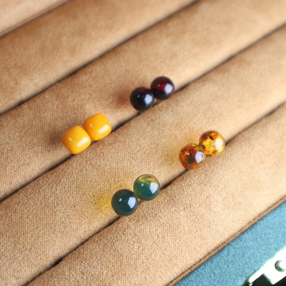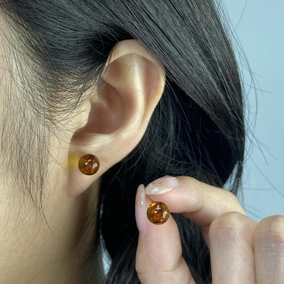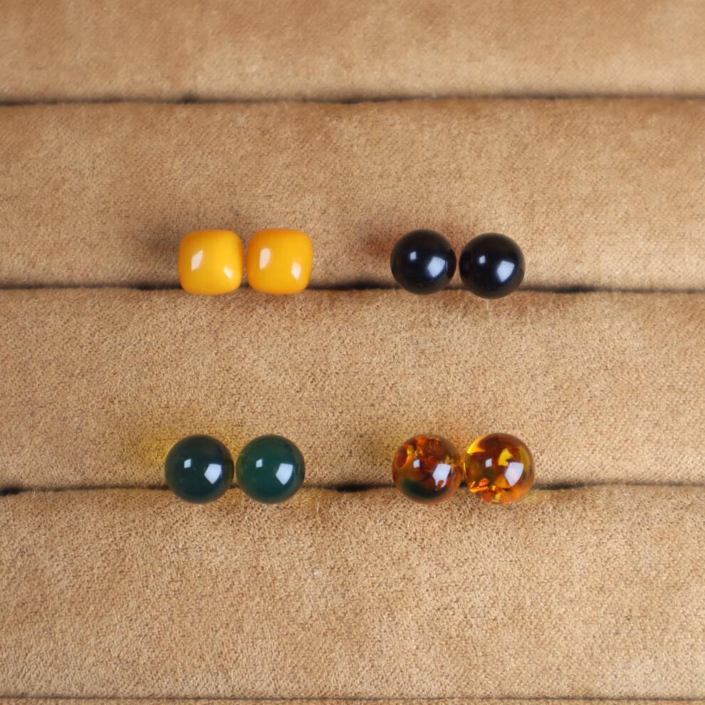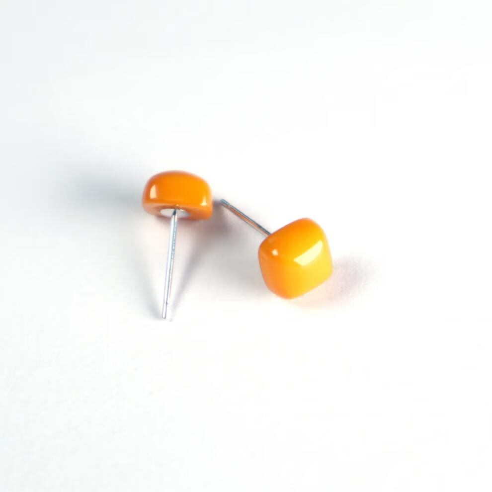 Fat Donglai's same style beeswax earrings natural old chicken oil yellow 6mm small sugar cube silver inlaid earrings for women simple daily basic beeswax small sugar cube earrings