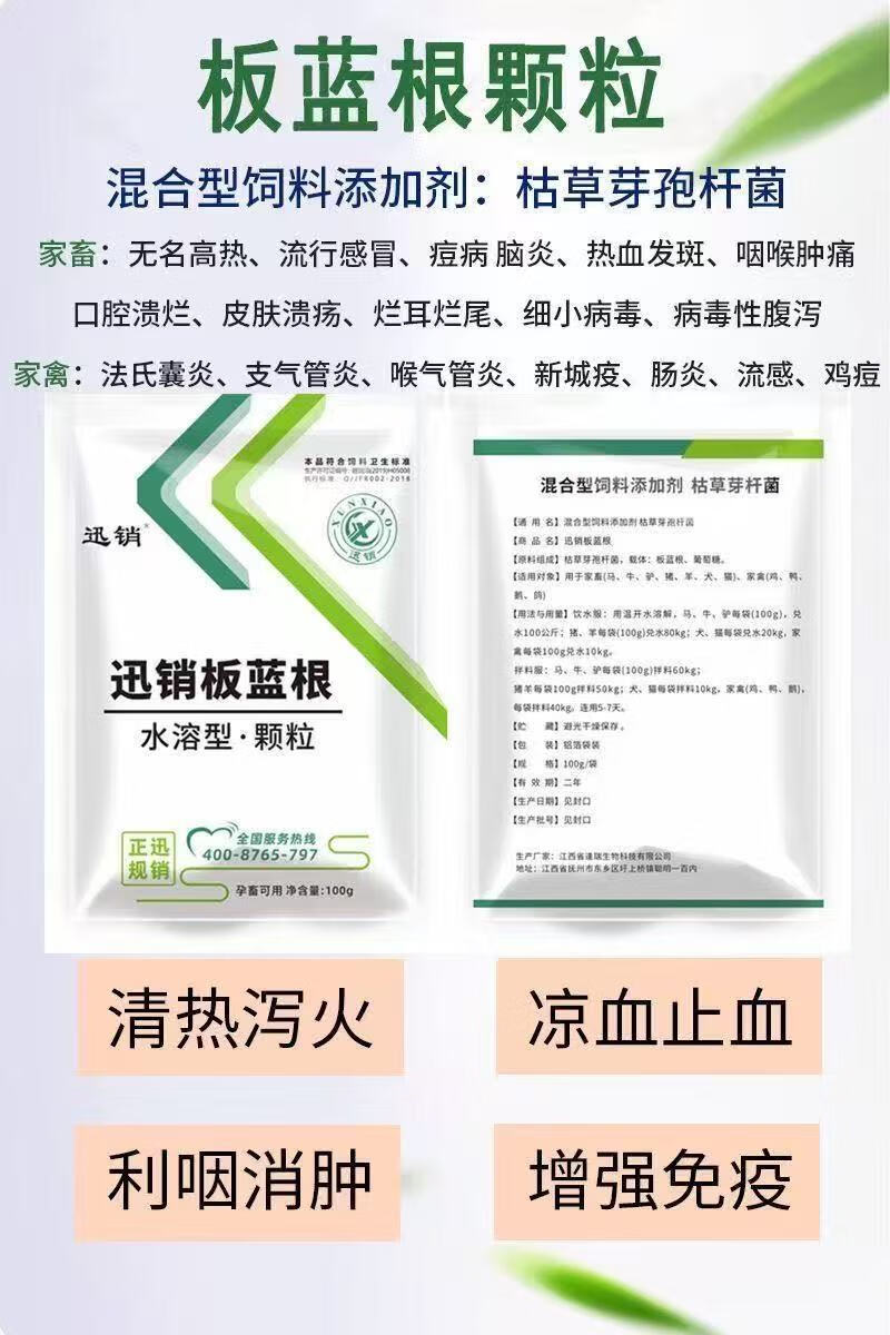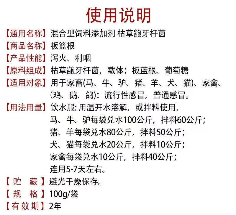 Fast selling veterinary isatis granules pig, beef, sheep, chicken, duck and goose feed additive for clearing away heat, detoxifying, cold, fever, reducing swelling and soothing throat, 10 packs, get 2 packs free (12 packs for real delivery)