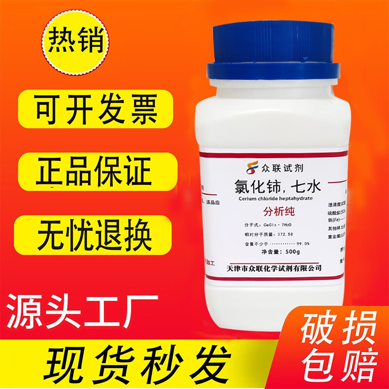 Cerium chloride, cerium chloride heptahydrate, cerium trichloride 500gAR analytical pure experimental reagent 25g, spot ready, Tianjin Zhonglian cerium chloride 25g
