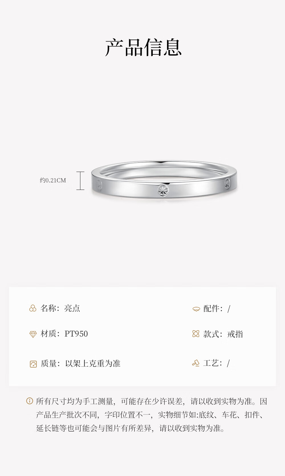 Ming brand jewelry platinum ring PT950 simple platinum highlight ring gift for women BFM0089 platinum ring size 16 about 1.91 grams