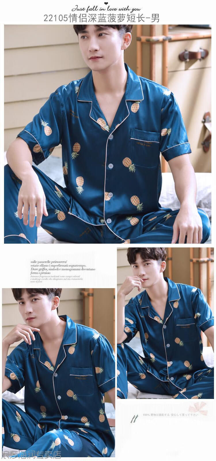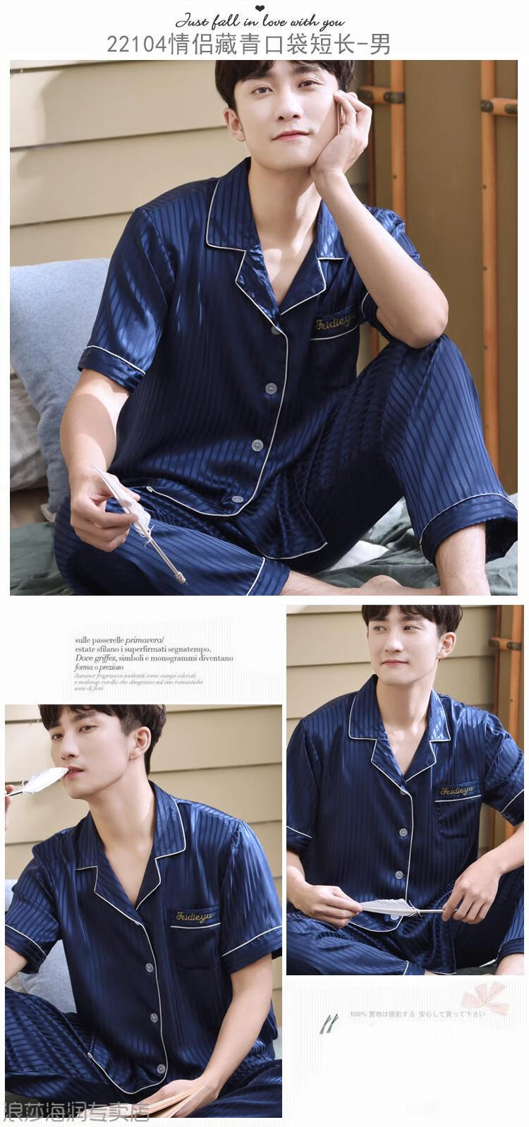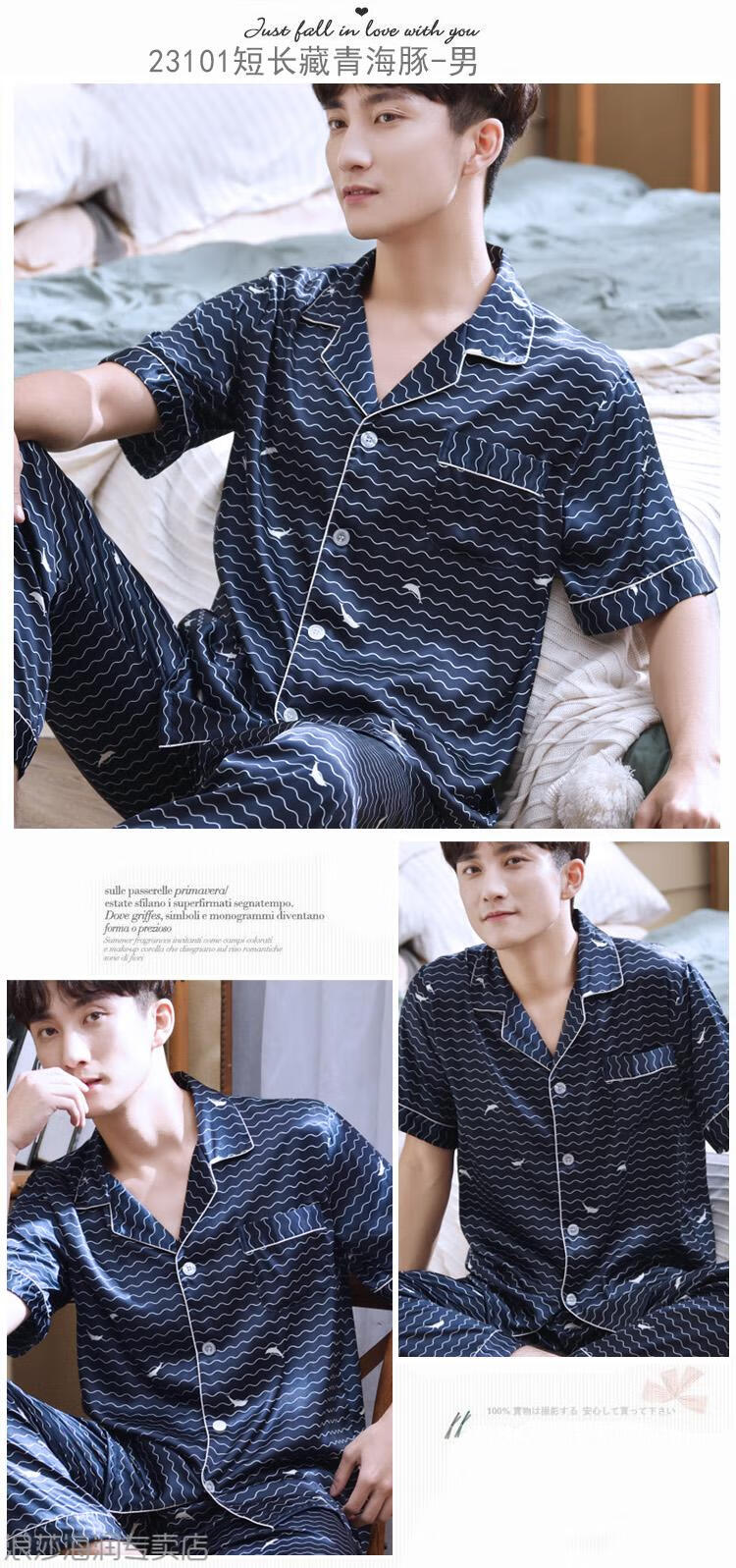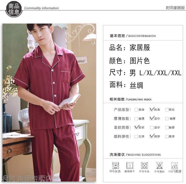 LangSha Light Luxury Summer Men's Pajamas Men's Summer Thin Short-Sleeved Ice Silk Suit Home Clothes Large Size Trousers Spring and Autumn Cardigan 23103 Short Long Black Bottom Red Flower-Male 2XL (145~160Jin Jin is equal to 0.5 kg)