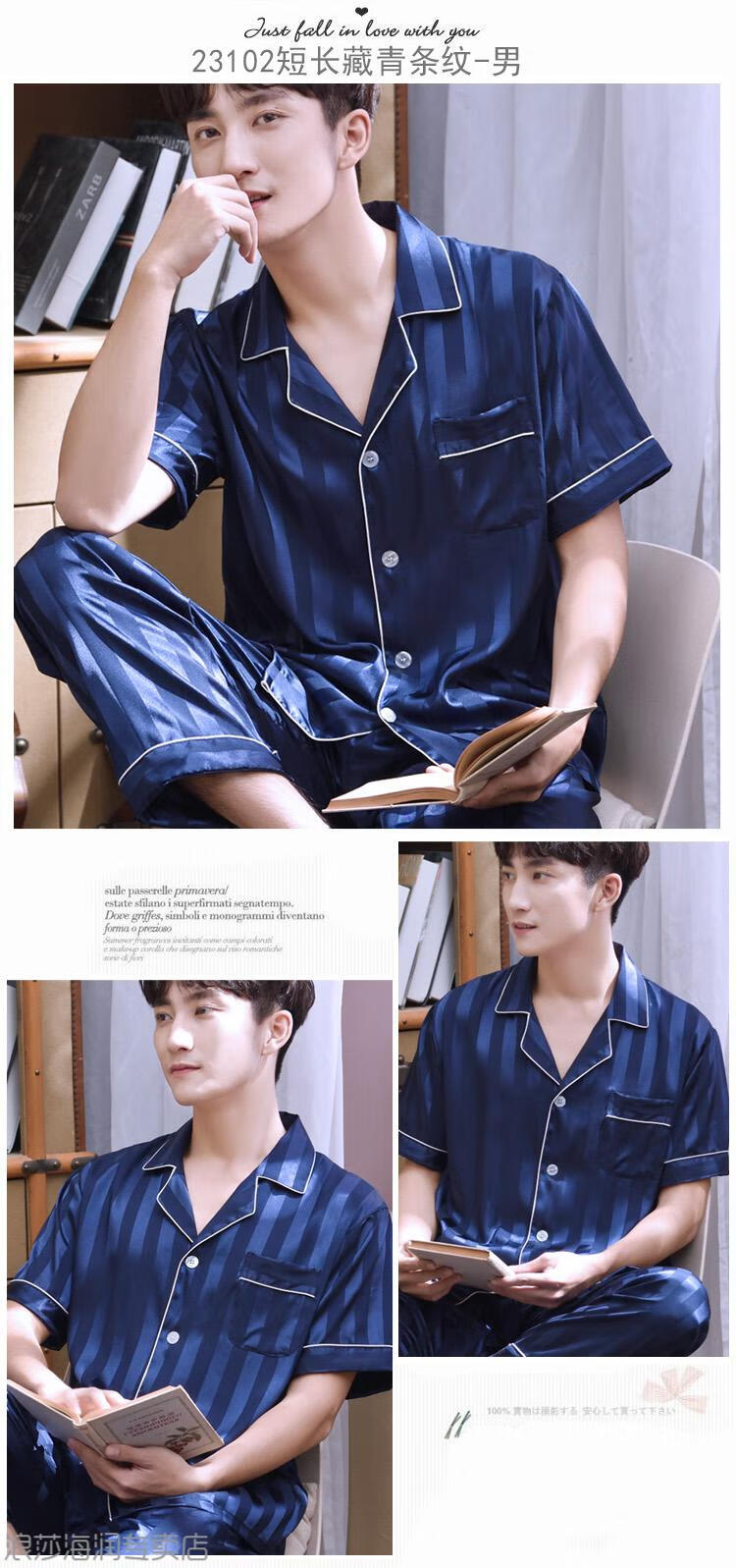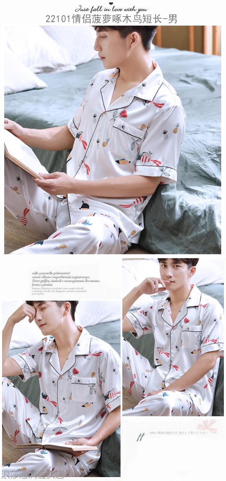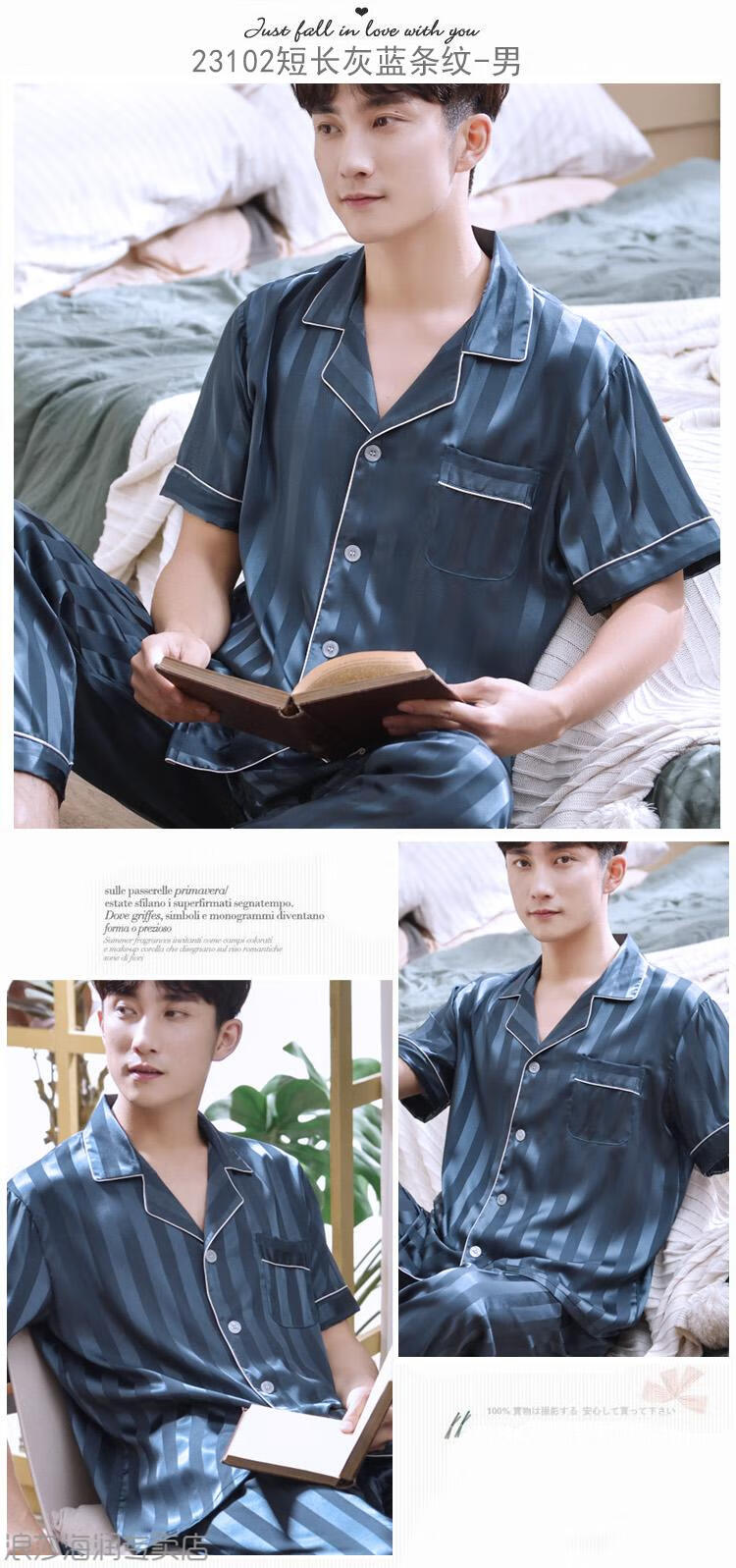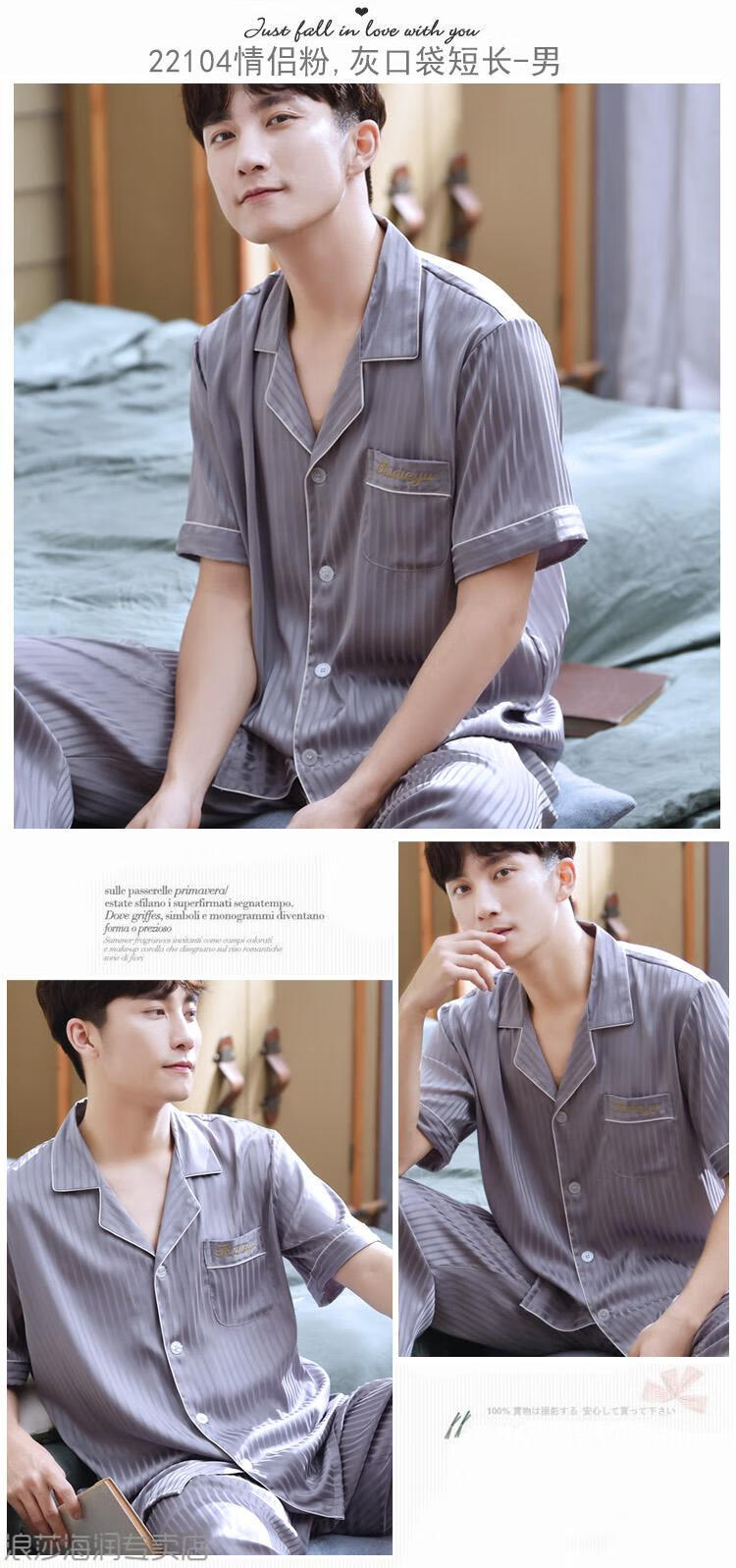 LangSha Light Luxury Summer Men's Pajamas Men's Summer Thin Short-Sleeved Ice Silk Suit Home Clothes Large Size Trousers Spring and Autumn Cardigan 23103 Short Long Black Bottom Red Flower-Male 2XL (145~160Jin Jin is equal to 0.5 kg)