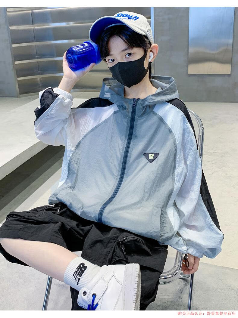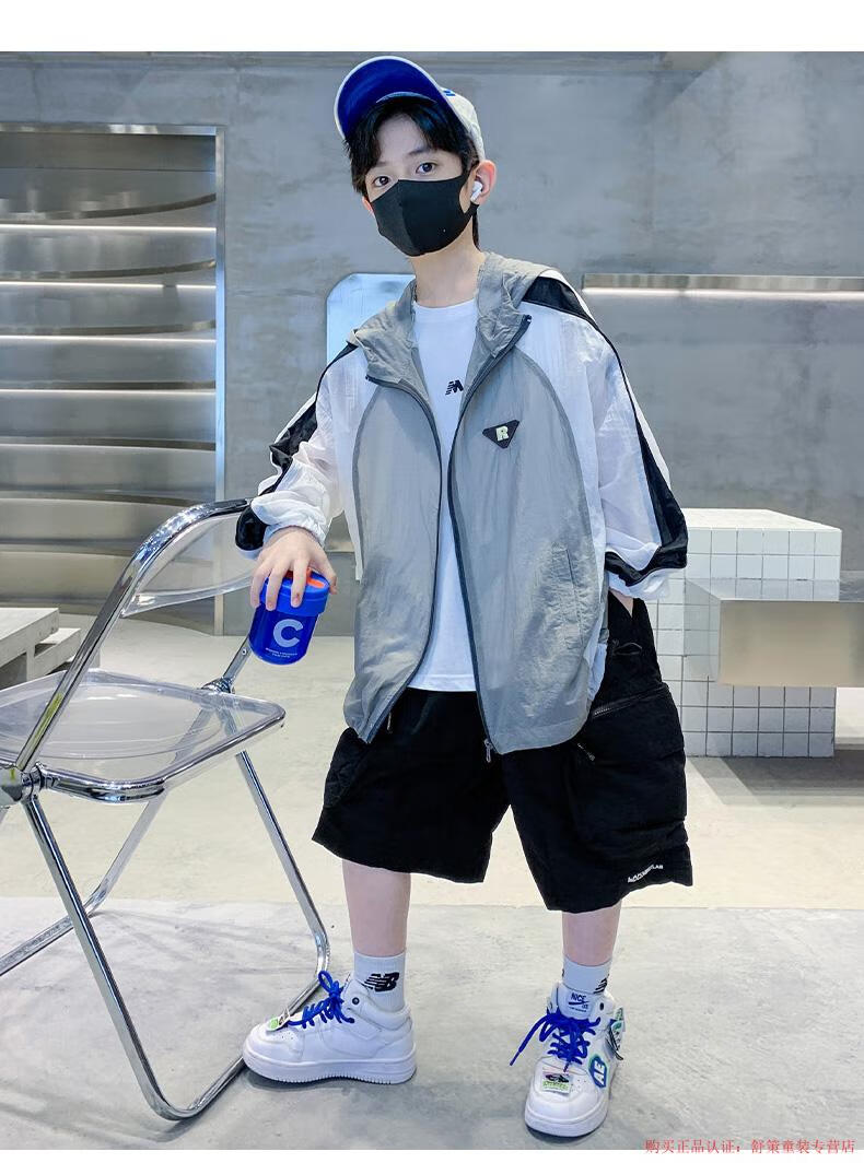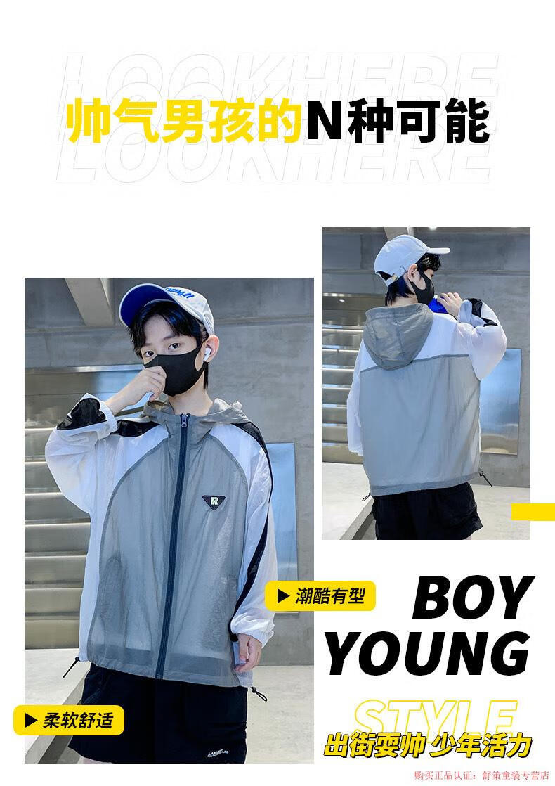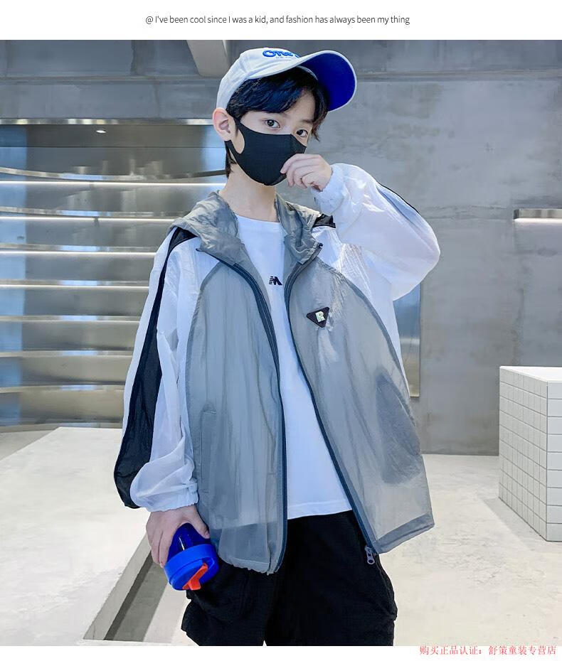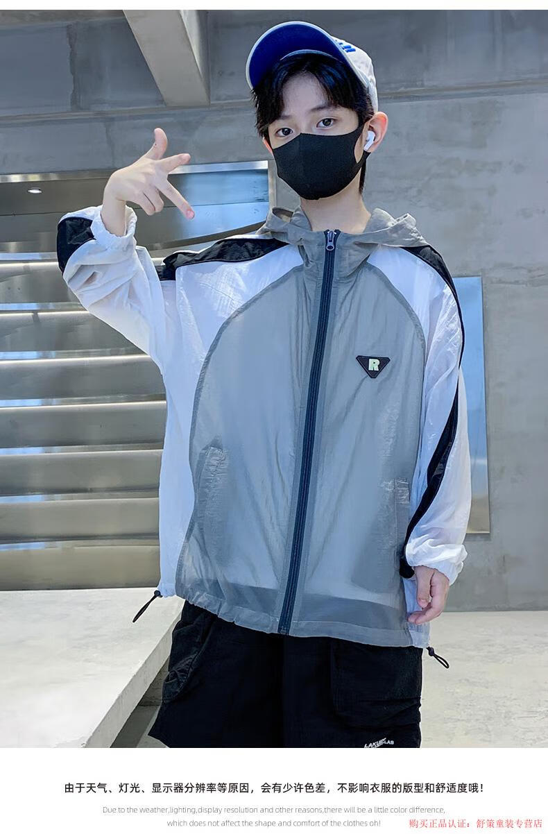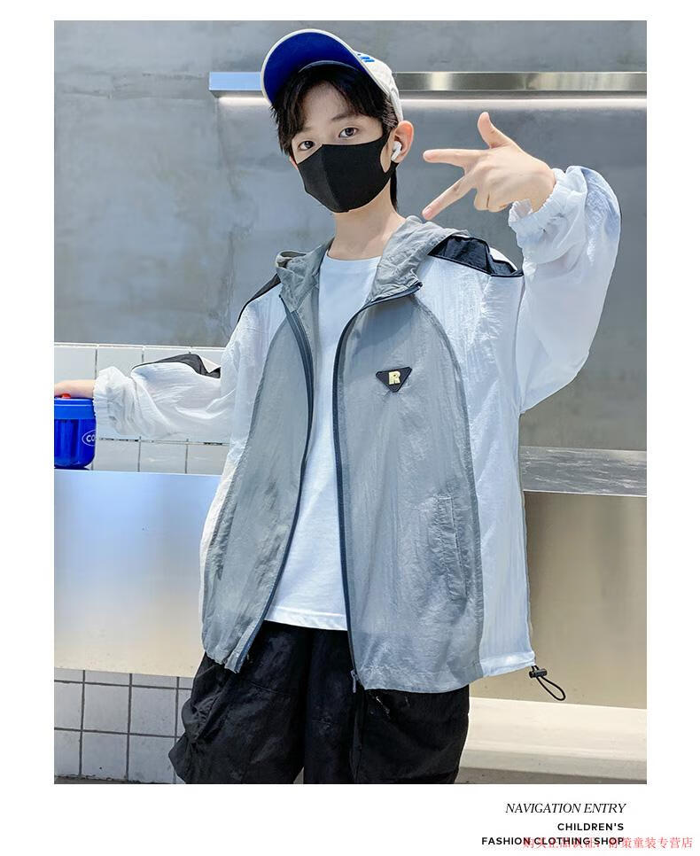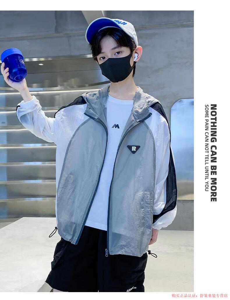 G.DUCKKIDS children's clothing boys summer sun protection jacket 2025 new children's breathable thin section medium and large children handsome hooded sun protection jacket gray 120 cm