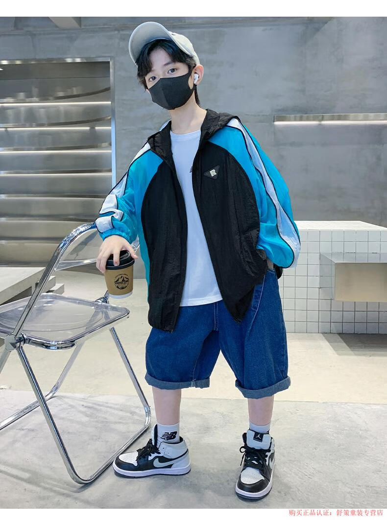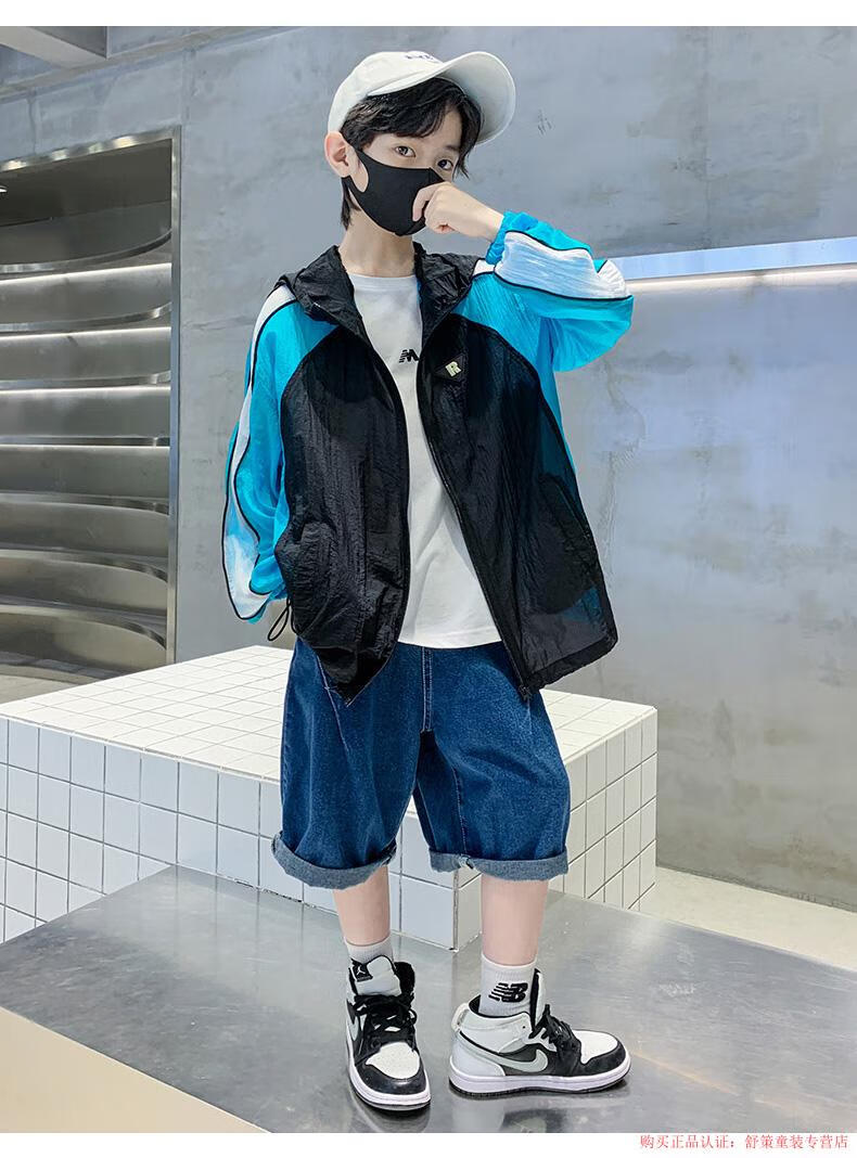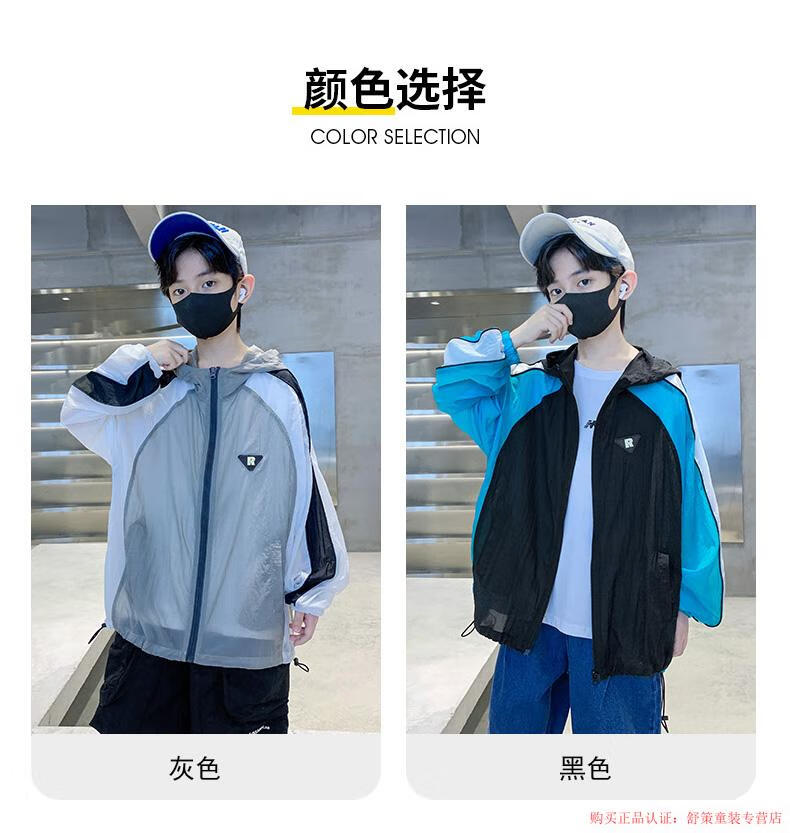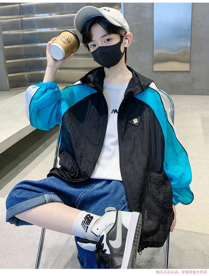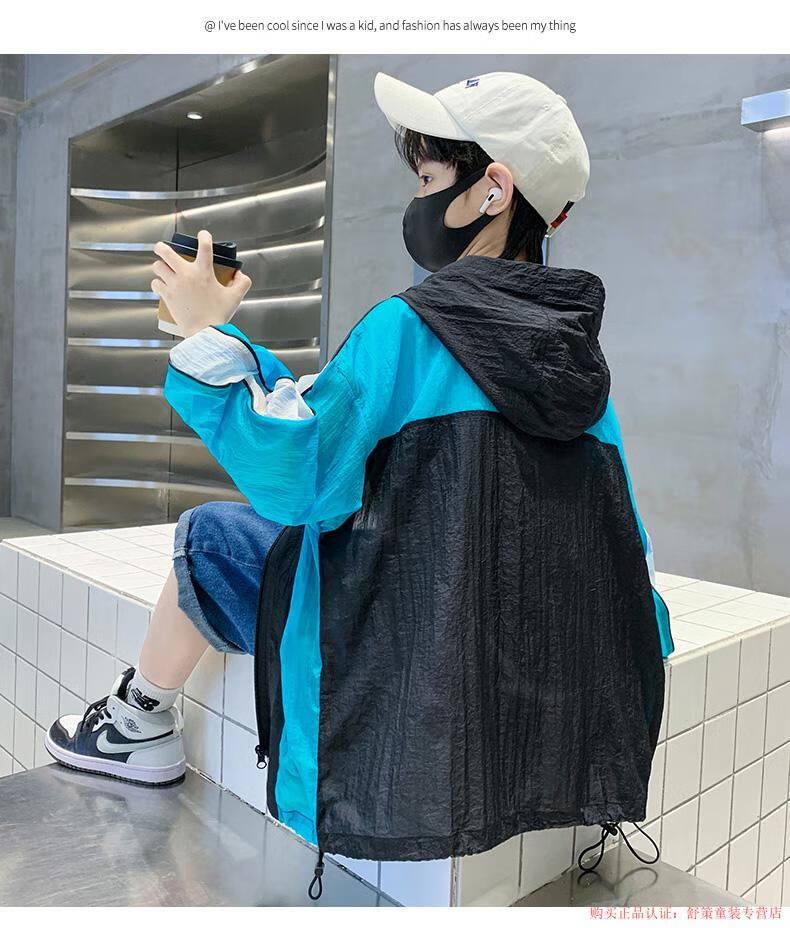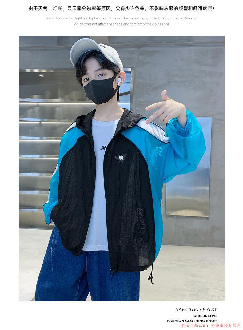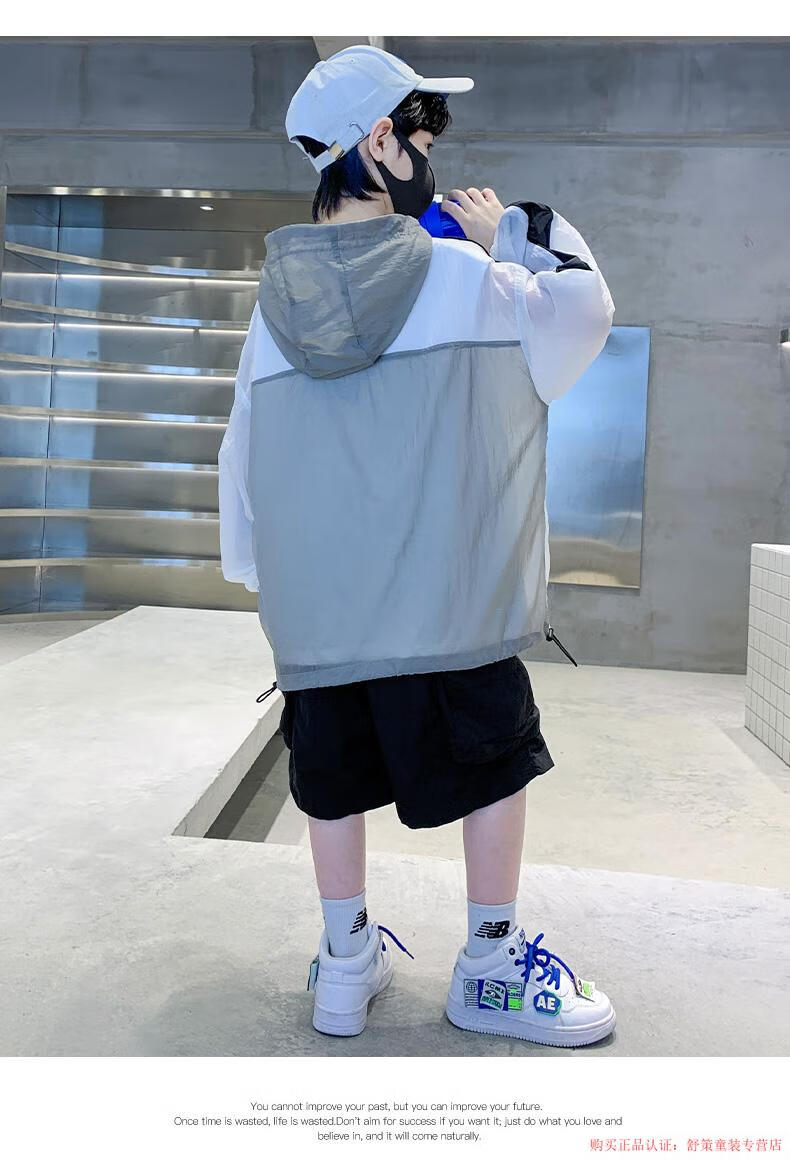 G.DUCKKIDS children's clothing boys summer sun protection jacket 2025 new children's breathable thin section medium and large children handsome hooded sun protection jacket gray 120 cm