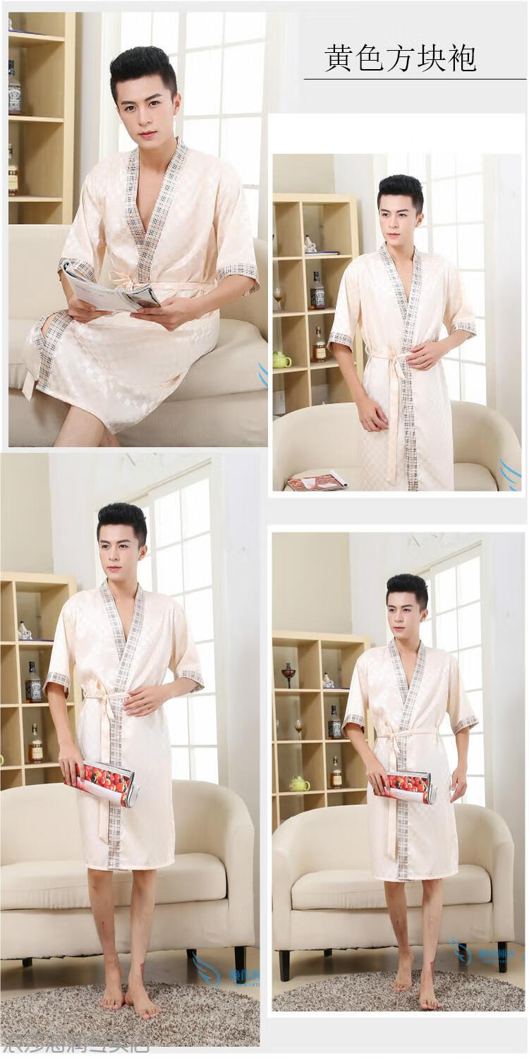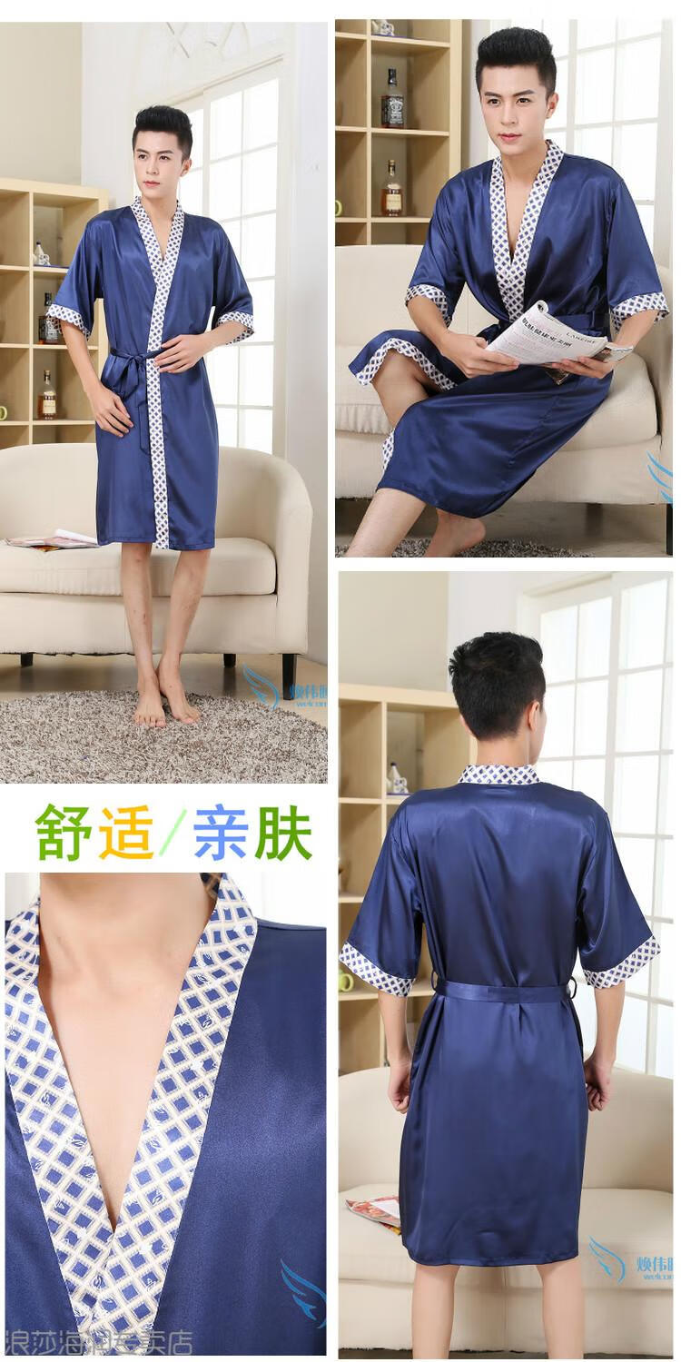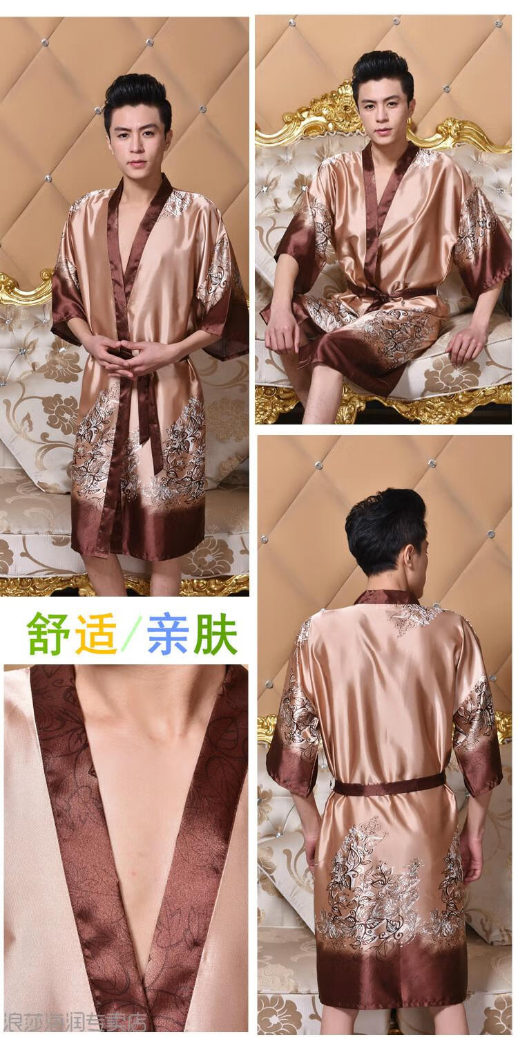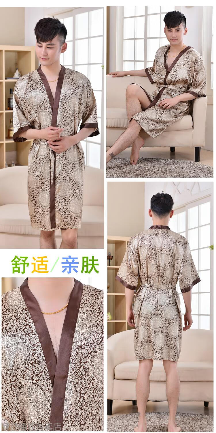 LangSha light luxury nightgown men's summer short-sleeved thin ice silk bathrobe men's mid-length sexy pajamas spring and autumn home clothes 13006 dark gray letter robe short-sleeved 3XL 185 170-200Jin Jin equals 0.5 kg