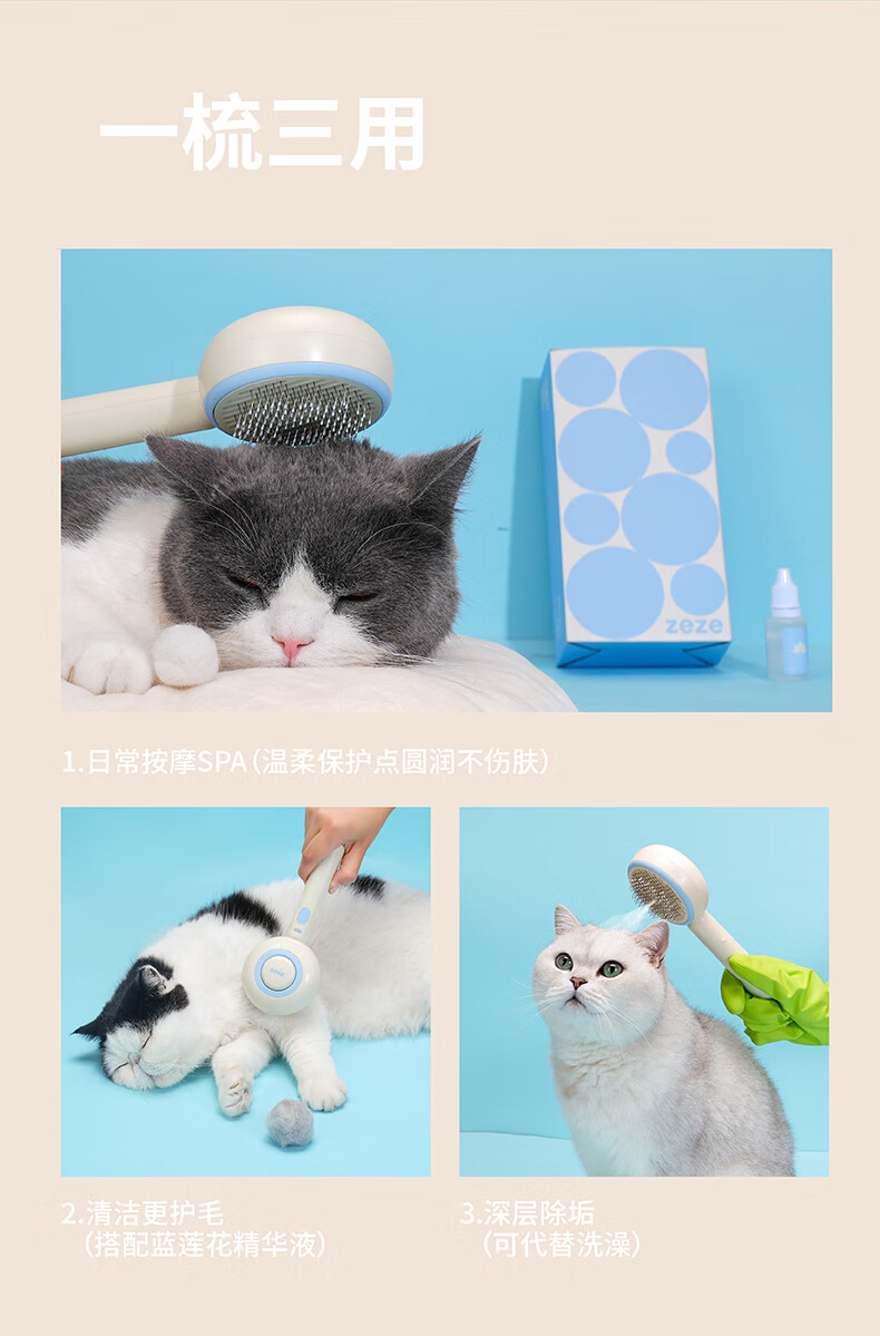 ZEZE pet spray massage comb anti-flying cat hair comb to remove floating hair steam comb dog hair comb Blue Lotus no-wash essence 4 bottles