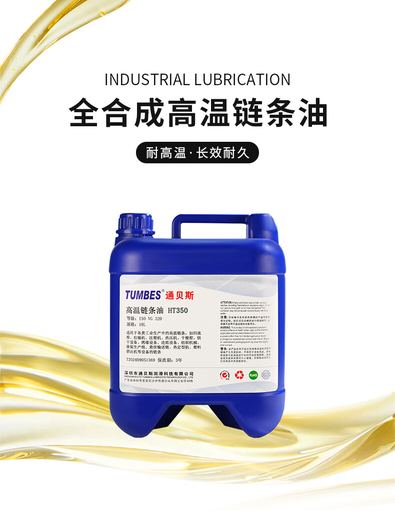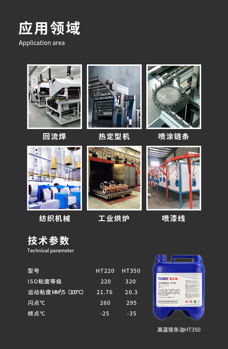 Tumbes fully synthetic high temperature resistant chain oil 300 degree non-coking HT220/350 reflow heat setting machine industrial oven paint tenter lubricant HT220 1L fully synthetic high temperature chain oil