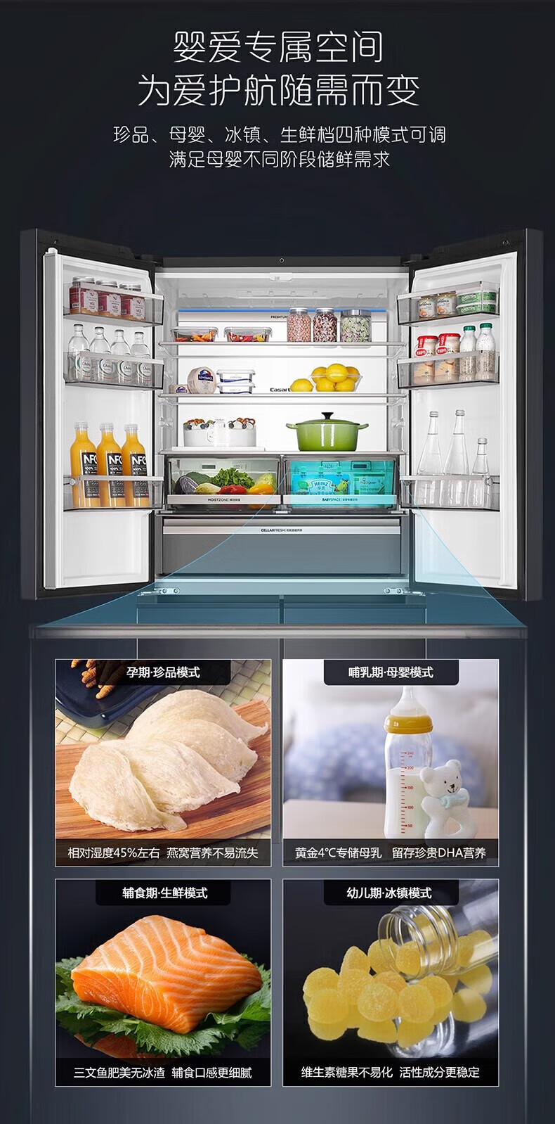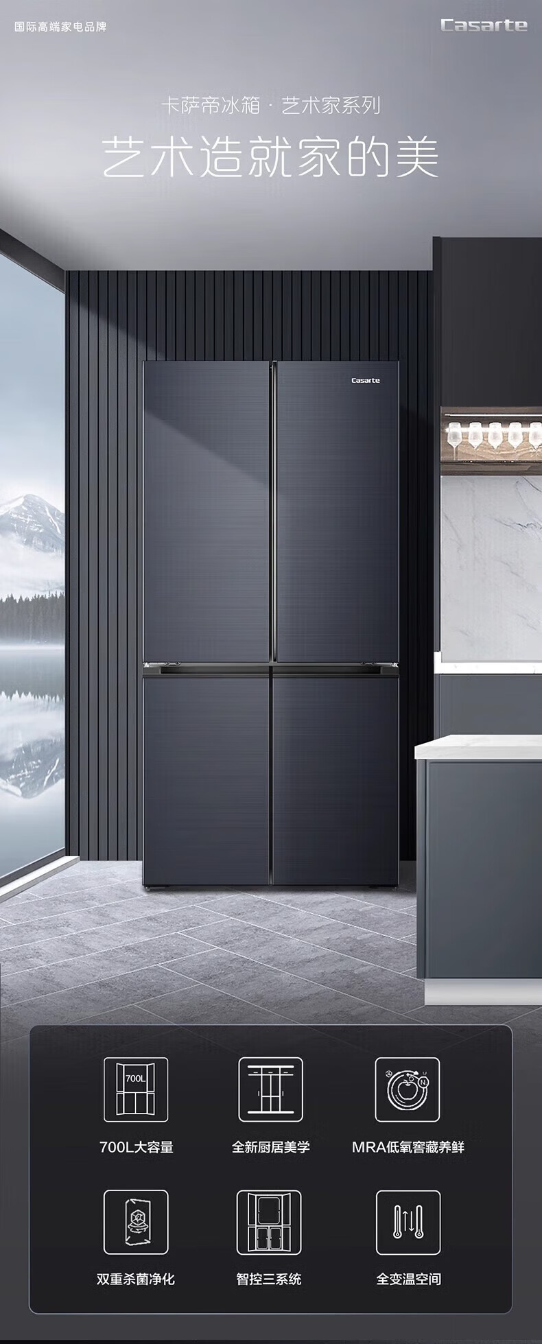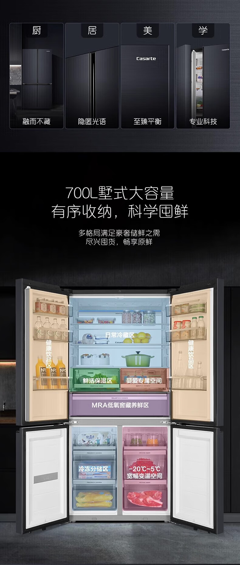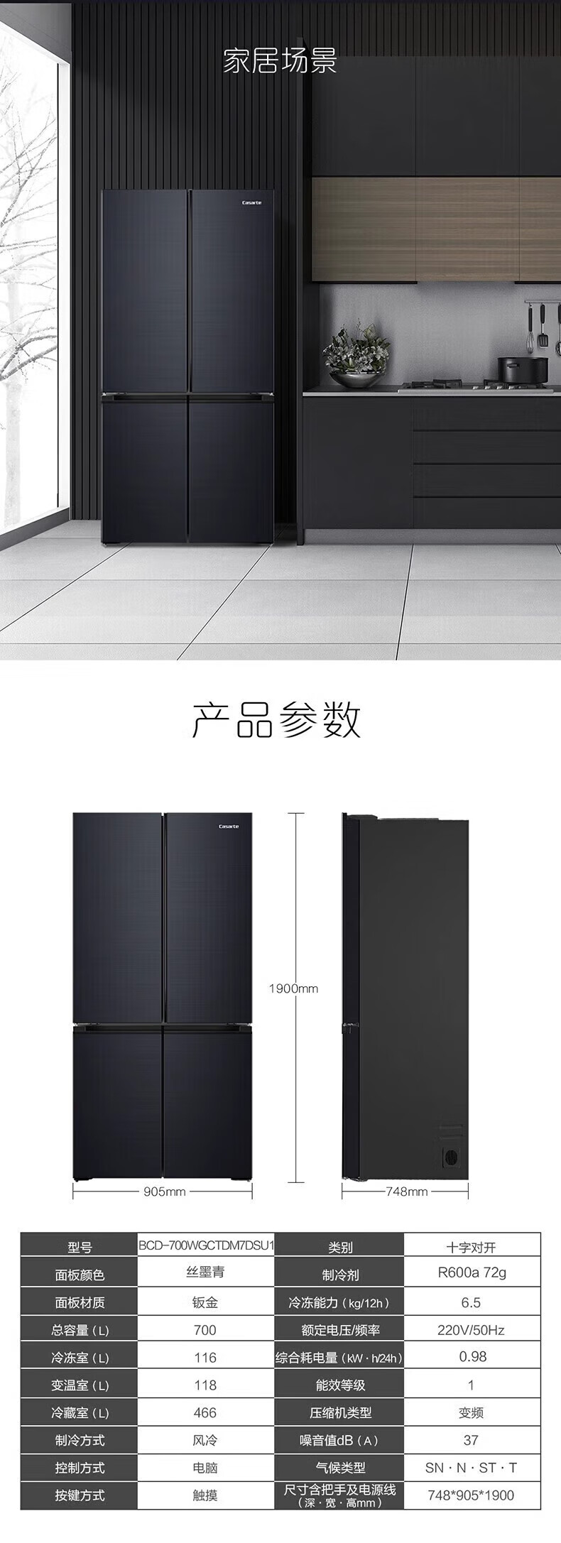 Zhijia Triwing Bird BCD-700WGCTDM7DSU1 ensemble de glaçage pour réfrigérateur inverseur de premier niveau refroidi par air à quatre portes croisées, trois systèmes, contrôle intelligent, trois systèmes, double stérilisation et purification