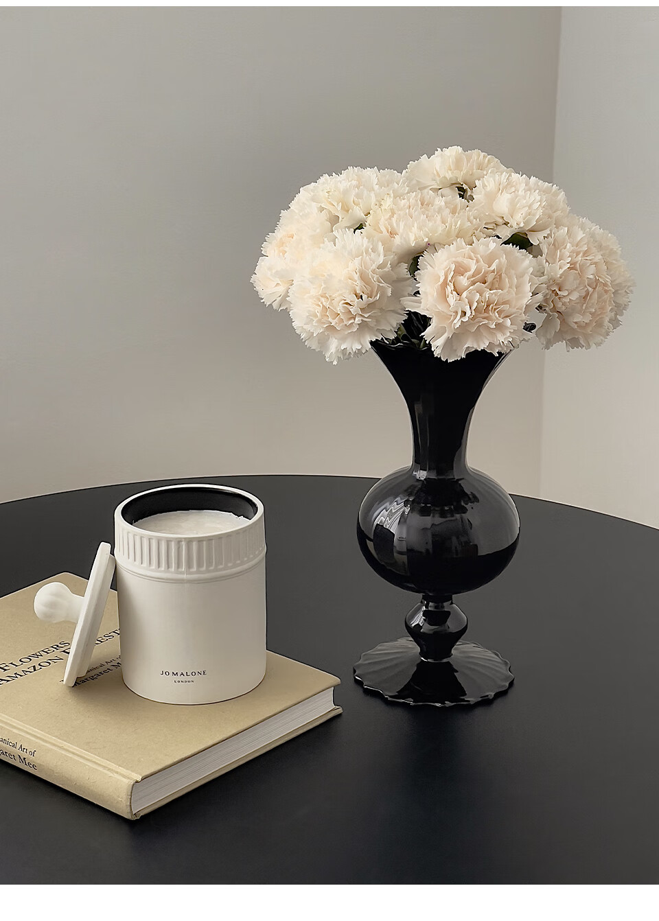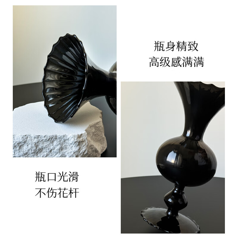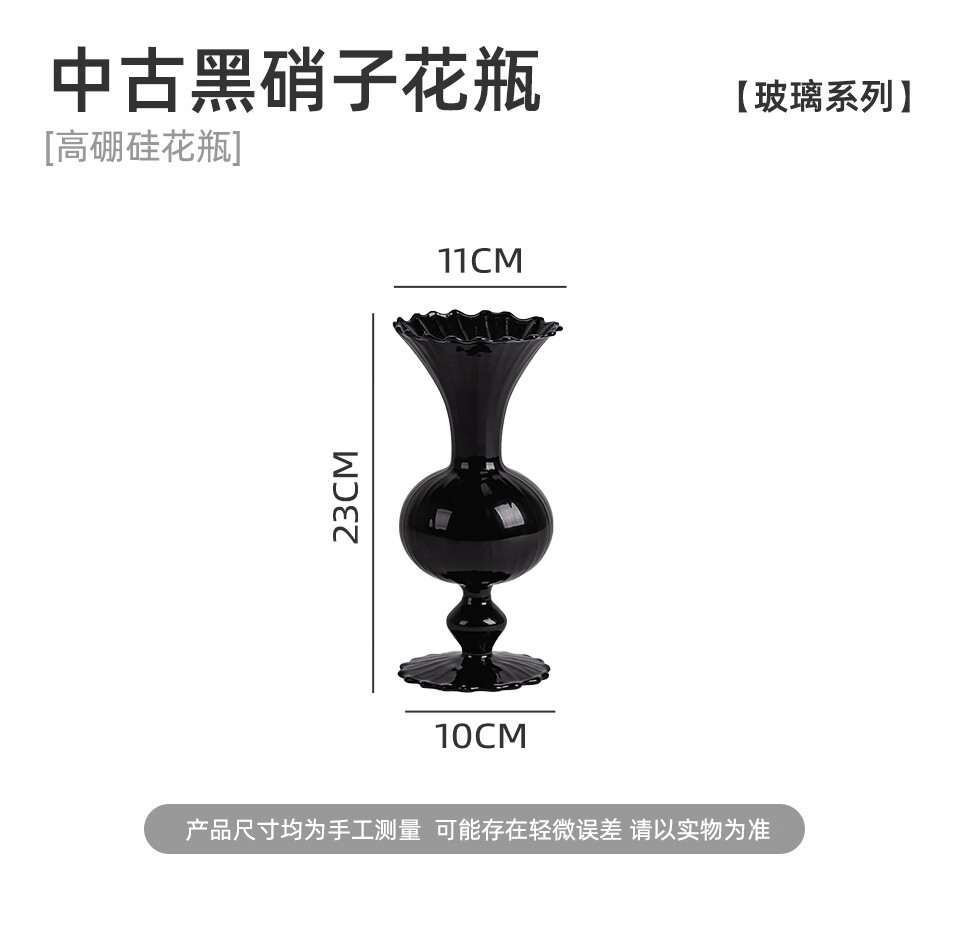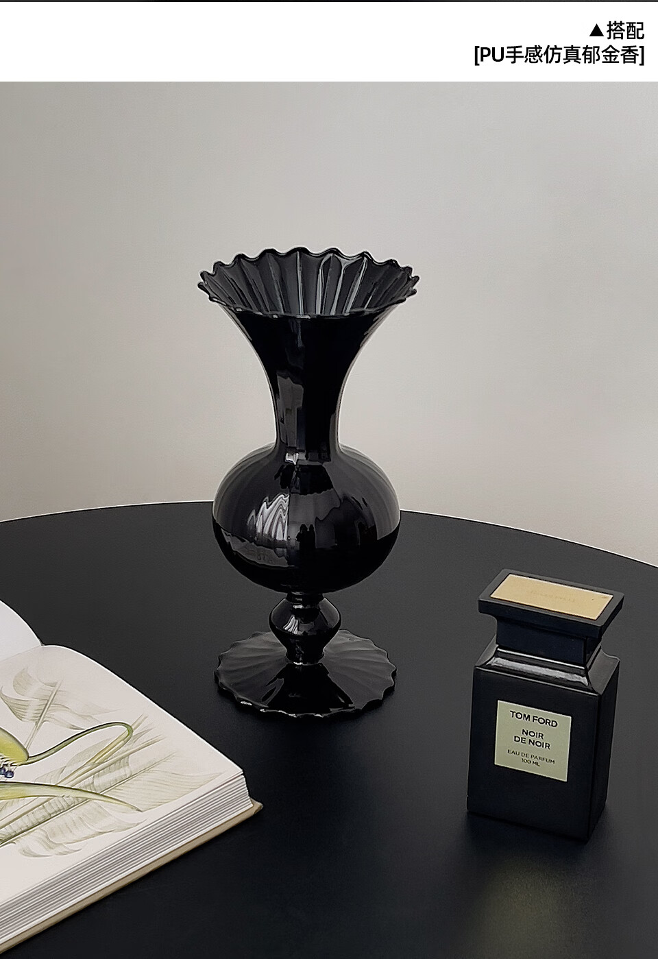 Jin Riman French medieval black vase decoration living room flower arrangement retro light luxury high-end glass hydroponic flowers dried flower vase Medieval vase black large size 22cm