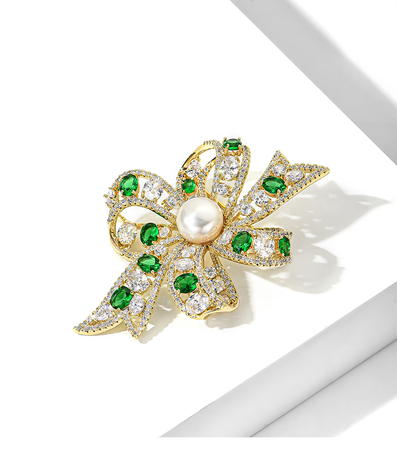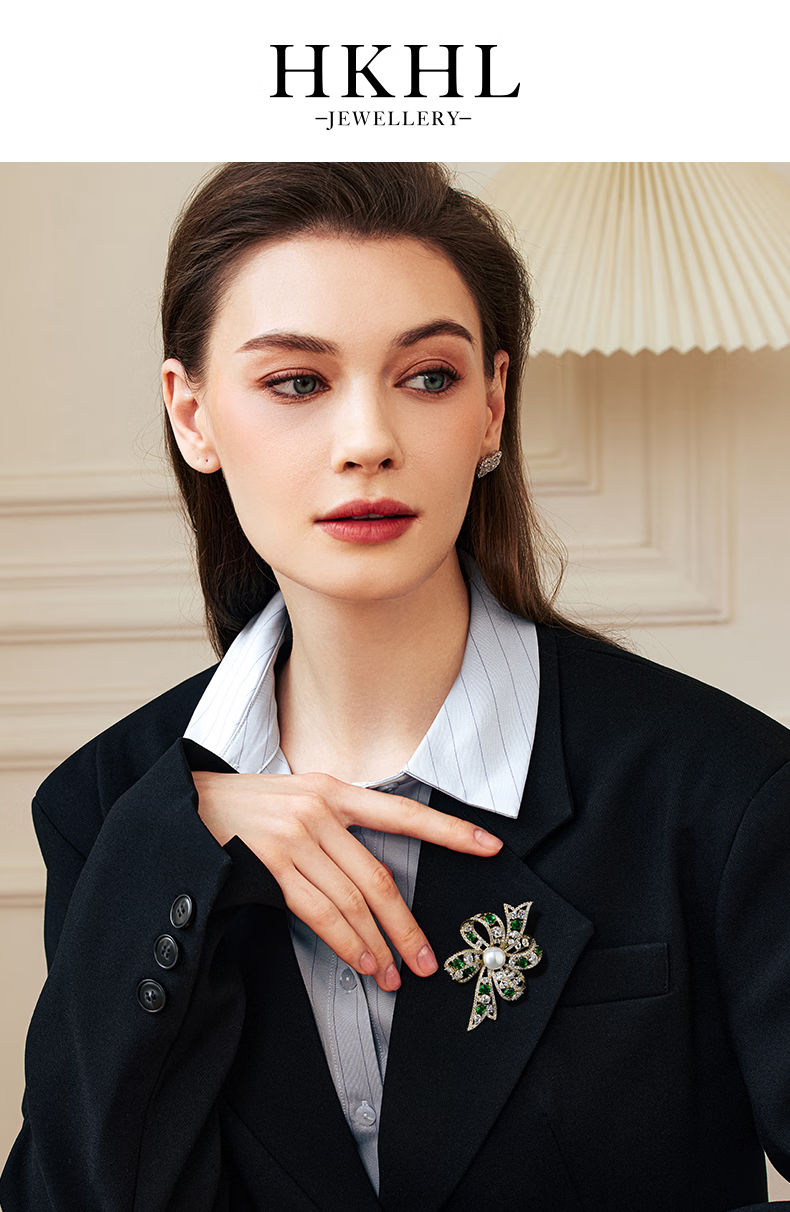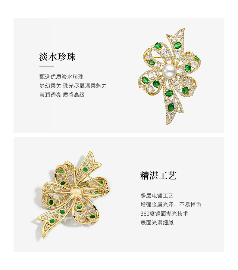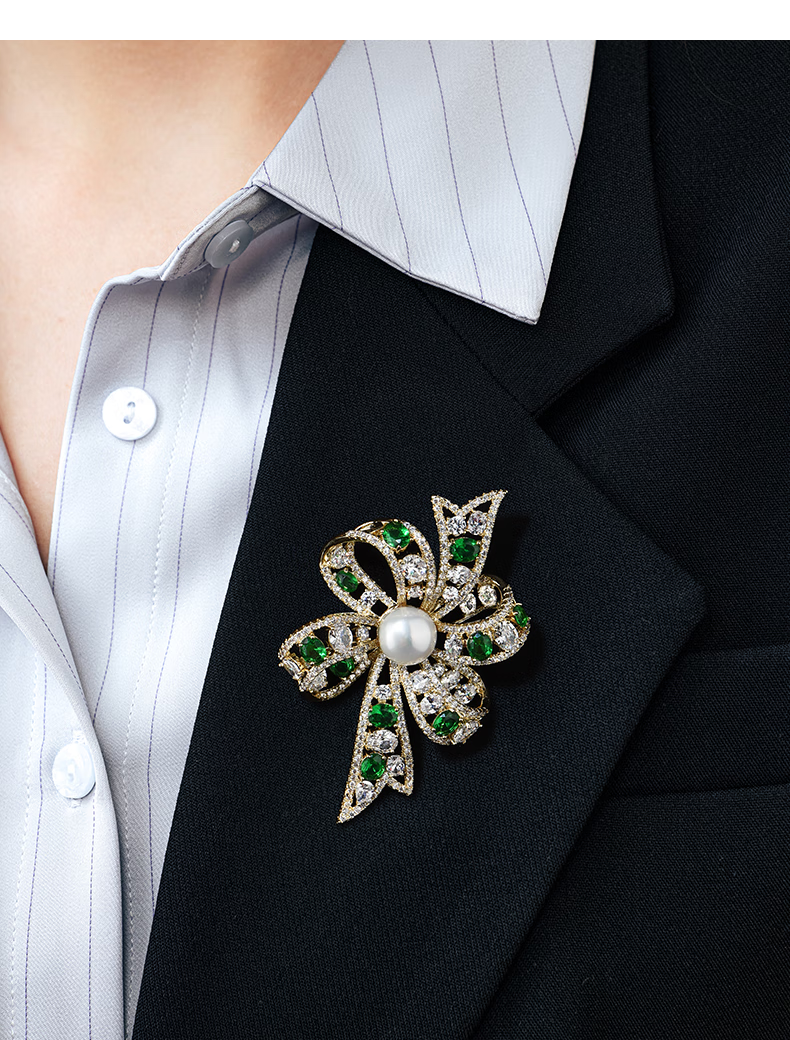 HKHL Freshwater Pearl Bow Brooch High-end Women's Light Luxury Suit Corsage Pin Scarf Button Girls Birthday Gift Freshwater Pearl Bow Brooch