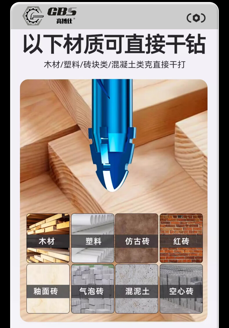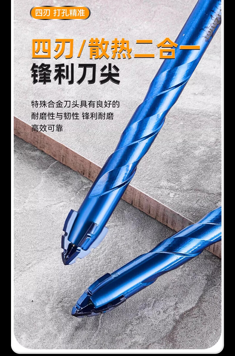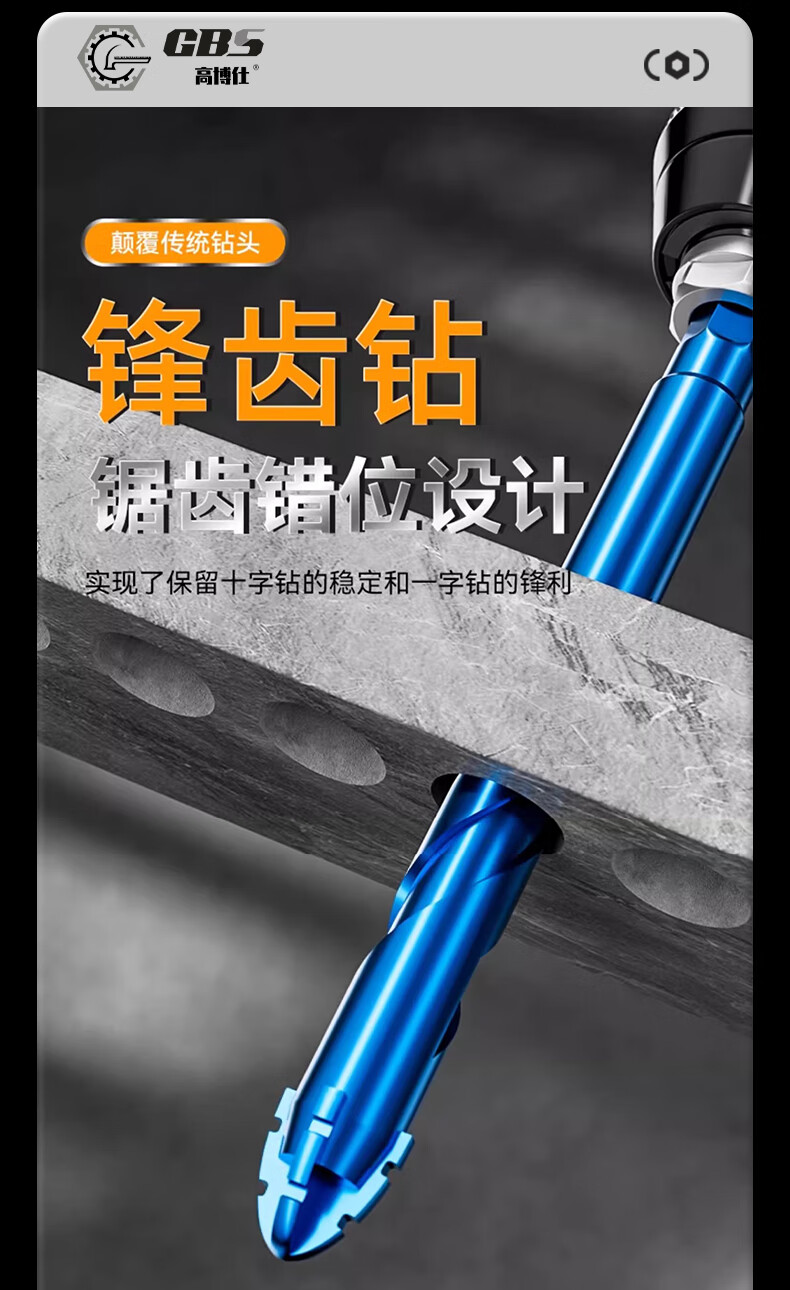 Gobos third generation four-edged sharp tooth ceramic tile eccentric drill bit tungsten steel alloy dry drilling expansion hole glass cement wall concrete third generation hardened tungsten steel 6+8+10+12mm