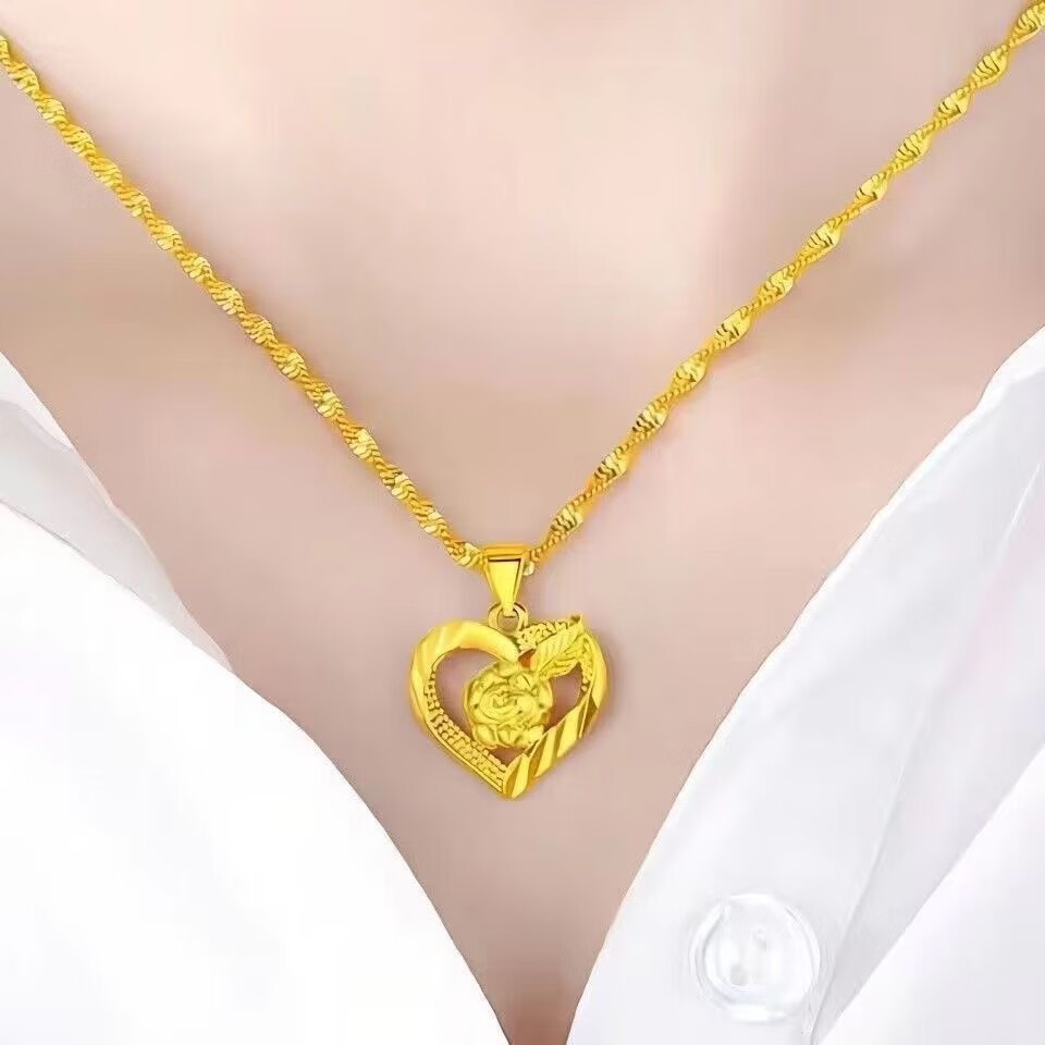 Alluvial gold pendant female clavicle chain peach heart rose heart-shaped necklace versatile and noble gift for wife rose heart-shaped necklace set