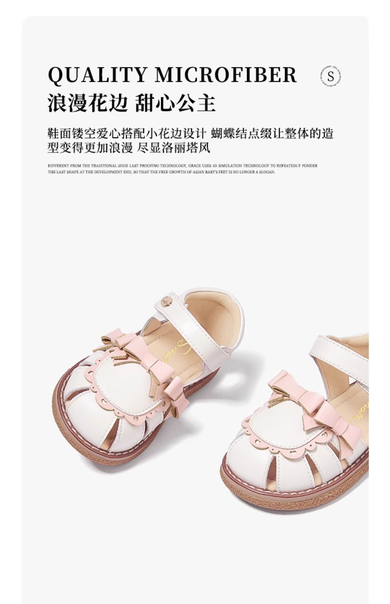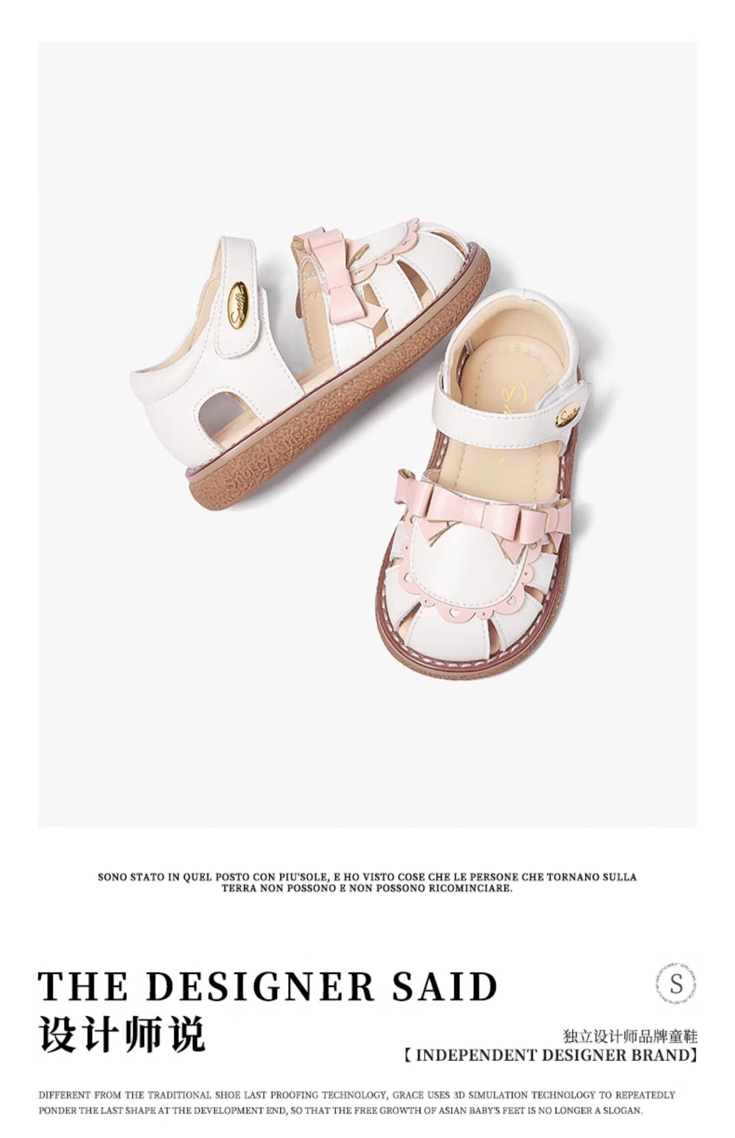 Snuffy Girls Sandals Summer Children's Lolita Little Princess Soft Sole Baby Toe Sandals Vanilla Toffee White 21
