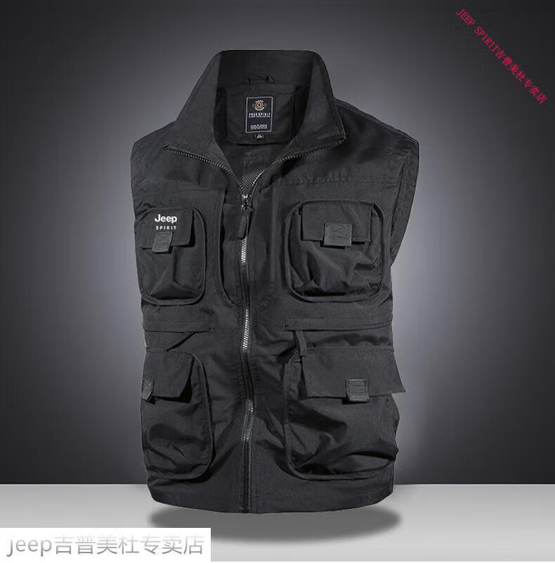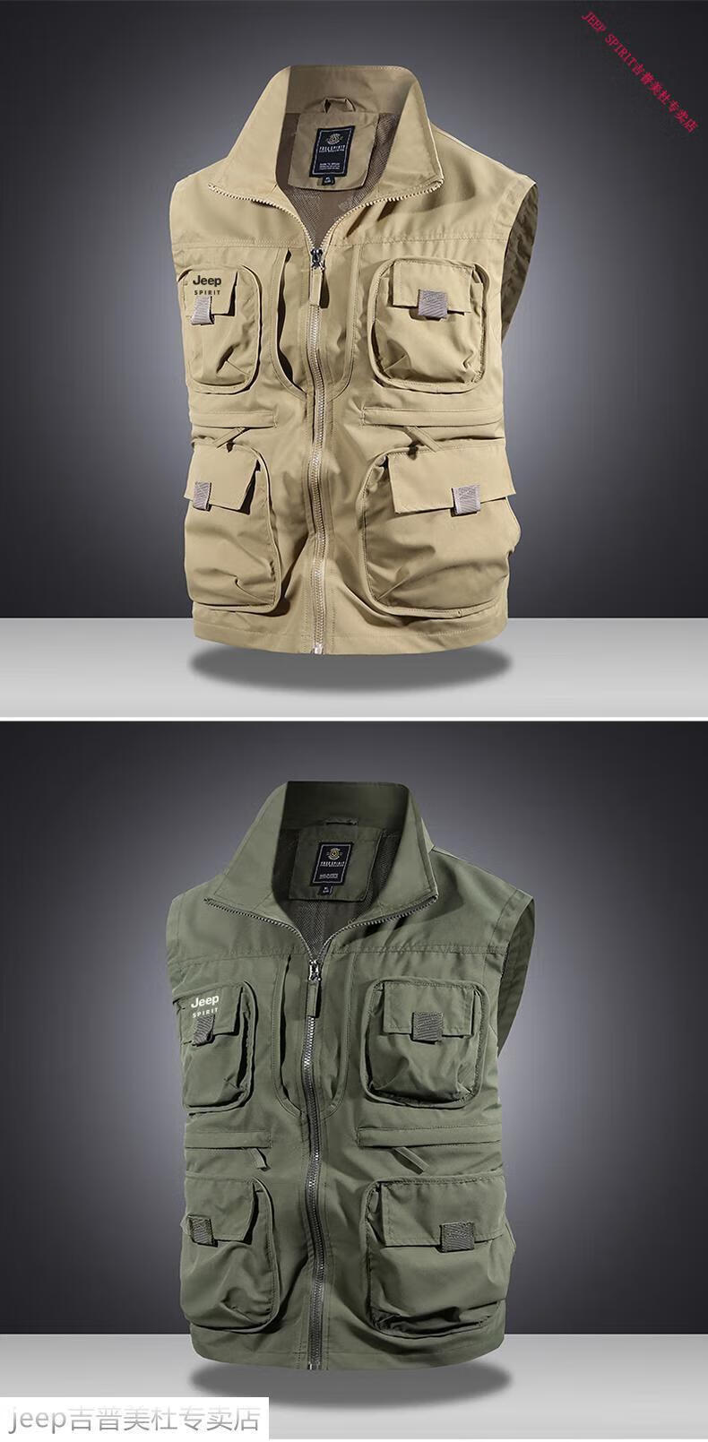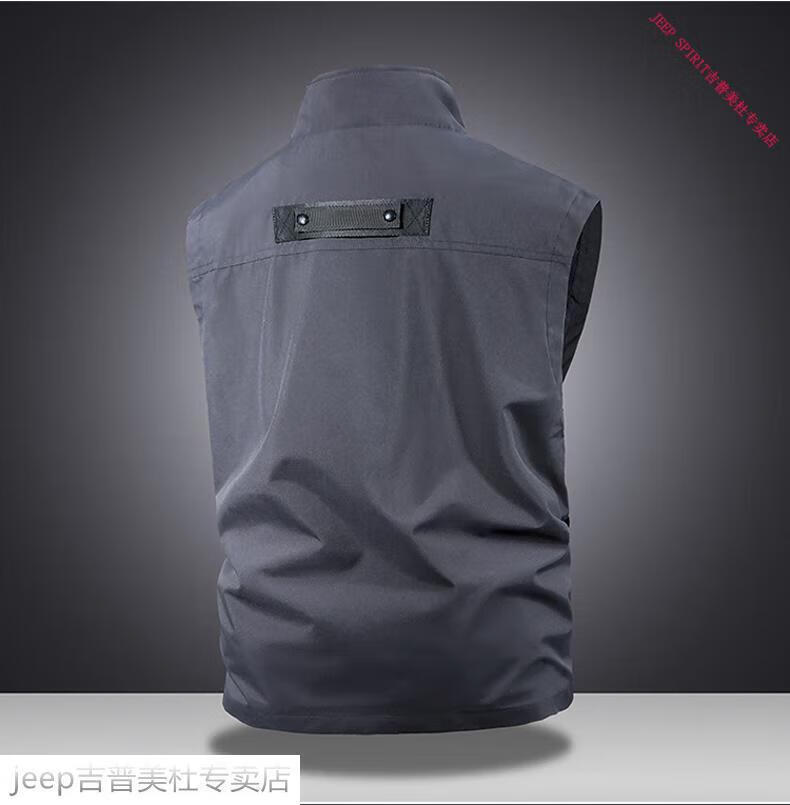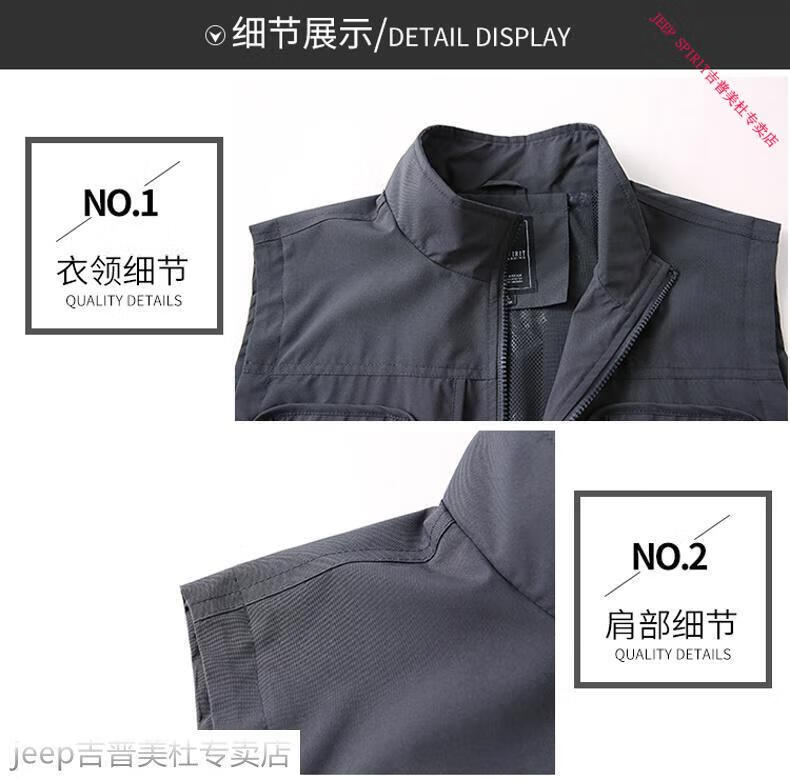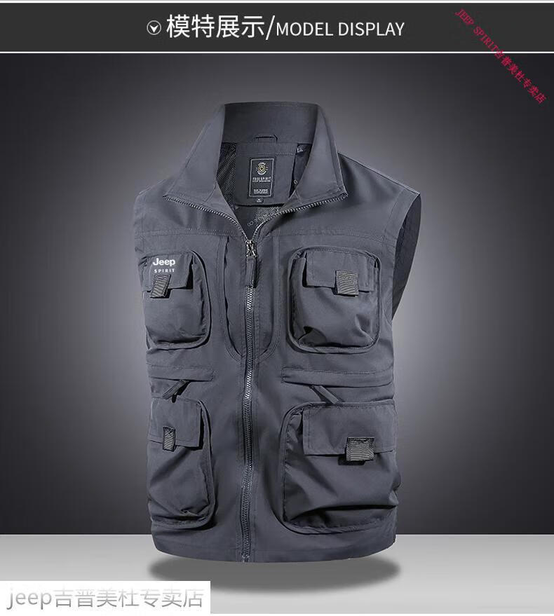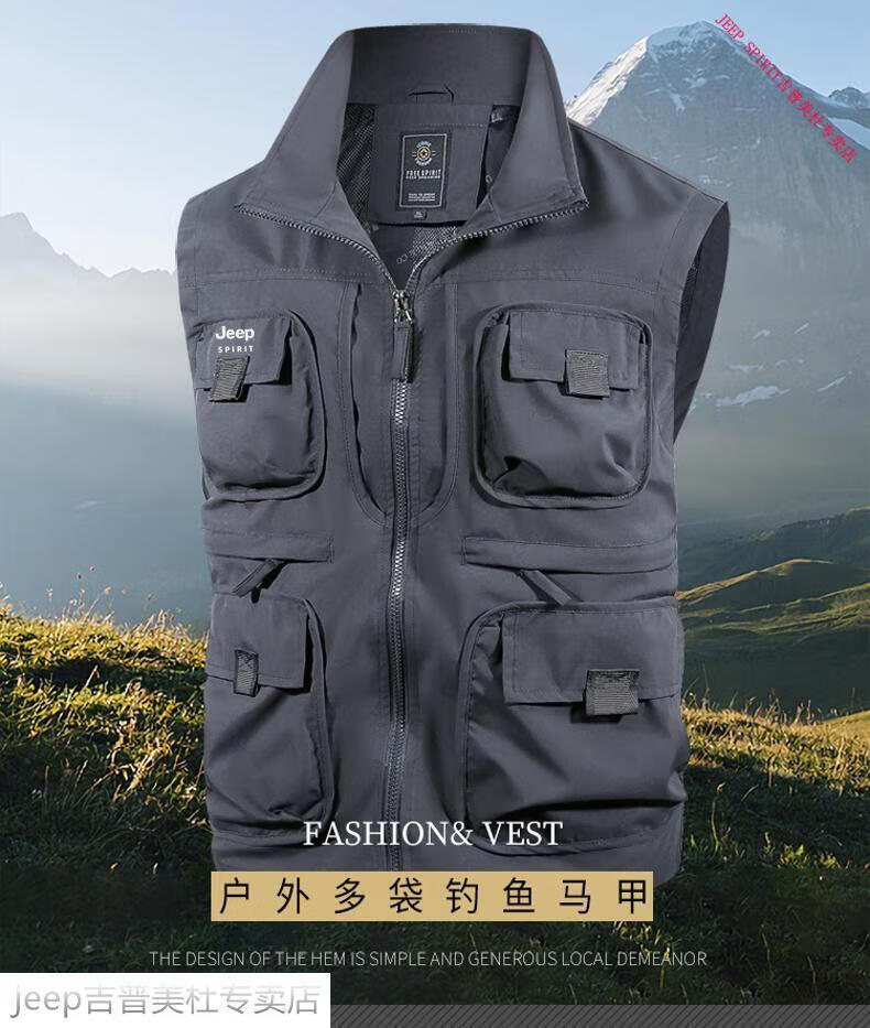 JEEP SPIRIT高端男士马甲多口袋工装背心坎肩春秋款户外摄影钓鱼宽松透气马夹 灰色 XL 140-150斤