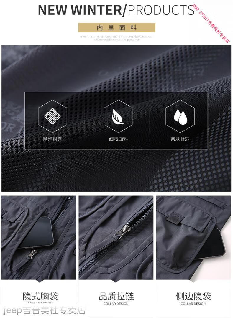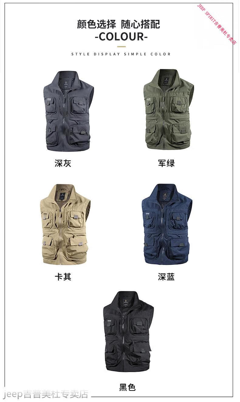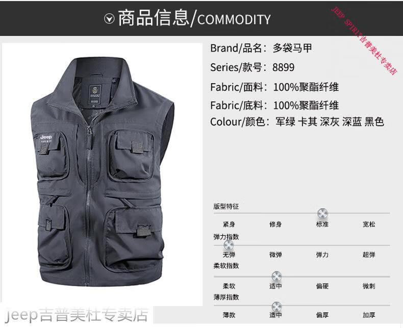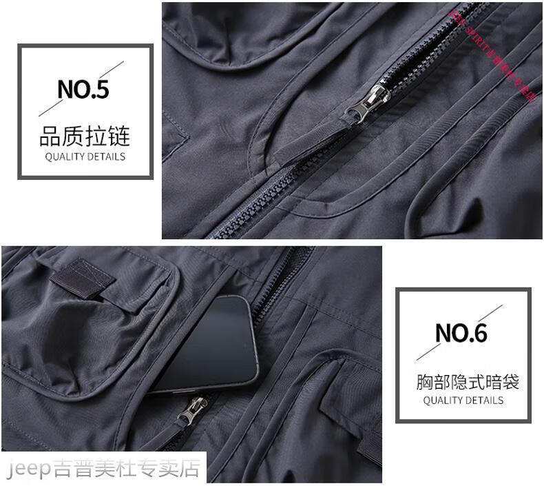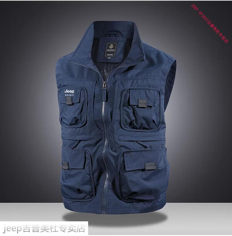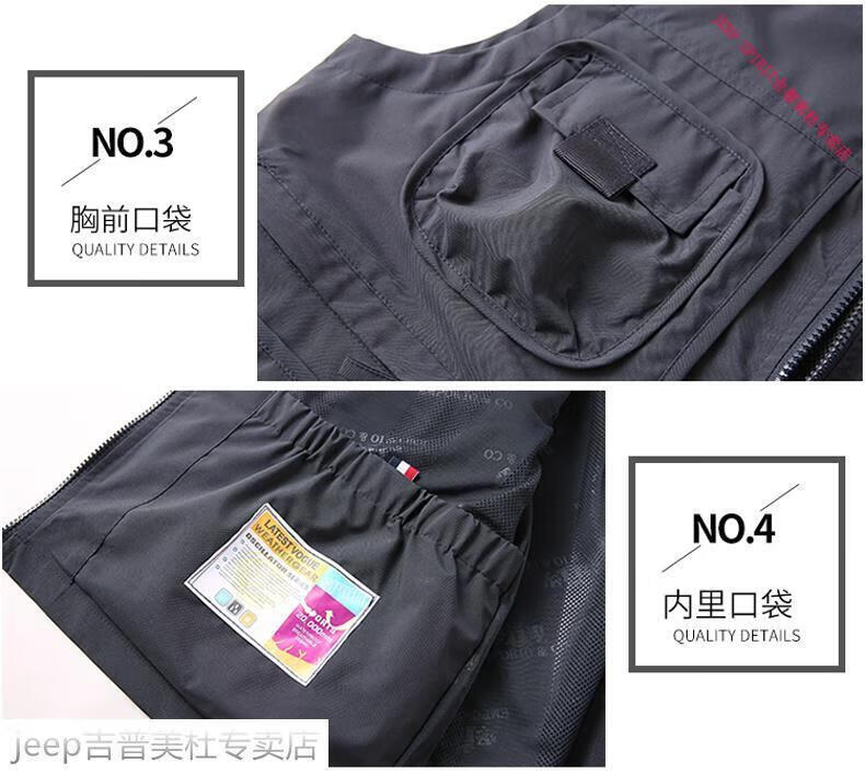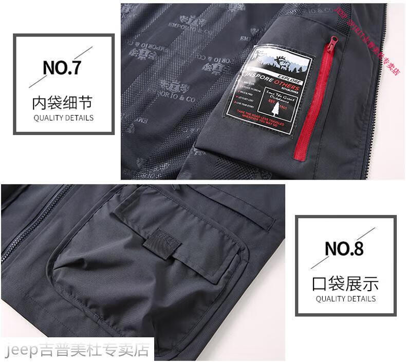 JEEP SPIRIT高端男士马甲多口袋工装背心坎肩春秋款户外摄影钓鱼宽松透气马夹 灰色 XL 140-150斤