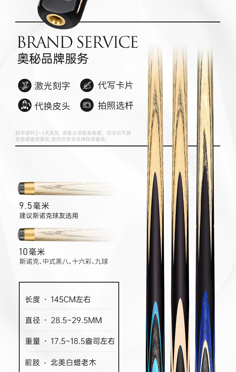 Mysterious new generation gunner billiard cue through rod small head snooker cue Chinese black eight-point nine-ball table cue new generation through rod 10mm + original leather wood cue box
