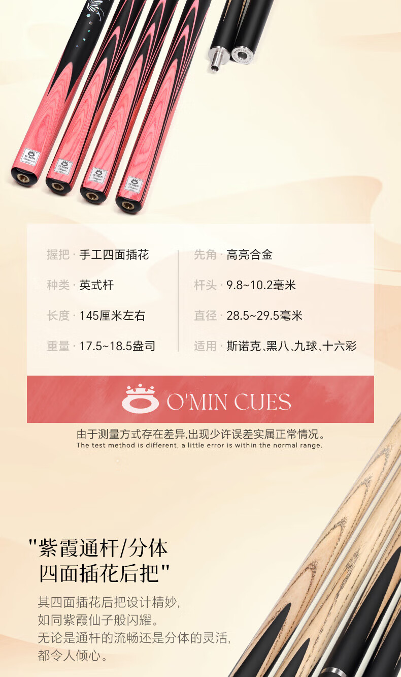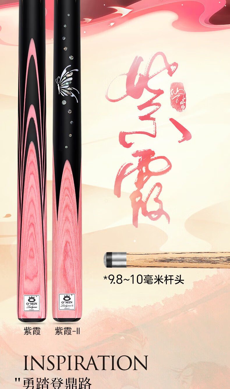 Mysterious Zixia pool cue pink girls special small head snooker cue couple model Zixia 2 in 8 table cue Zixia cue 10mm + exclusive cue box