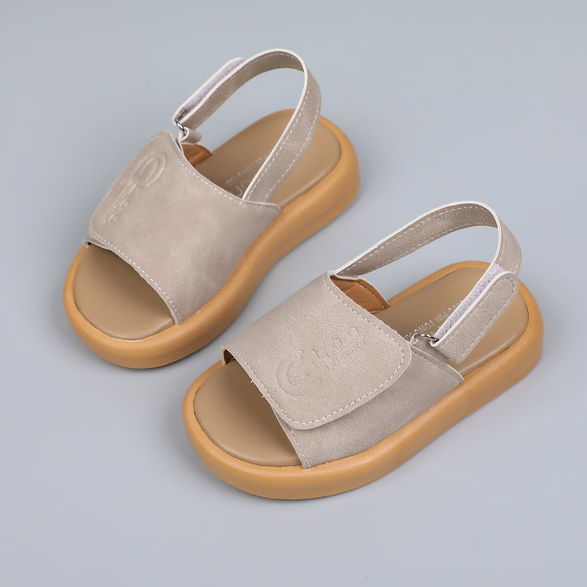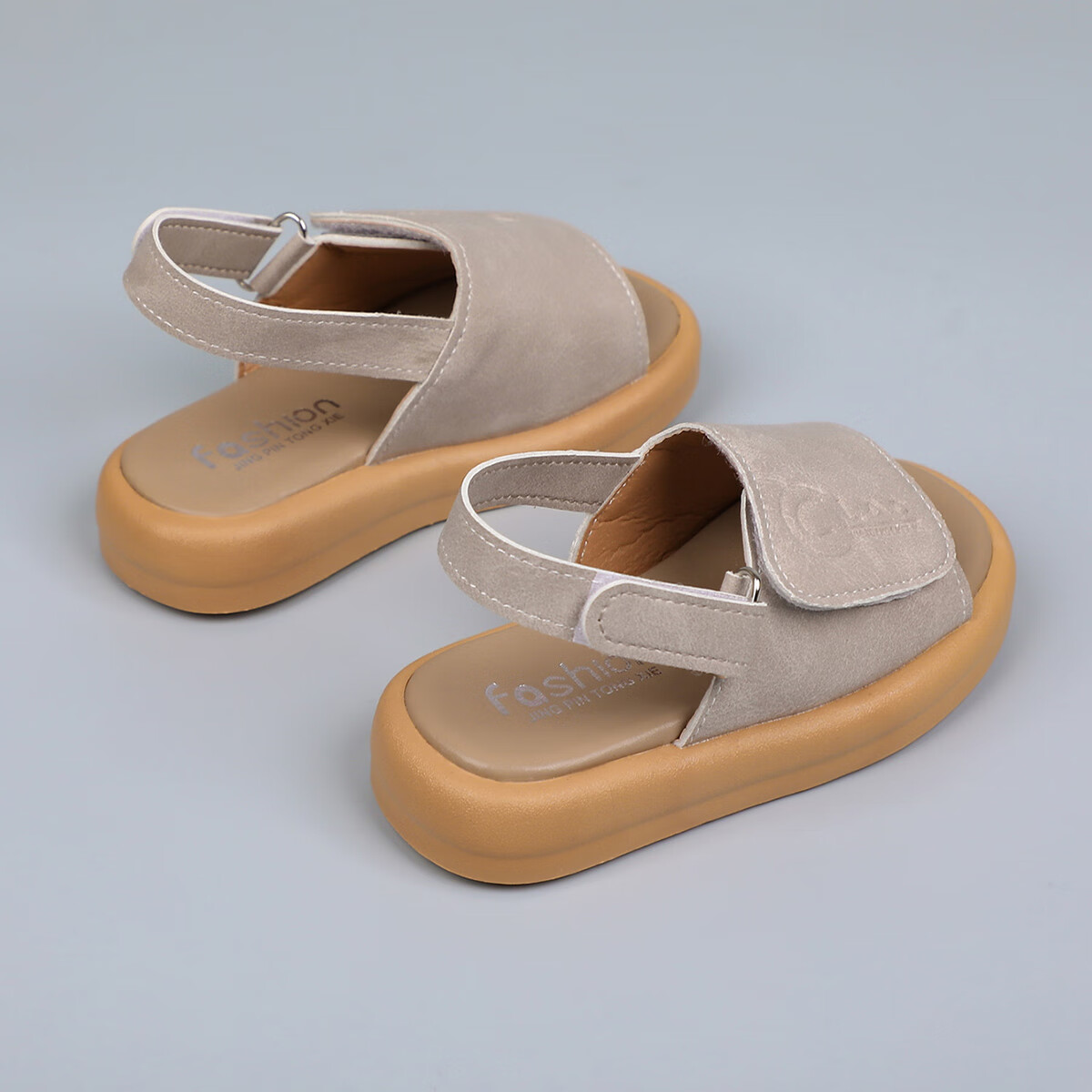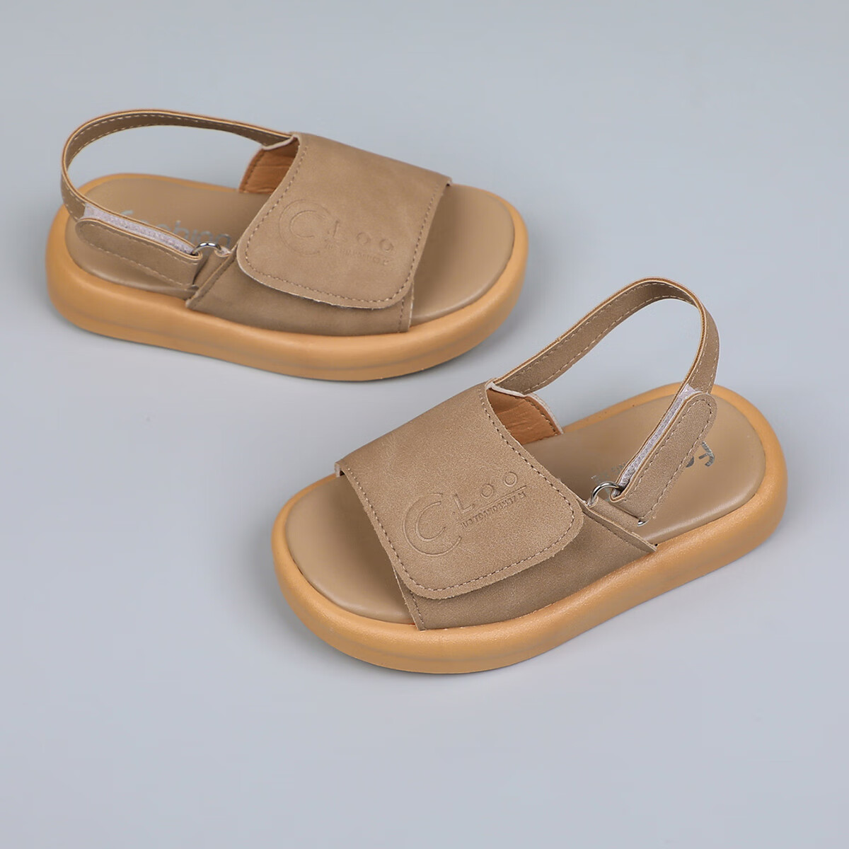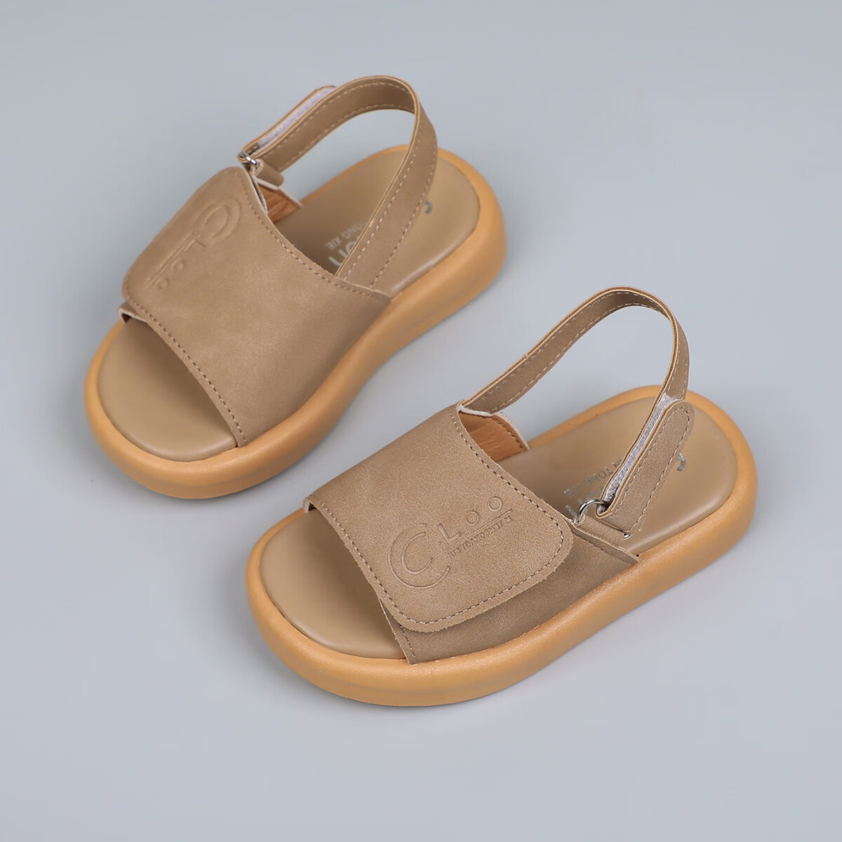 Foreign trade summer children's sandals with double Velcro adjustable beach shoes for boys and girls, non-slip casual soft-soled open-toe sandals, khaki color 24, inner length 15cm