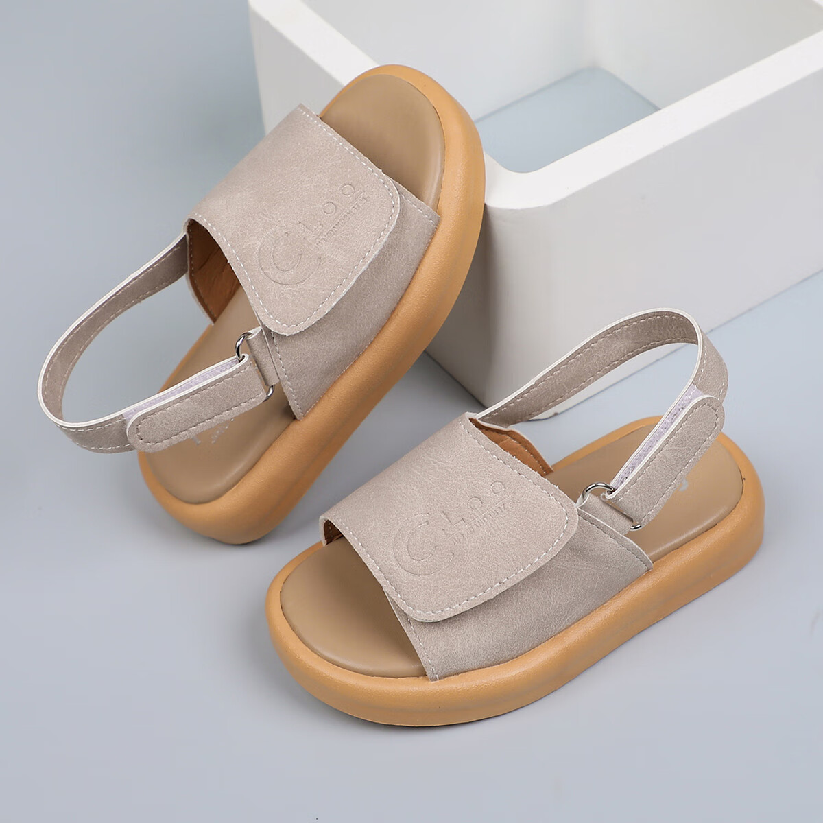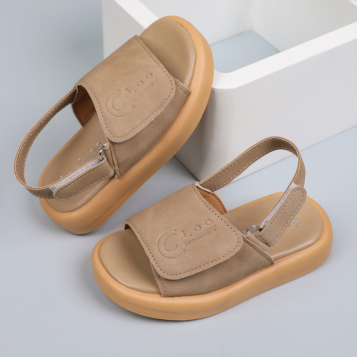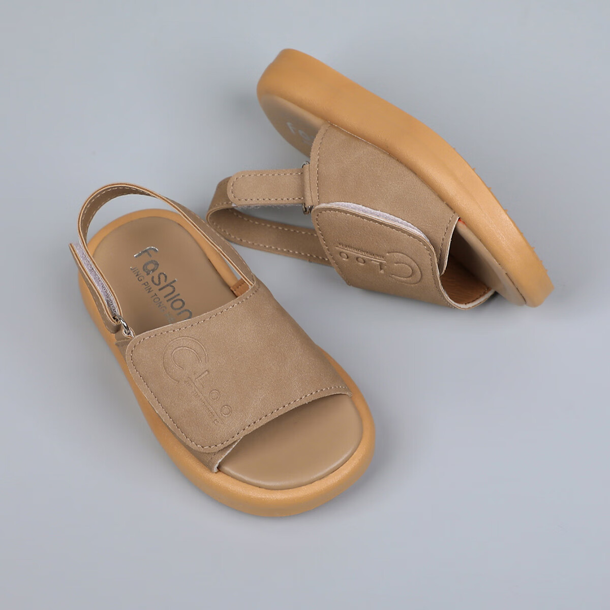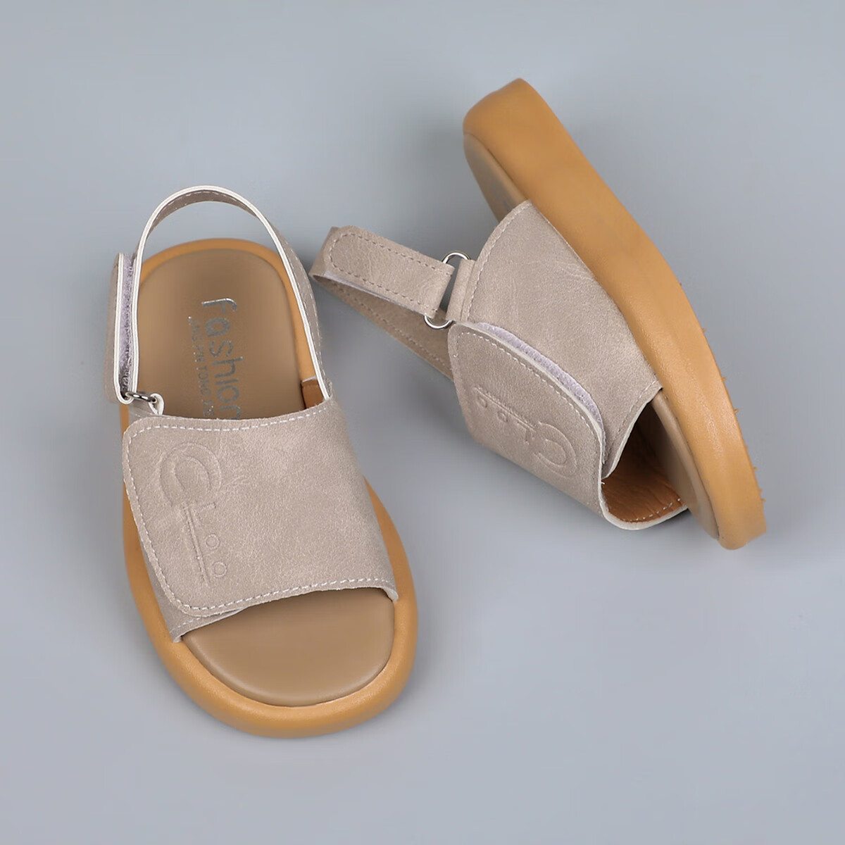 Foreign trade summer children's sandals with double Velcro adjustable beach shoes for boys and girls, non-slip casual soft-soled open-toe sandals, khaki color 24, inner length 15cm