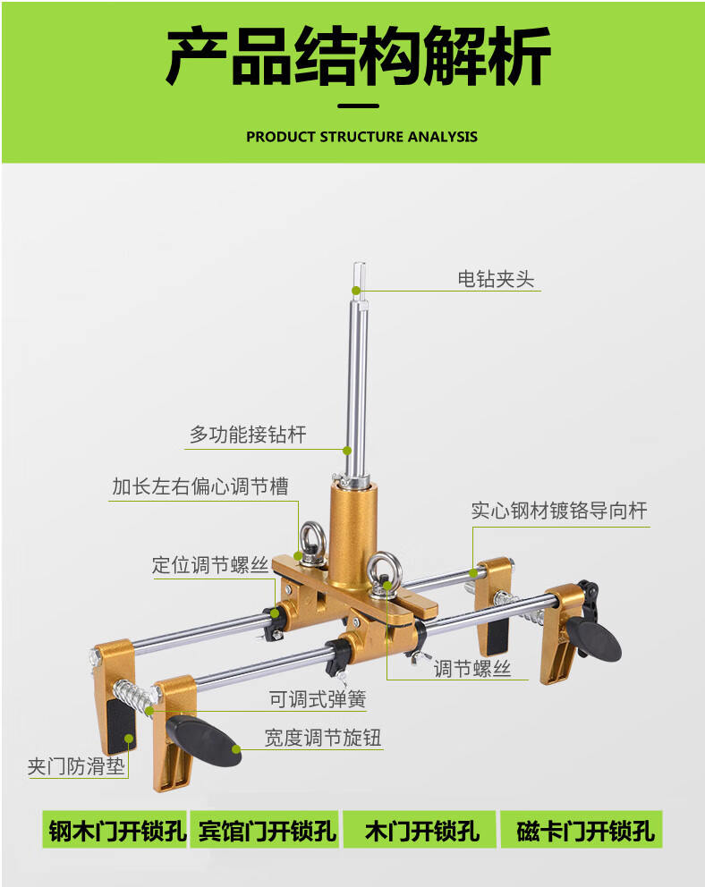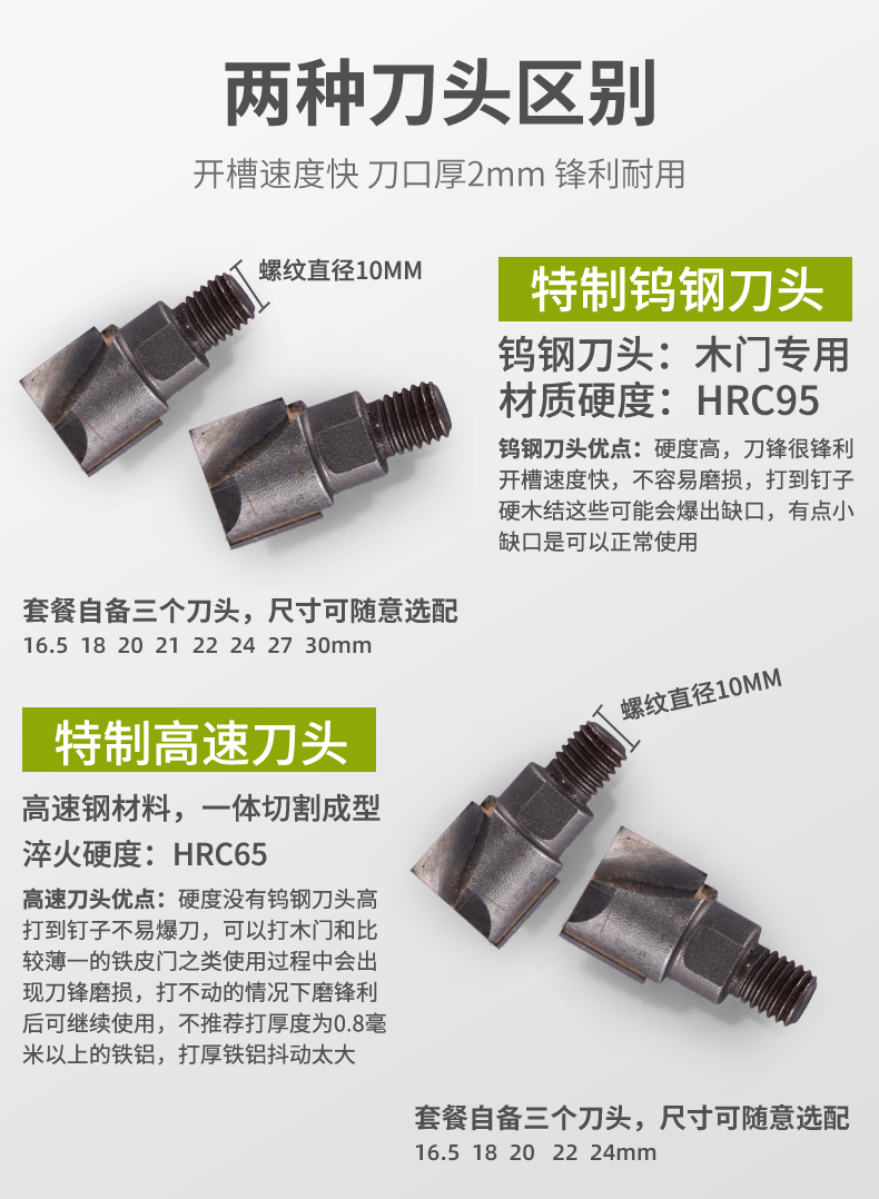 Solid wood door hole opener, slotting machine, woodworking indoor installation lock tool, door lock installation tool, press key hole opening tool, standard silver white, with three tungsten steel blades