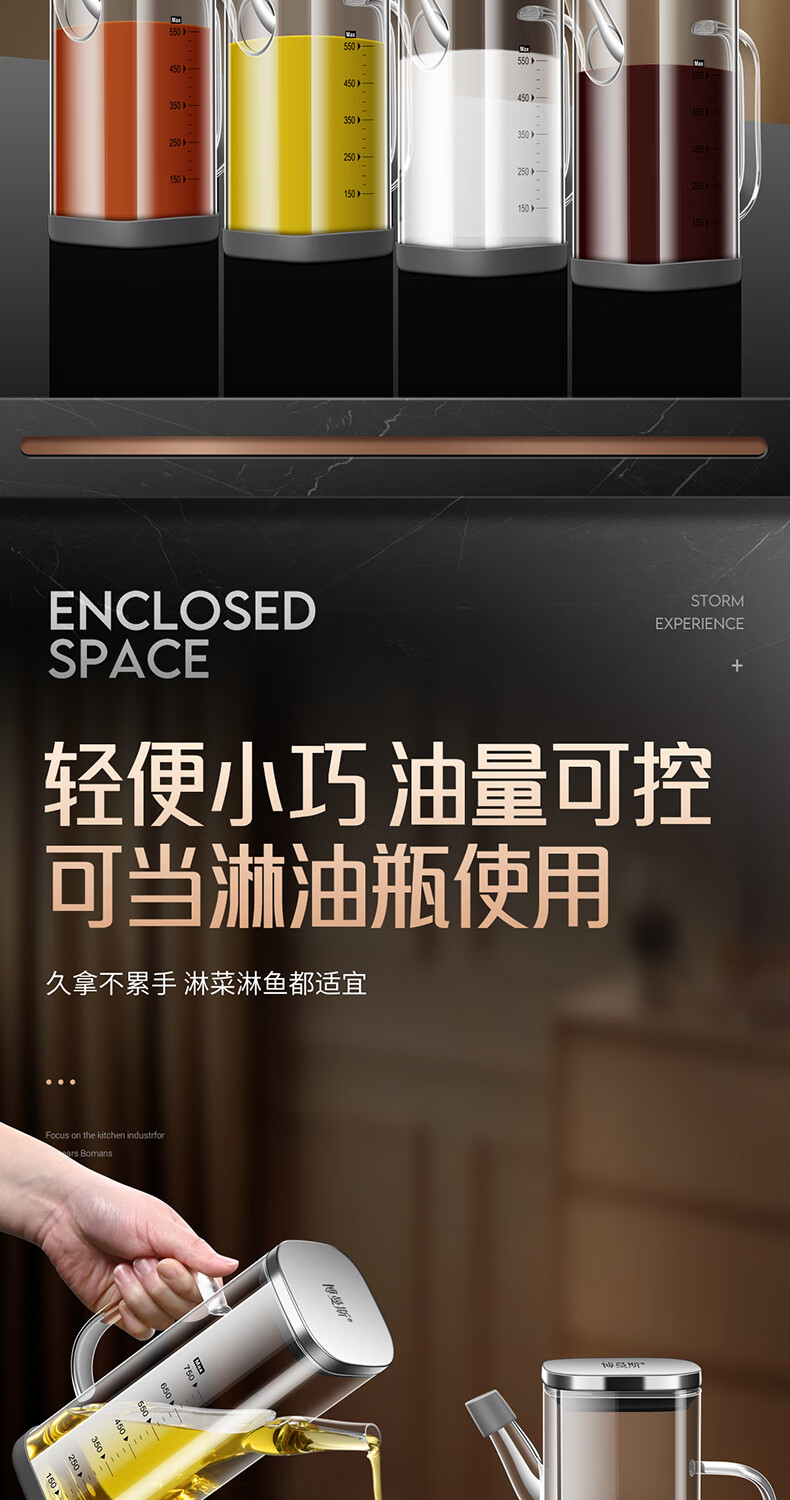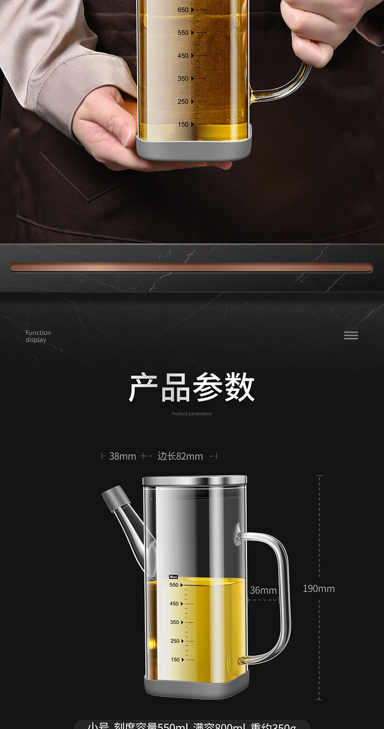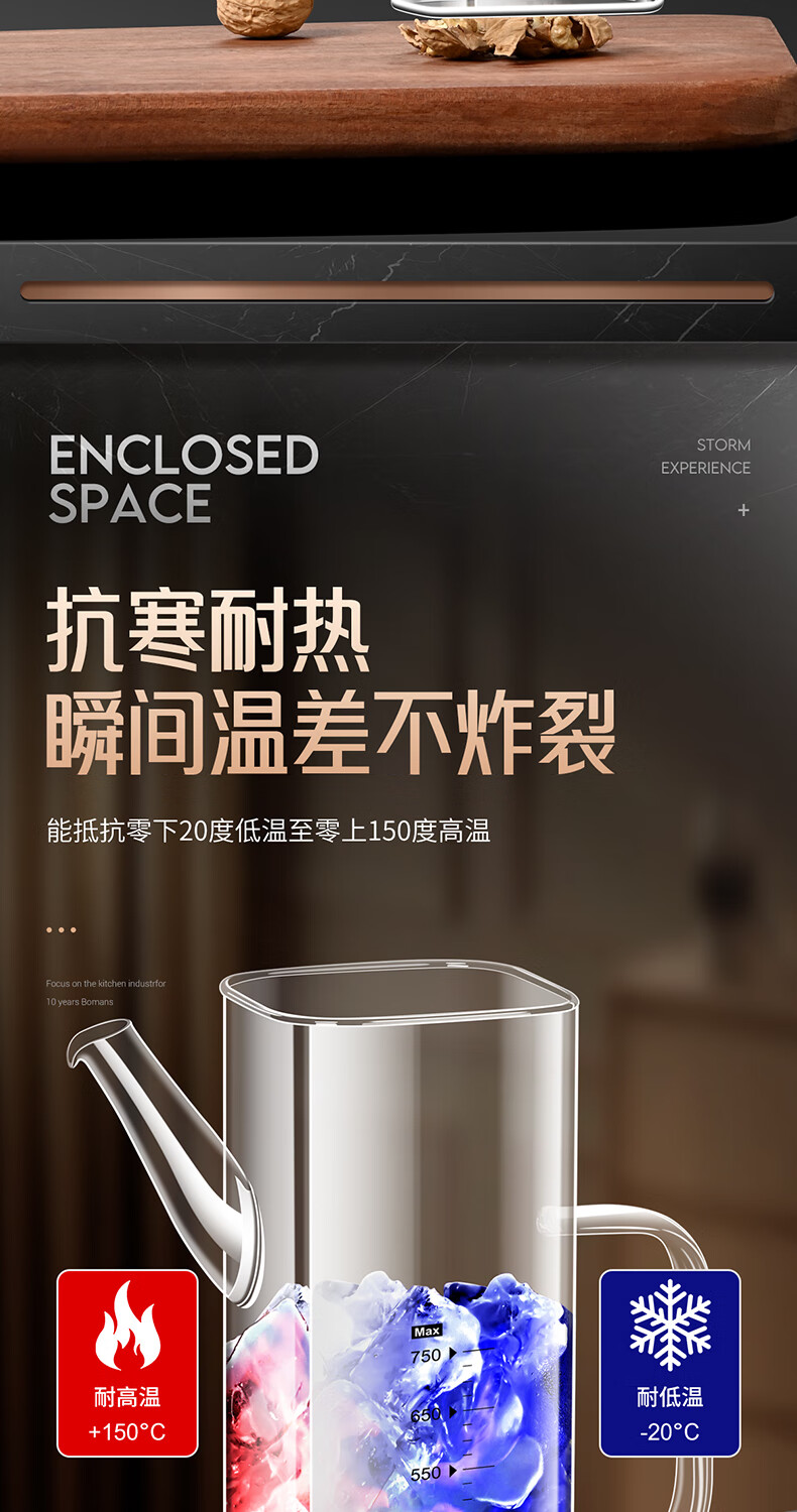 Bomans high borosilicate glass oil pot food grade oil kitchen household non-hanging oil bottle leak-proof oil soy sauce vinegar oil tank square-high borosilicate oil pot small size 550ml