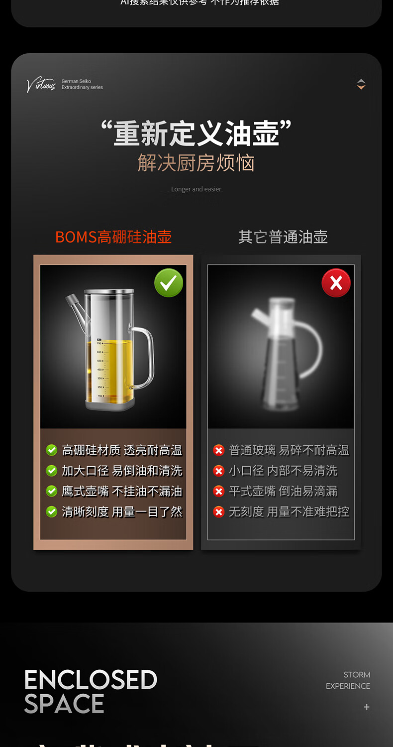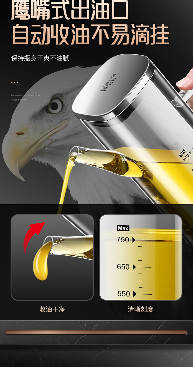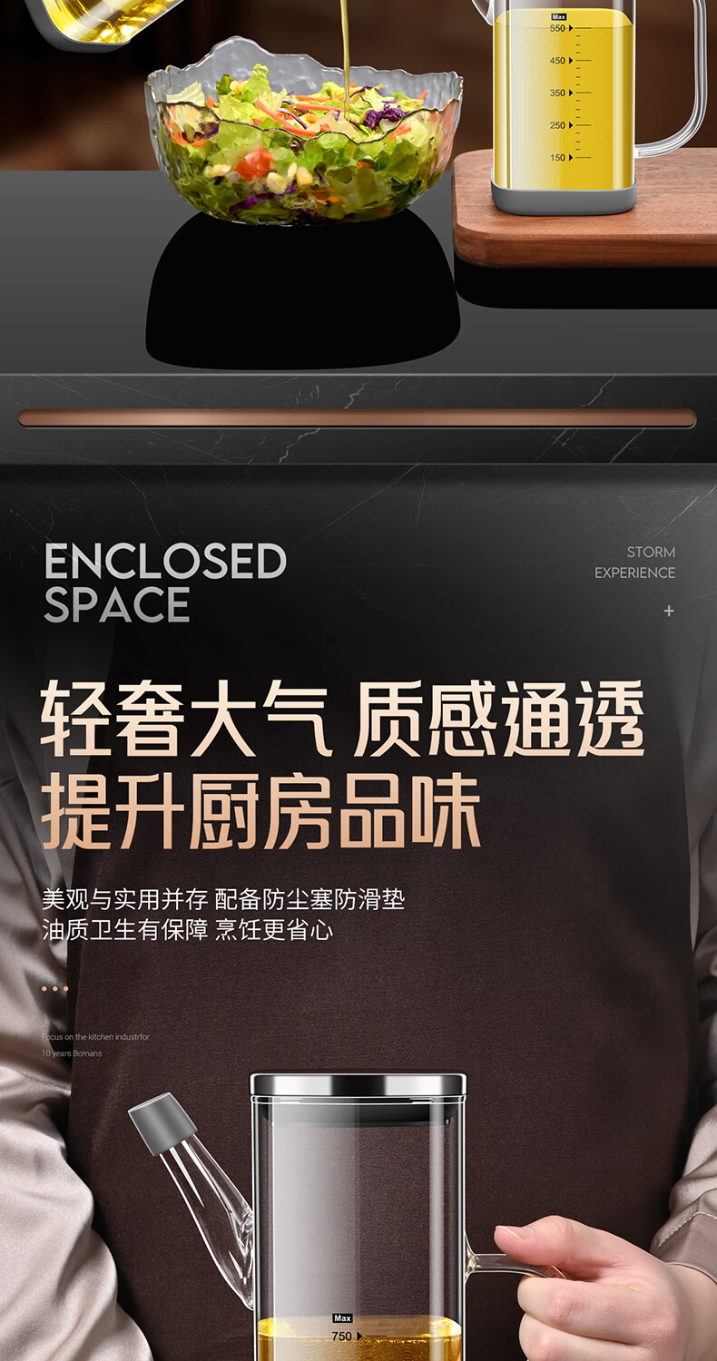 Bomans high borosilicate glass oil pot food grade oil kitchen household non-hanging oil bottle leak-proof oil soy sauce vinegar oil tank square-high borosilicate oil pot small size 550ml
