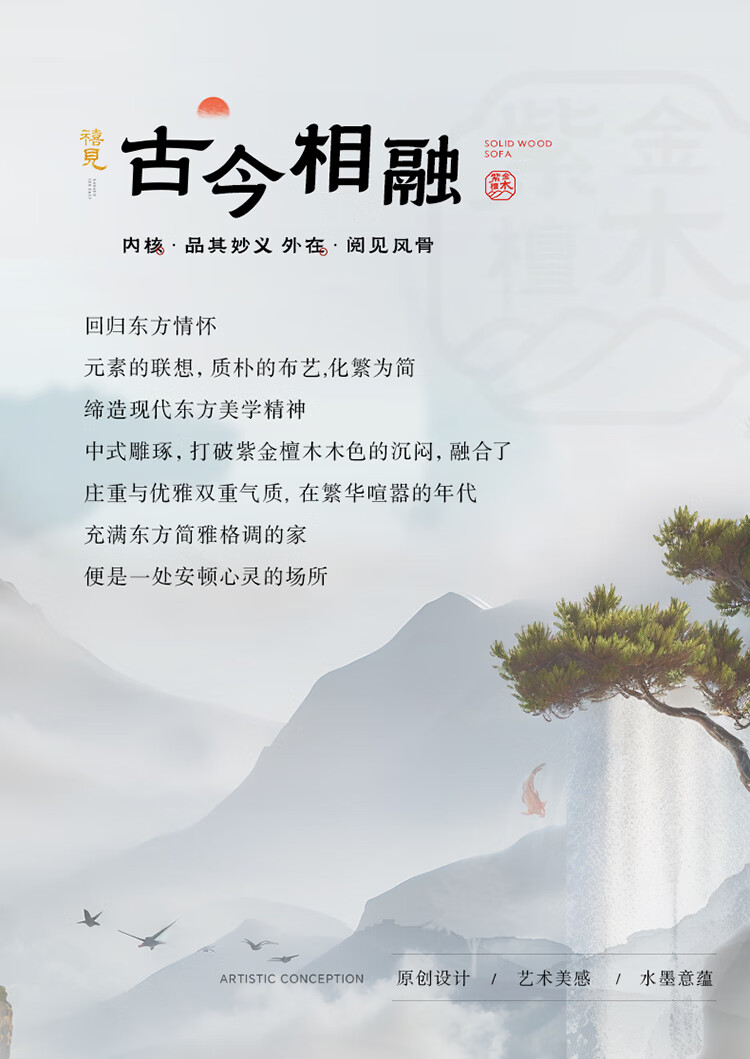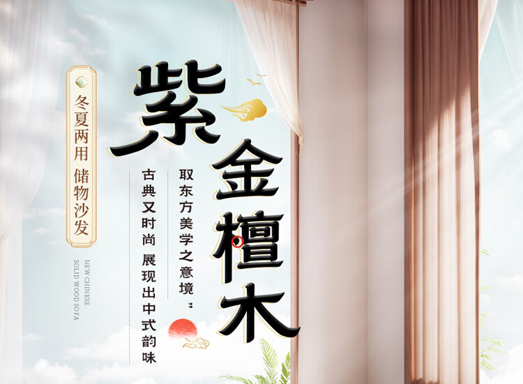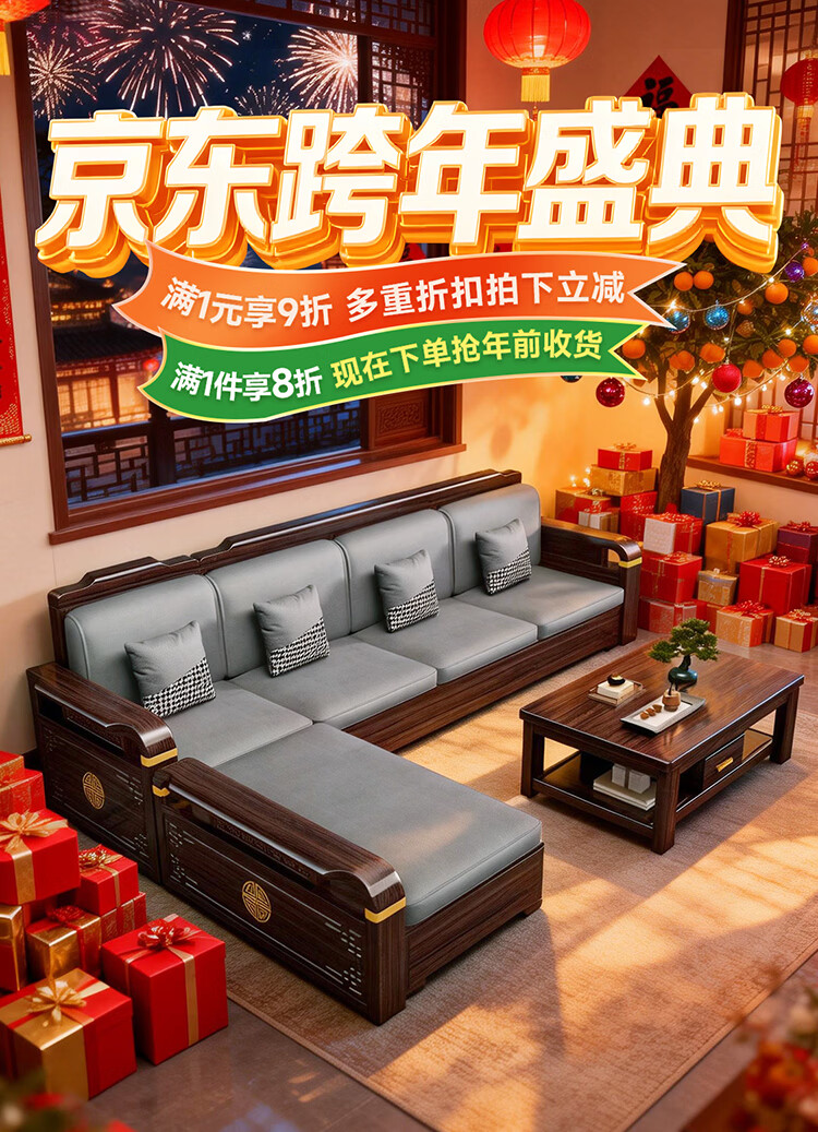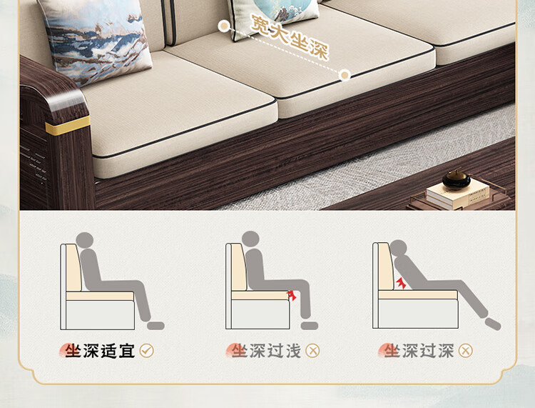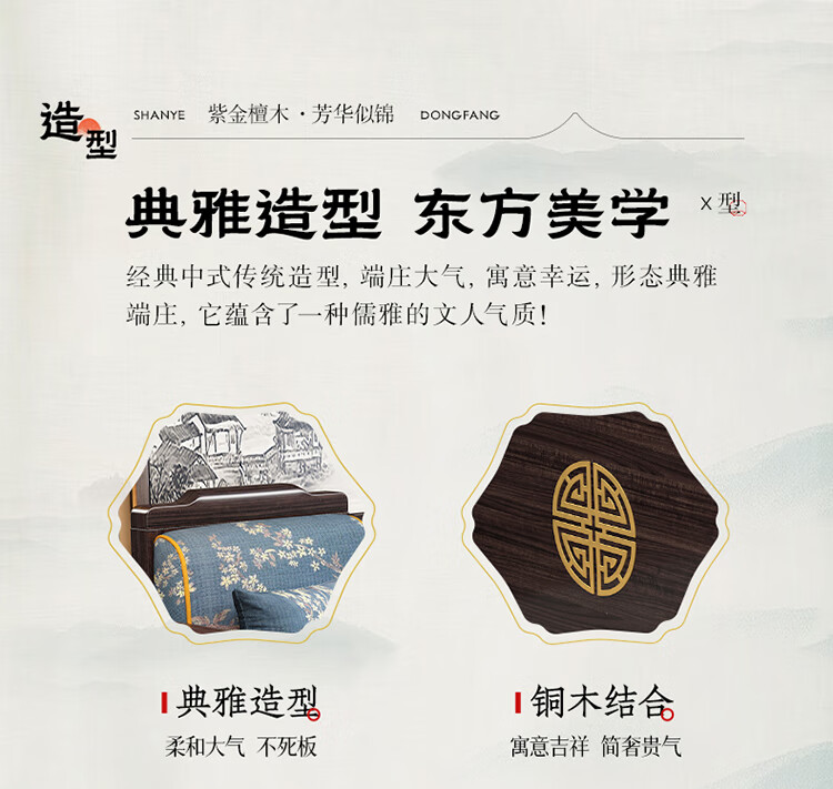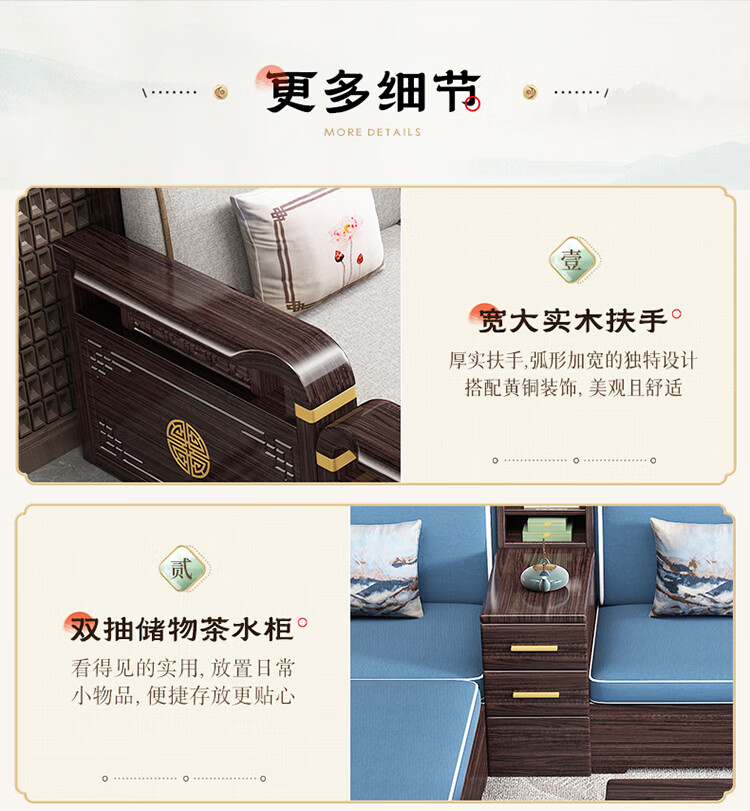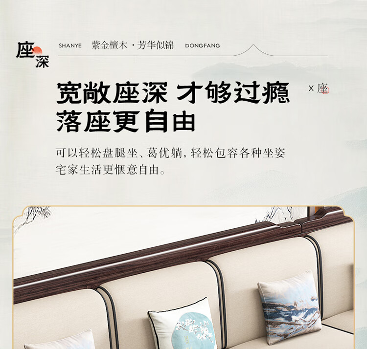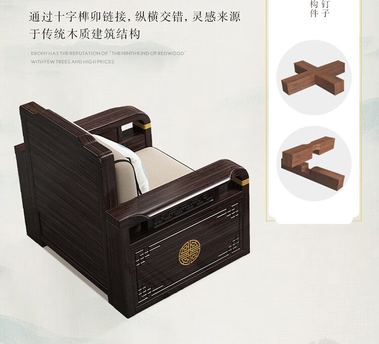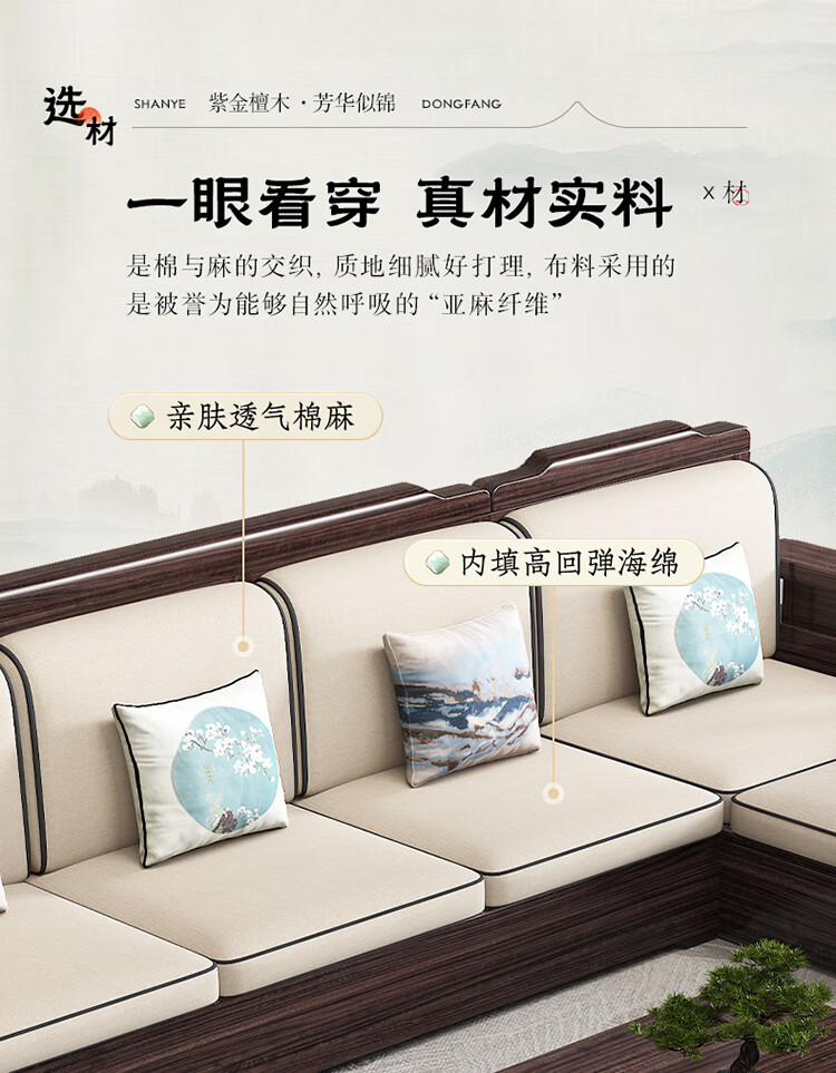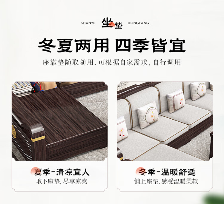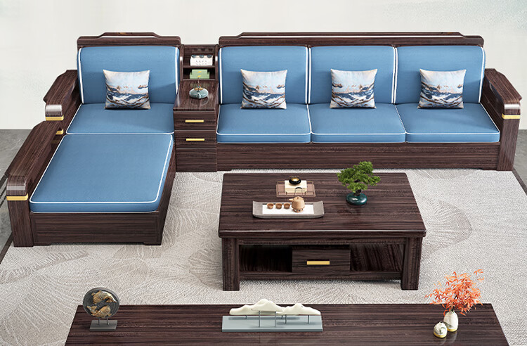 Chinese Family Sofa Solid Wood Sofa Purple Gold Sandalwood New Chinese Style Living Room Large and Small Household Winter and Summer Storage Furniture Four Seats + Imperial Concubine + Long Coffee Table Limited Loss of 10 Sets Combination Free Upgrade Cat Scratch Leather Cushion
