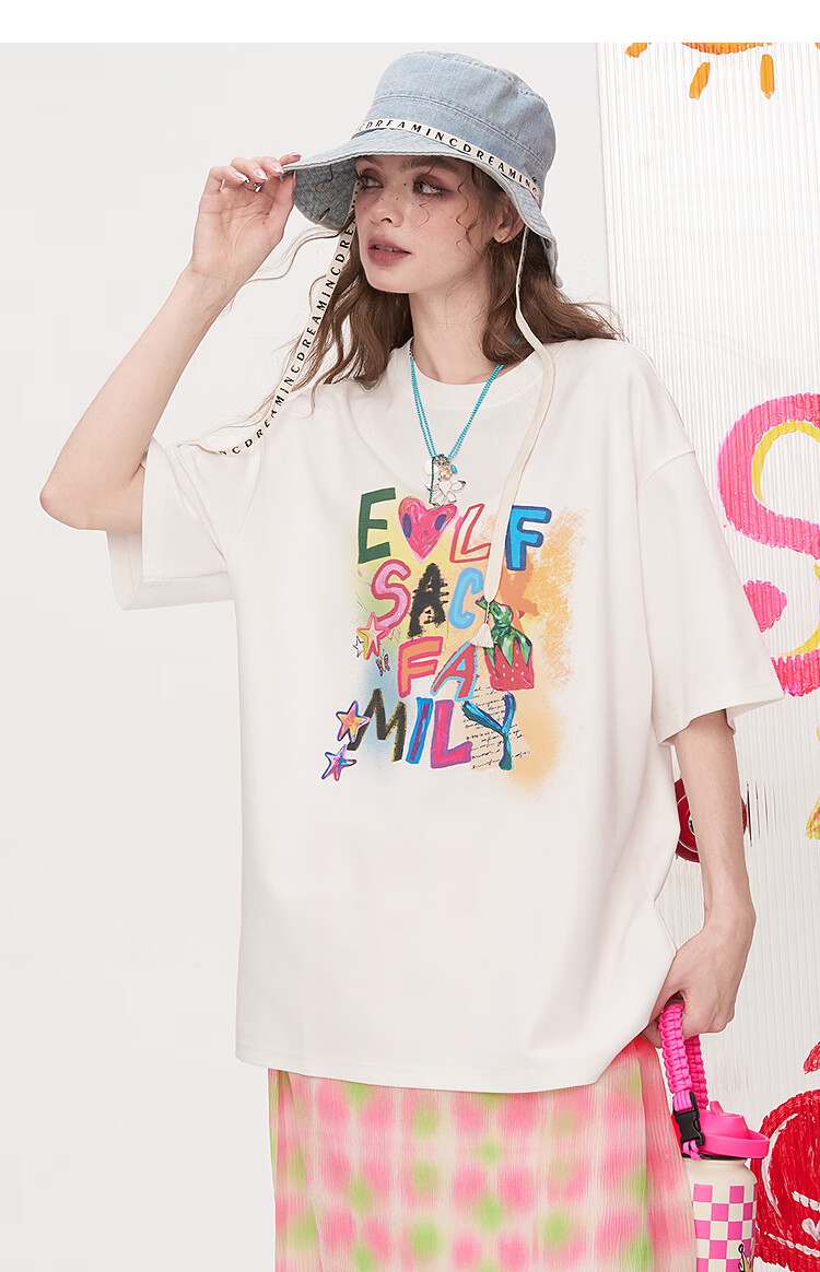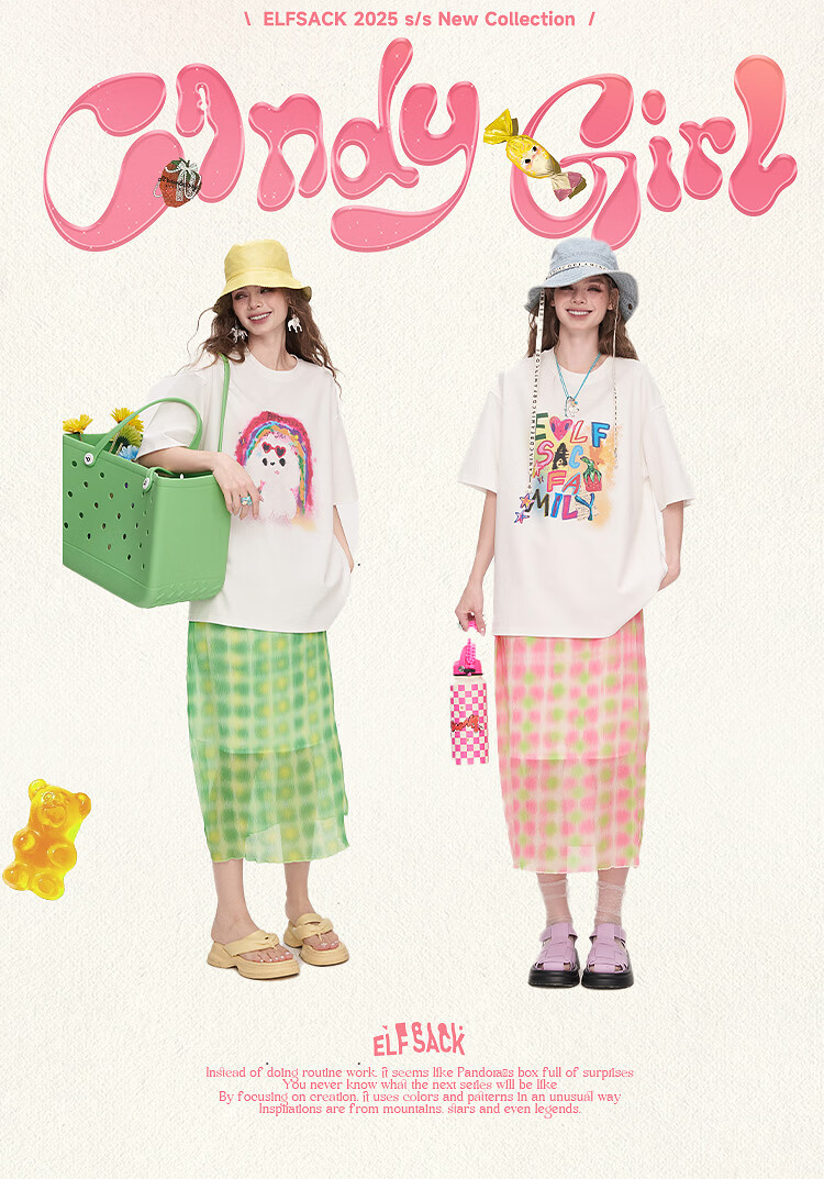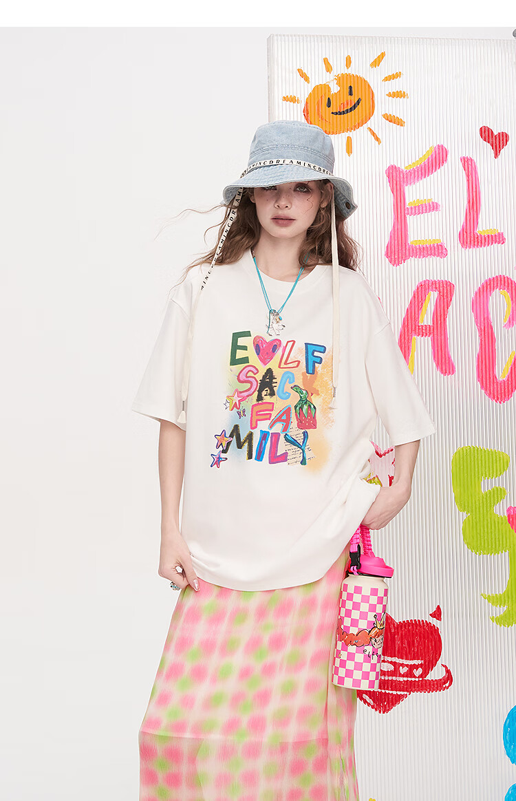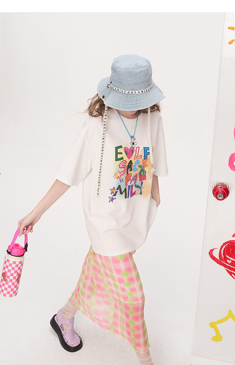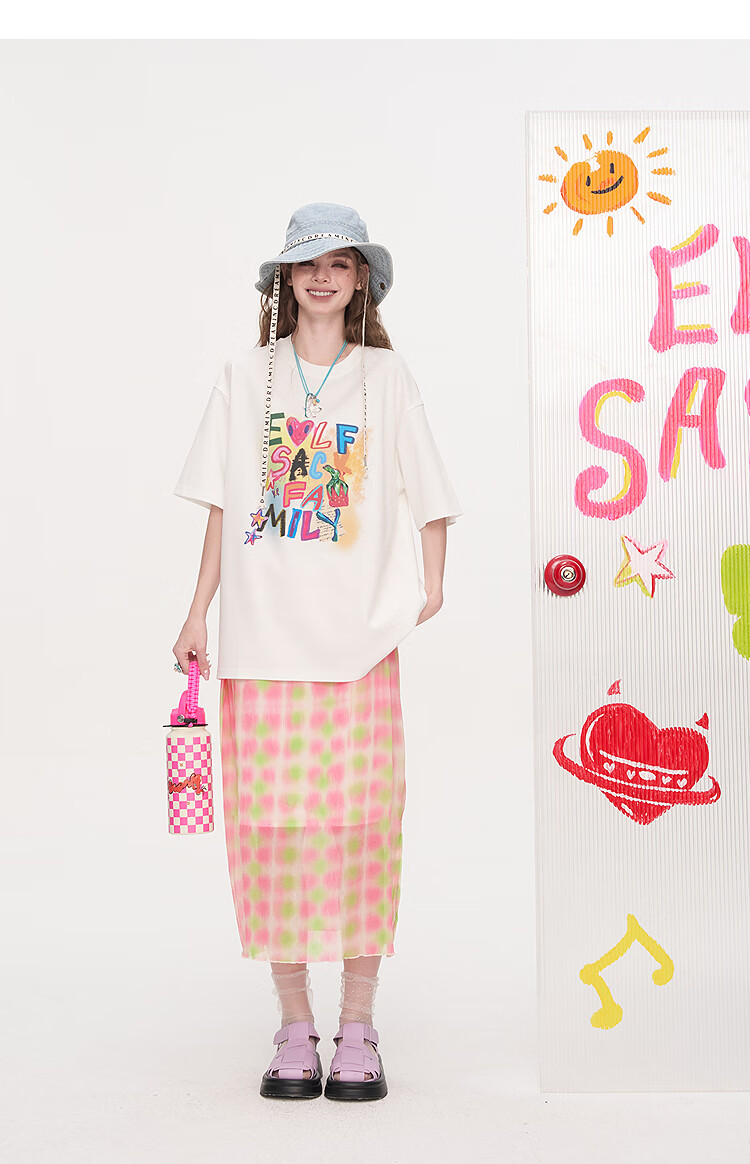 Fairy's Pocket Dopamine Chiffon Skirt Printed Short-Sleeved T-shirt Two-piece Suit Women's 2025 Summer New Letter Pink M