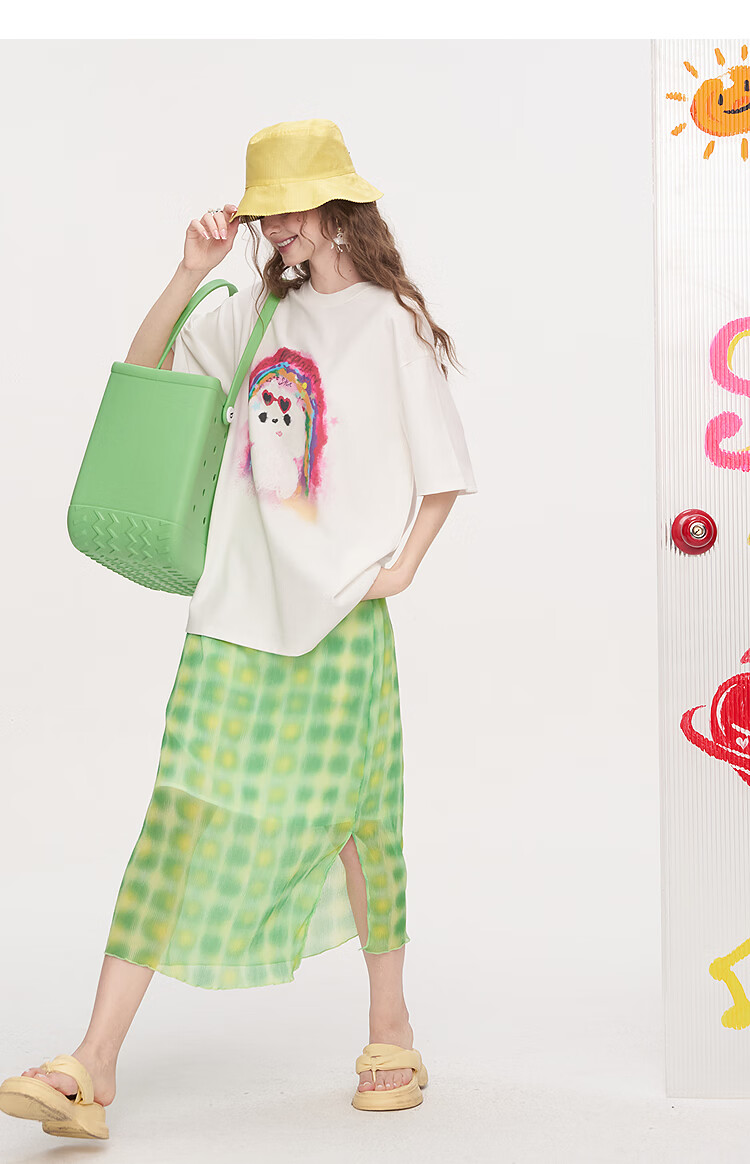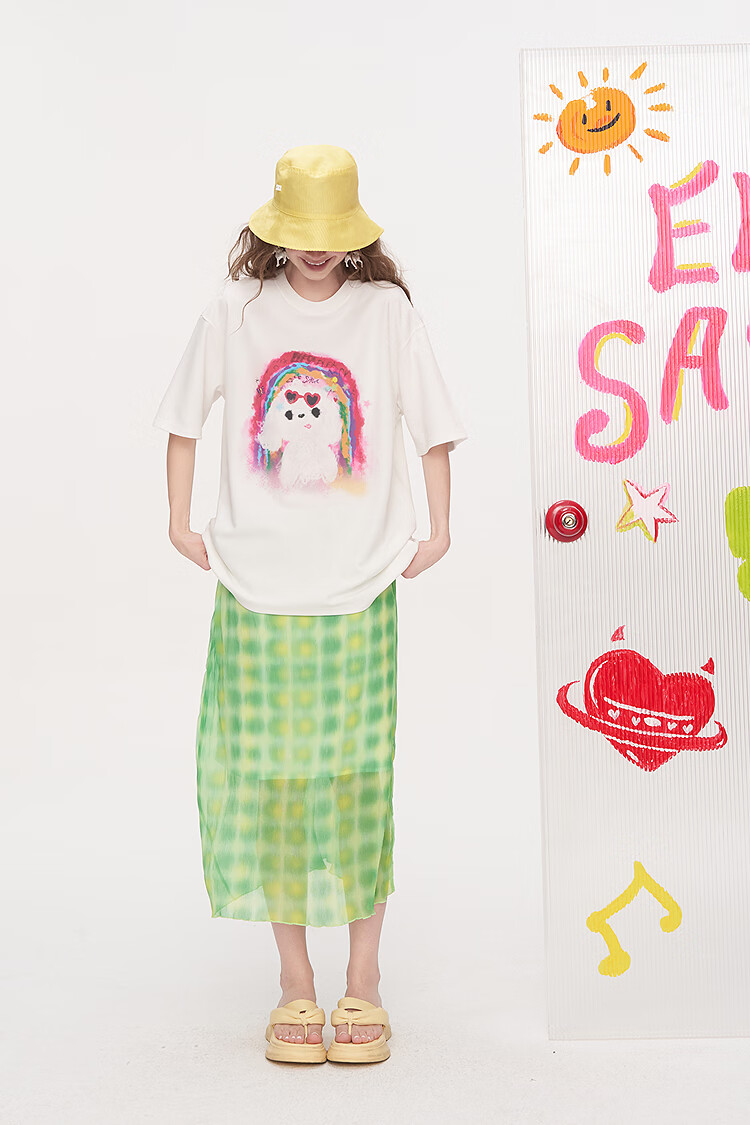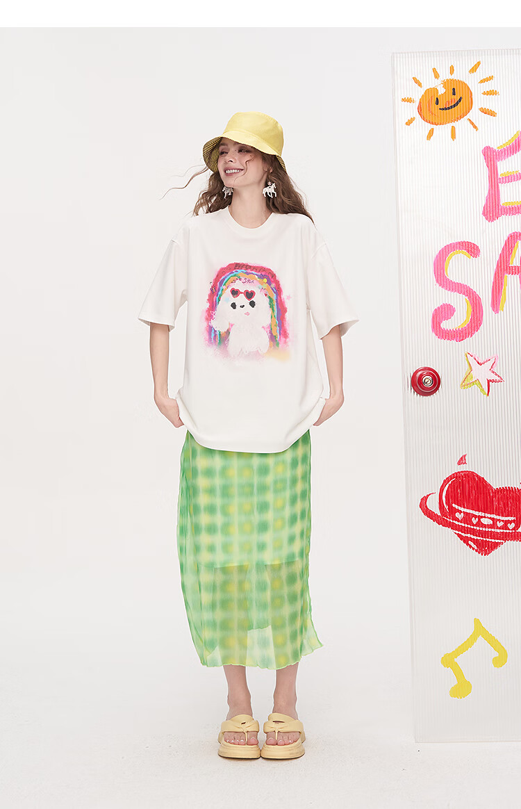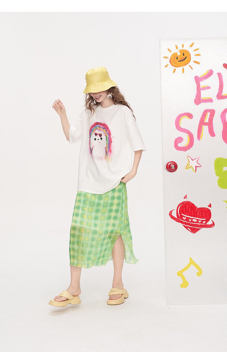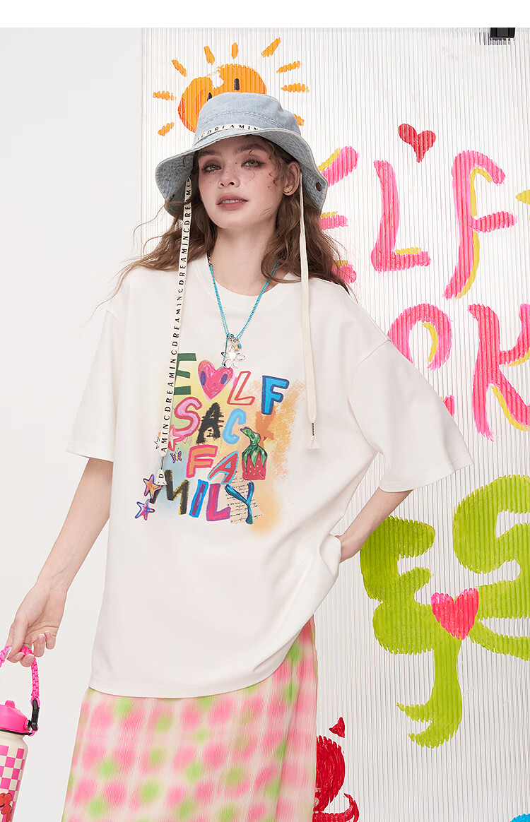 Fairy's Pocket Dopamine Chiffon Skirt Printed Short-Sleeved T-shirt Two-piece Suit Women's 2025 Summer New Letter Pink M