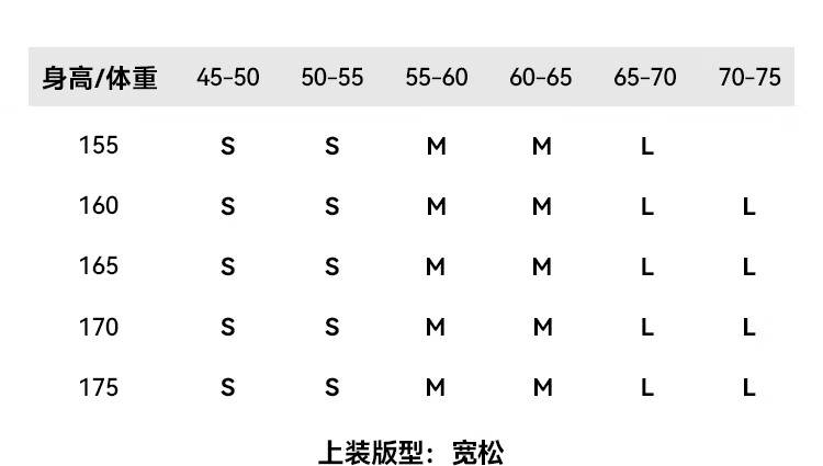 China (cm) 160-165/84-86 165-170 / 88-90 167-172 / 92-96 168-173 / 98-102 170-176 / 106-110