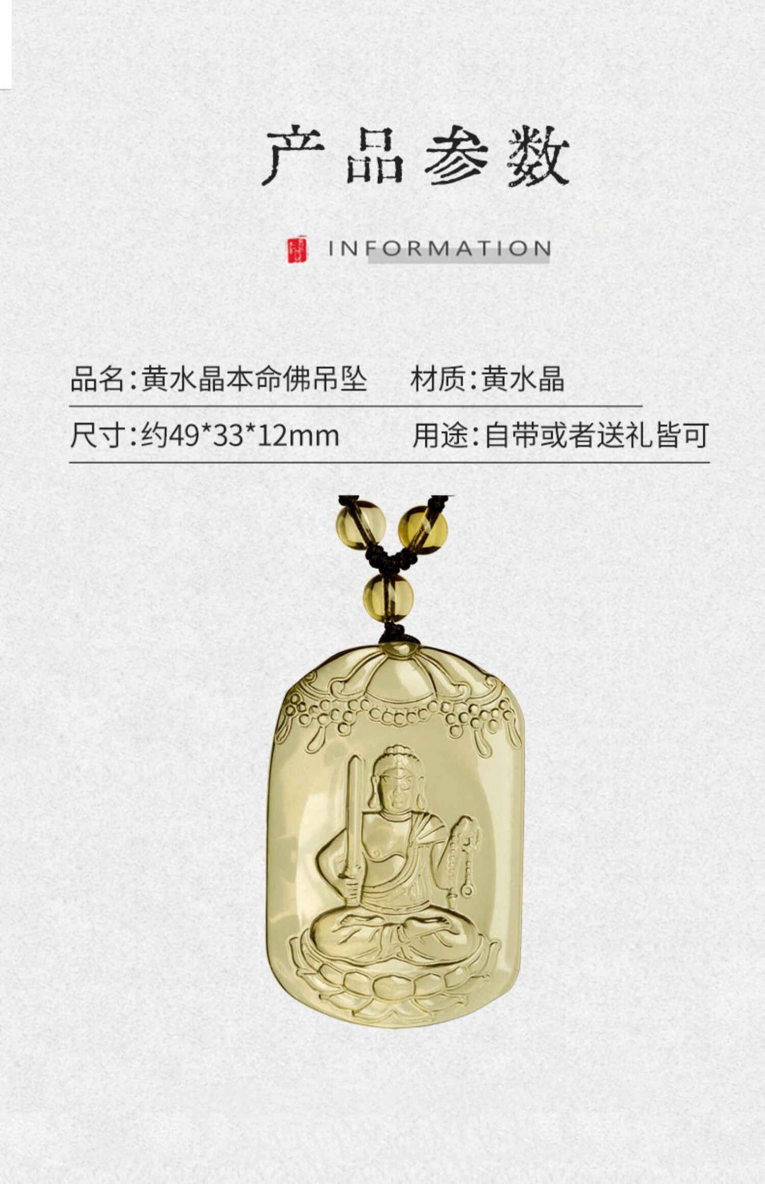 DENIFILO Brazilian 7A citrine natal Buddha necklace belongs to snake Puxian Bodhisattva pendant patron saint twelve zodiac pendant female belongs to dragon snake Puxian