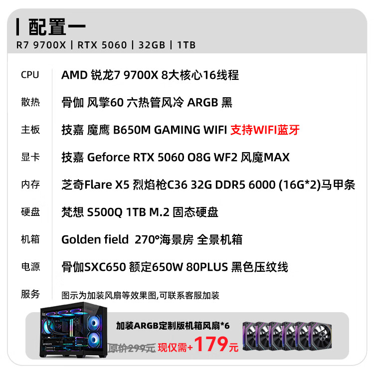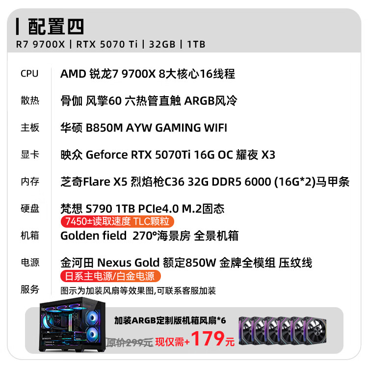 ASUS AMD Ryzen R7 9700X host RTX5070/9070XT /5070TI /5060TI graphics card assembly computer live broadcast e-sports design desktop computer host DIY 9700X+5060Ti 16G丨Configuration 2