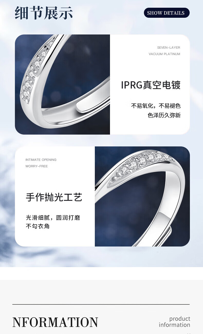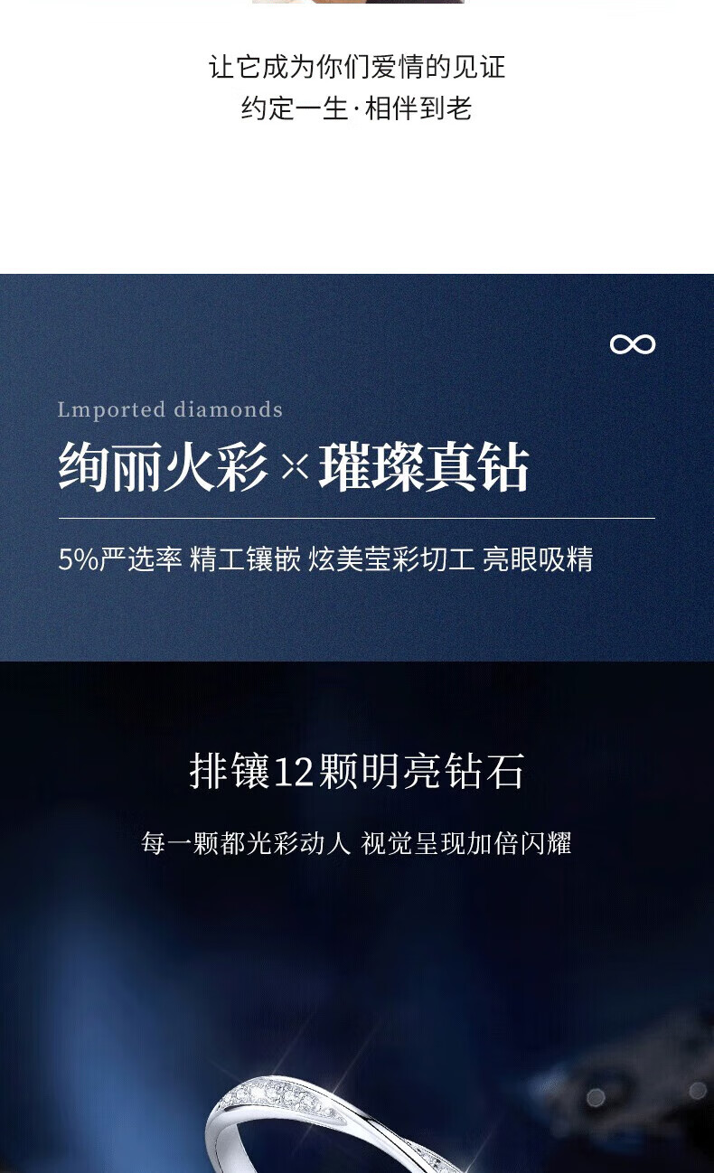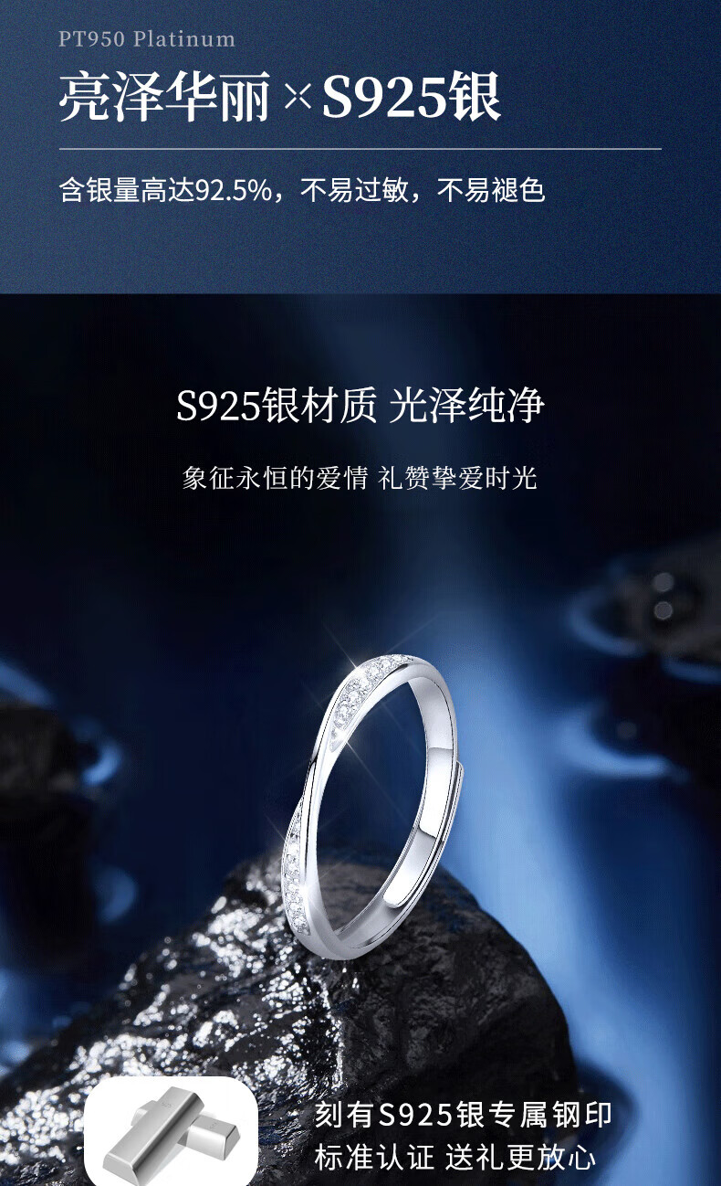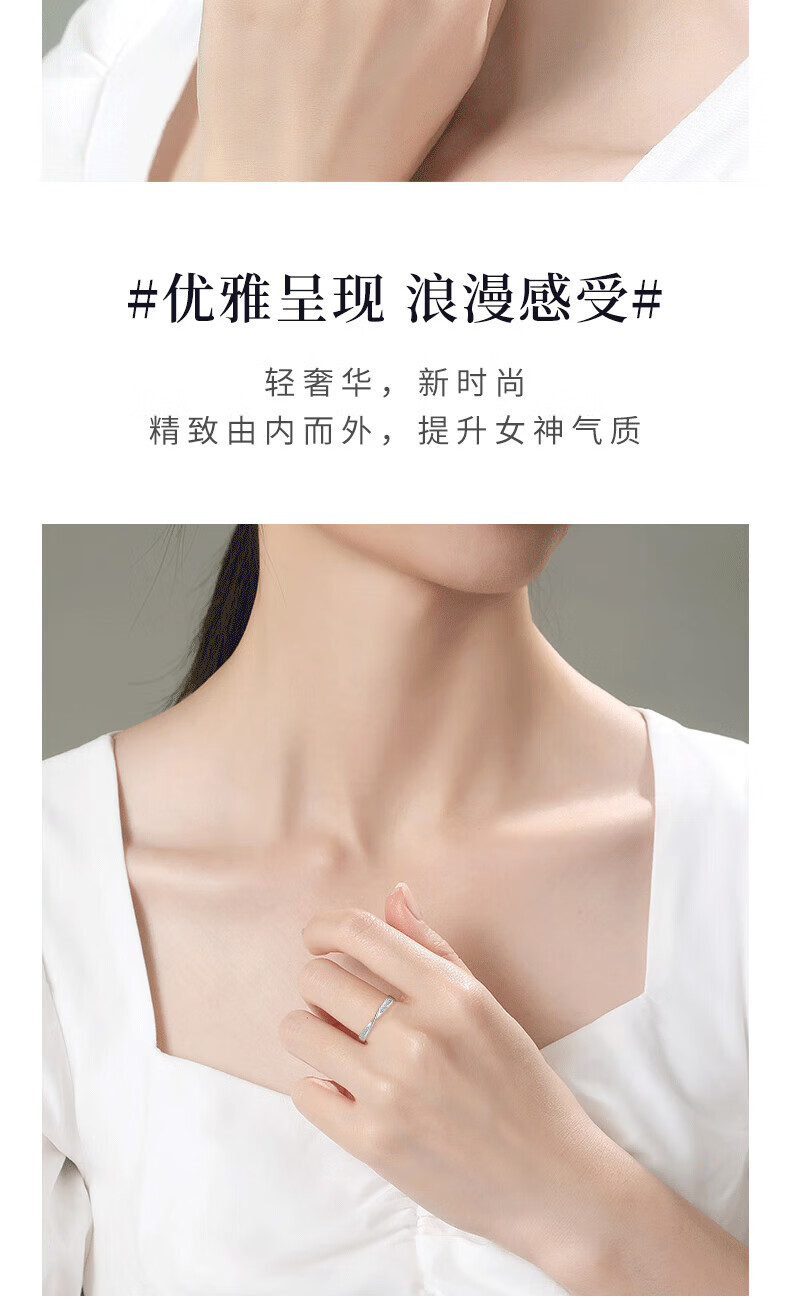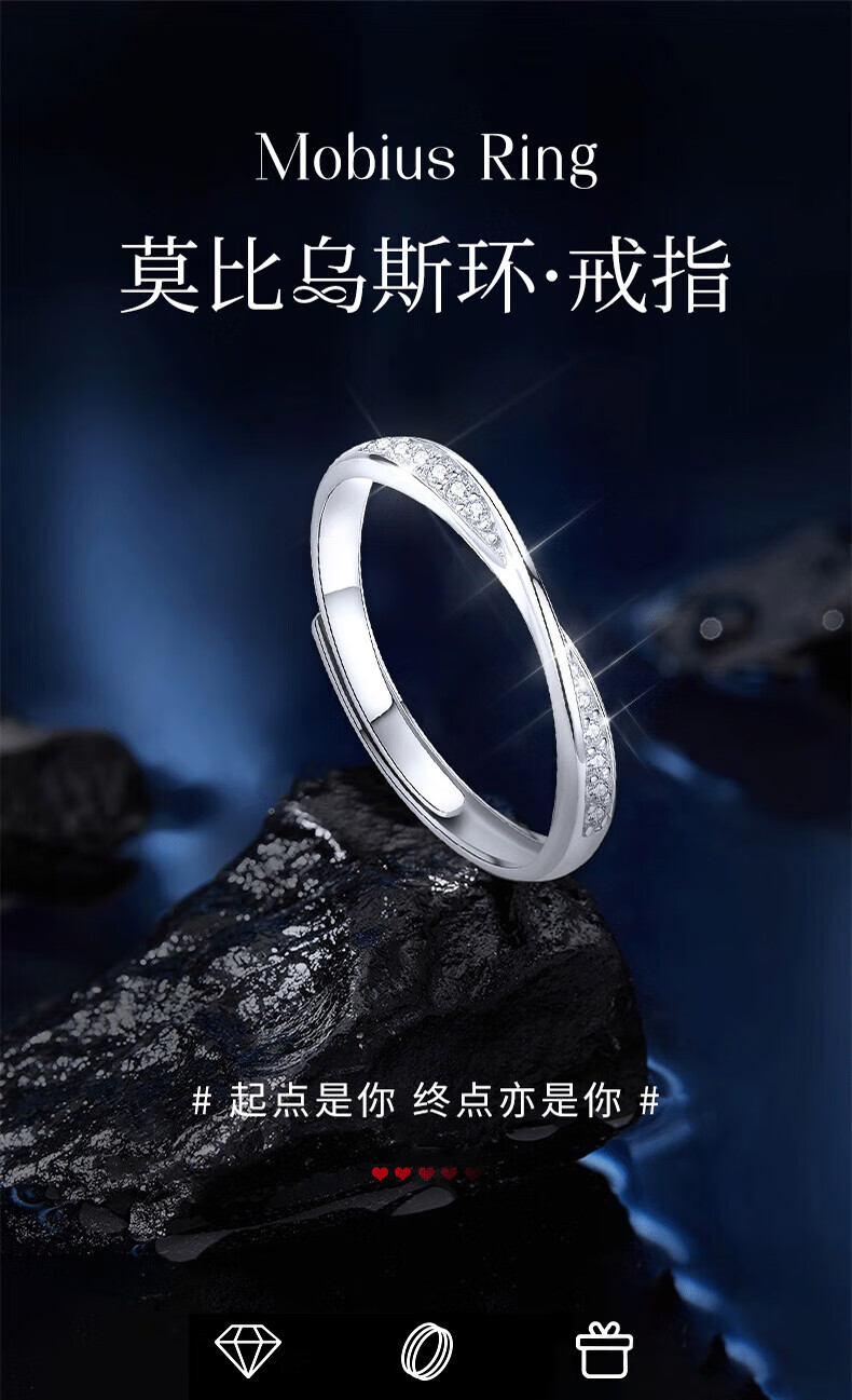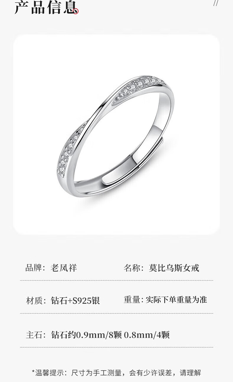 Lao Fengxiang Möbius solid silver ring for women to express love, diamond ring for women, wedding anniversary gift for girlfriend and wife, Möbius diamond ring
