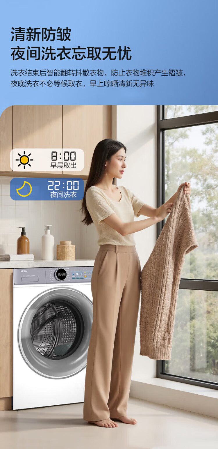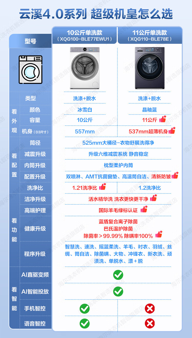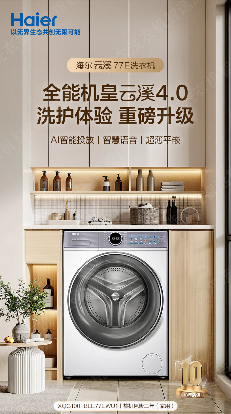 Haier Yunxi 4.0 washing machine 77E/78E drum washing machine fully automatic large capacity direct drive essence wash 2.0 ultra-thin body sterilization mite first level energy efficiency national subsidy 77E white single wash direct drive essence wash 2.0+1.21 high cleaning ratio single wash
