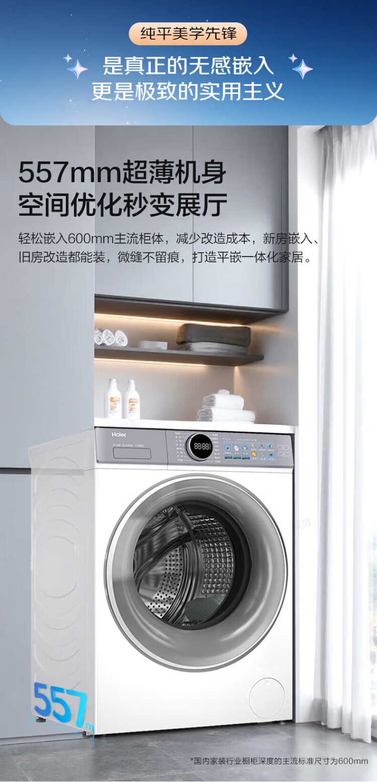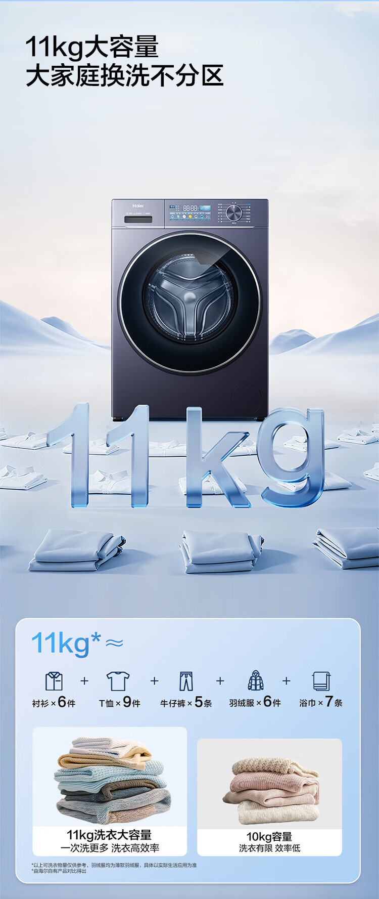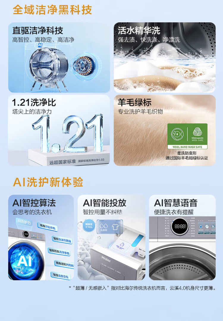 Haier Yunxi 4.0 washing machine 77E/78E drum washing machine fully automatic large capacity direct drive essence wash 2.0 ultra-thin body sterilization mite first level energy efficiency national subsidy 77E white single wash direct drive essence wash 2.0+1.21 high cleaning ratio single wash