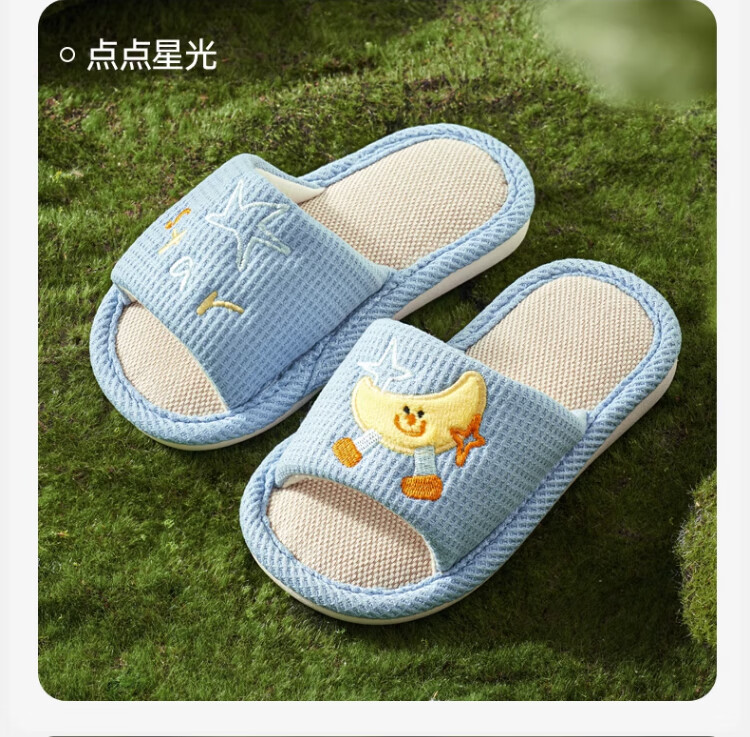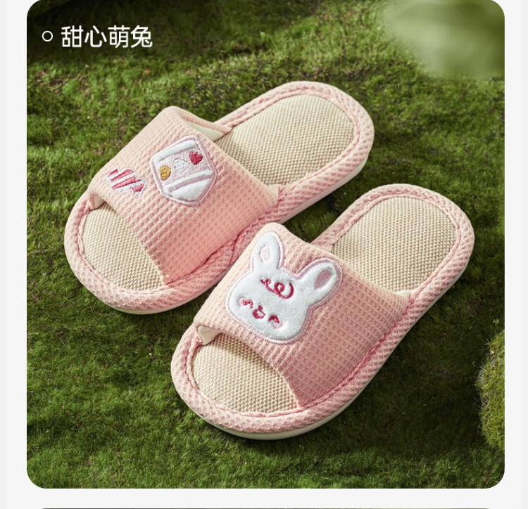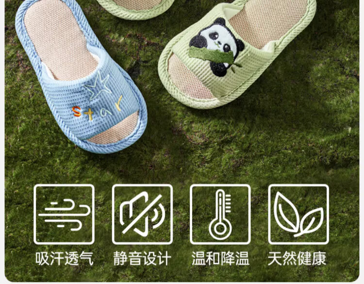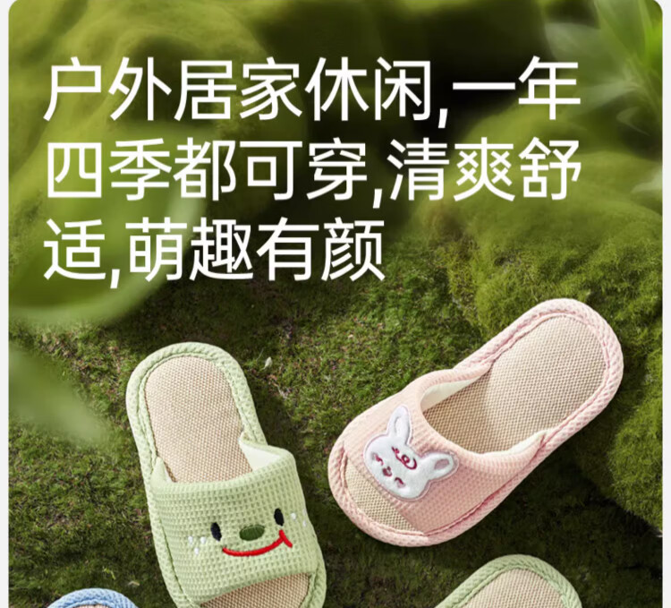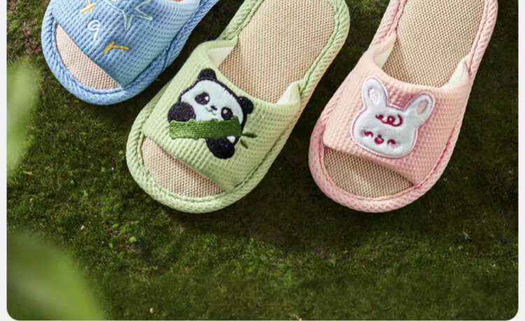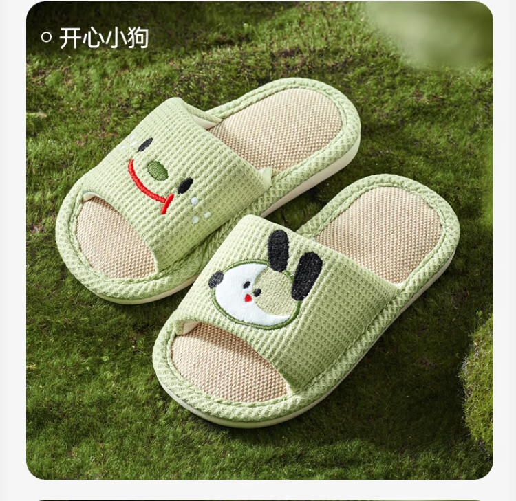 OUYUN children's linen slippers summer boys indoor non-slip 2025 new girls four-season baby cloth happy puppy 16 cm suitable for feet 14cml 1-2 years old