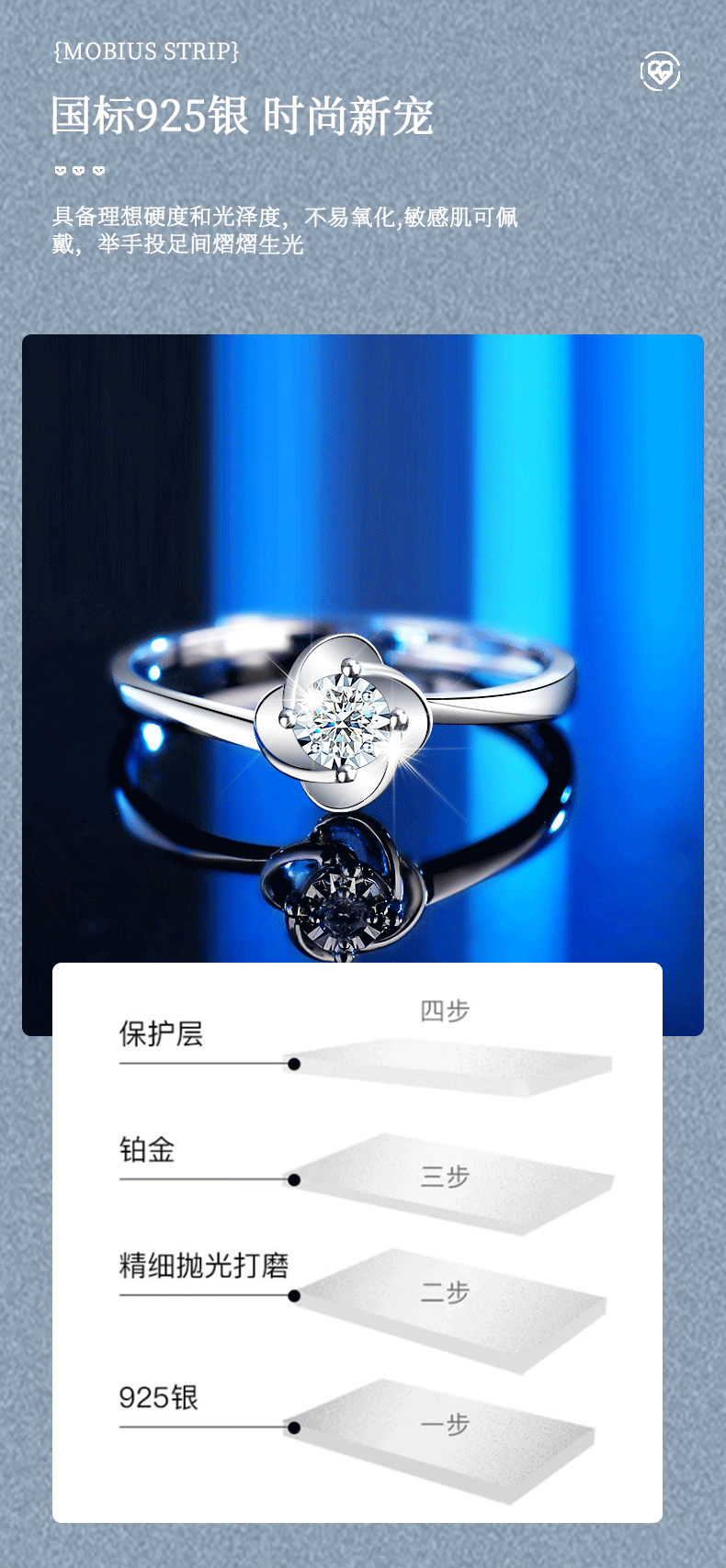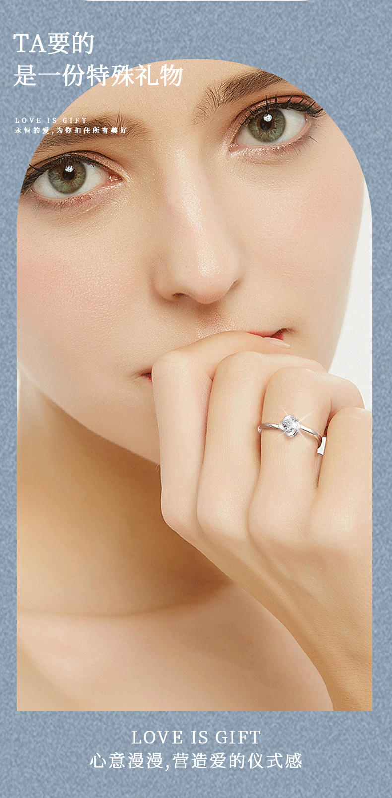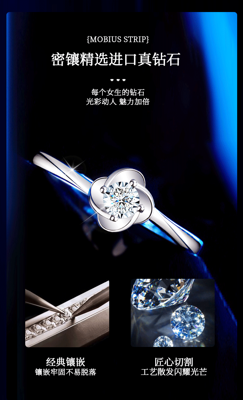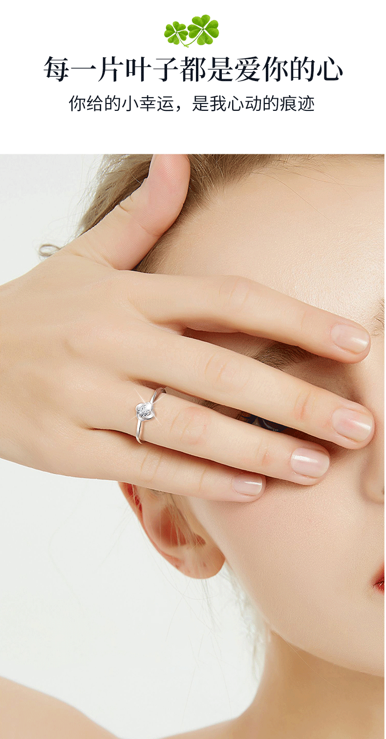 Lao Fengxiang eternal four-leaf clover diamond ring ladies proposal diamond ring wedding anniversary gift for girlfriend and wife eternal four-leaf clover diamond ring