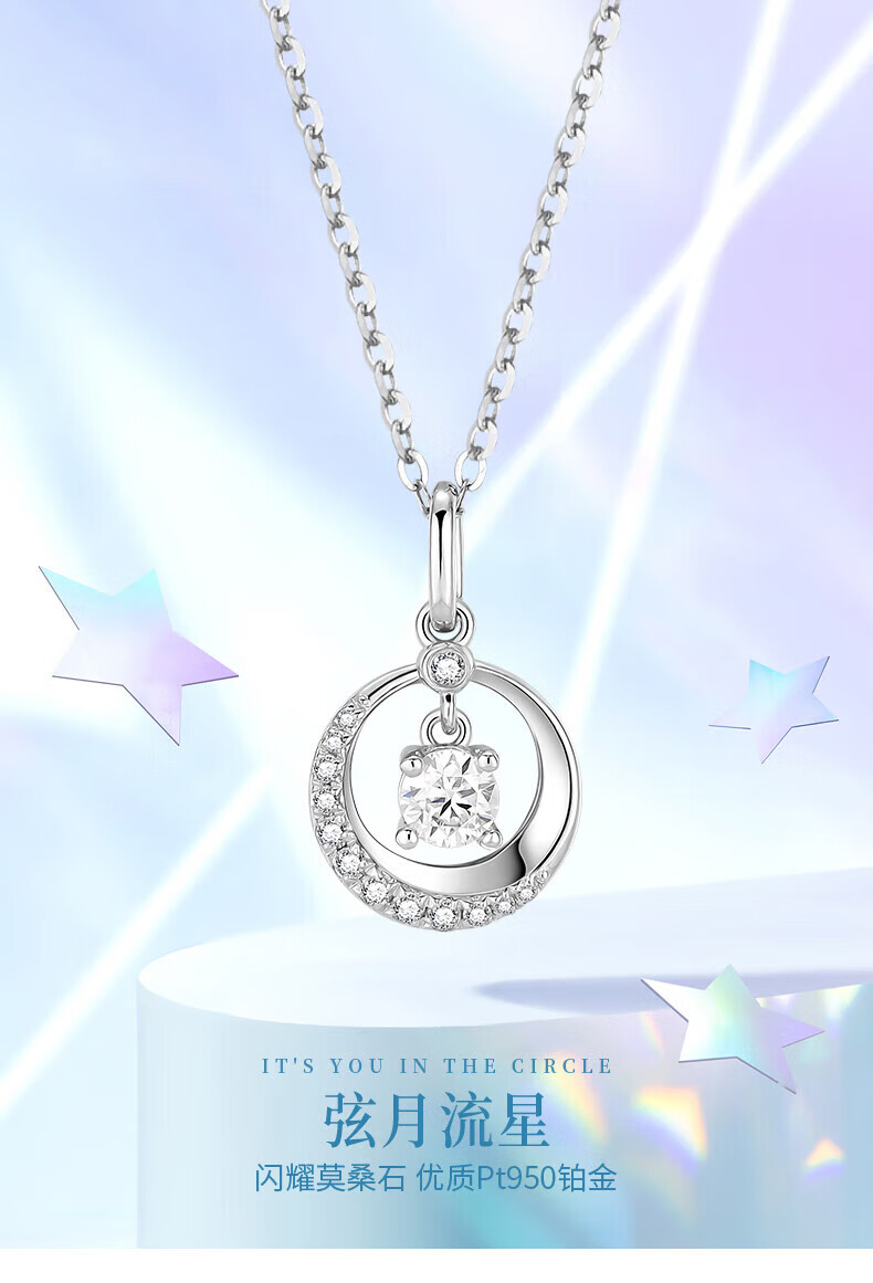 Dirholl Light Luxury PT950 Platinum Necklace Mosanzan Pendant Fashionable Clavicle Chain Valentine's Day Gift for Girlfriend and Wife Platinum Necklace High-End Gift Box