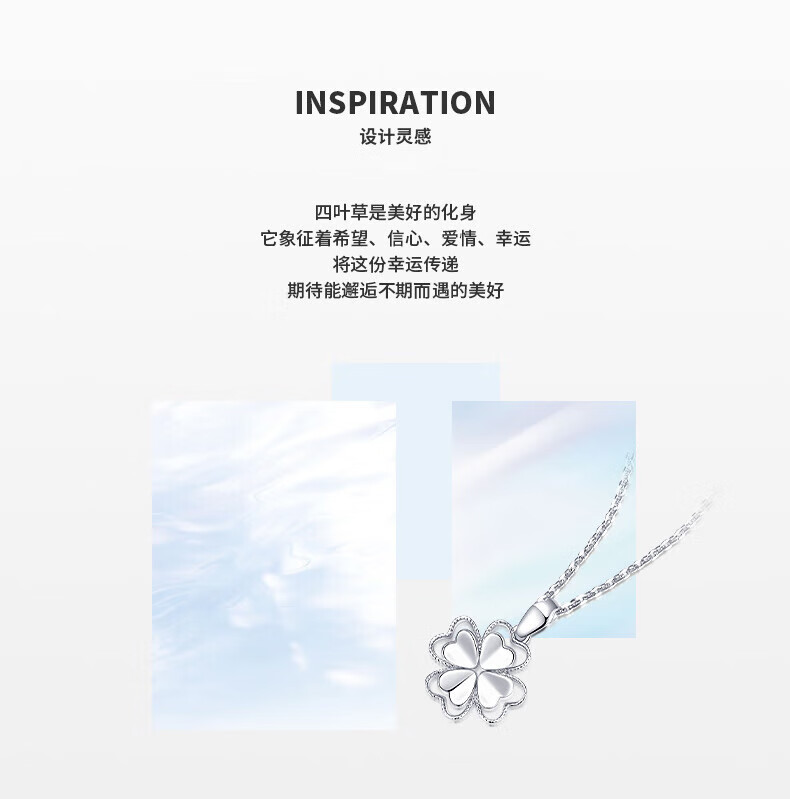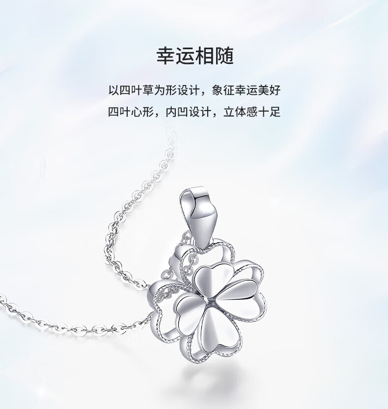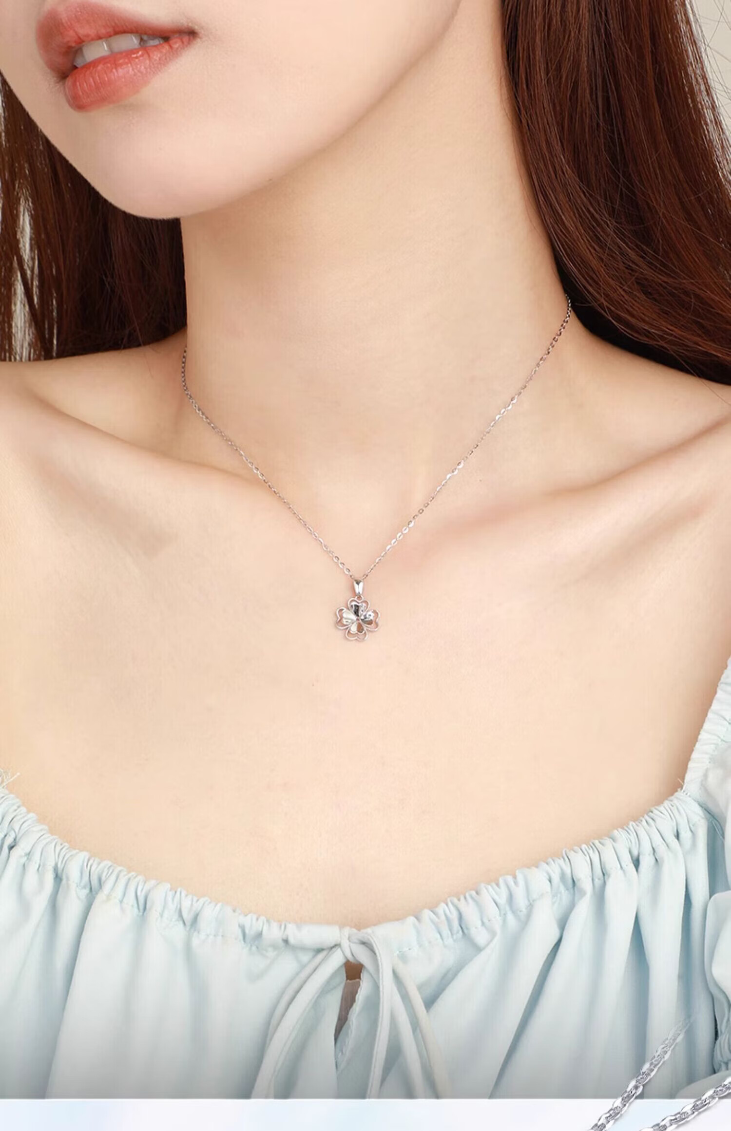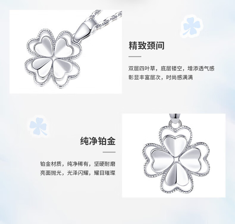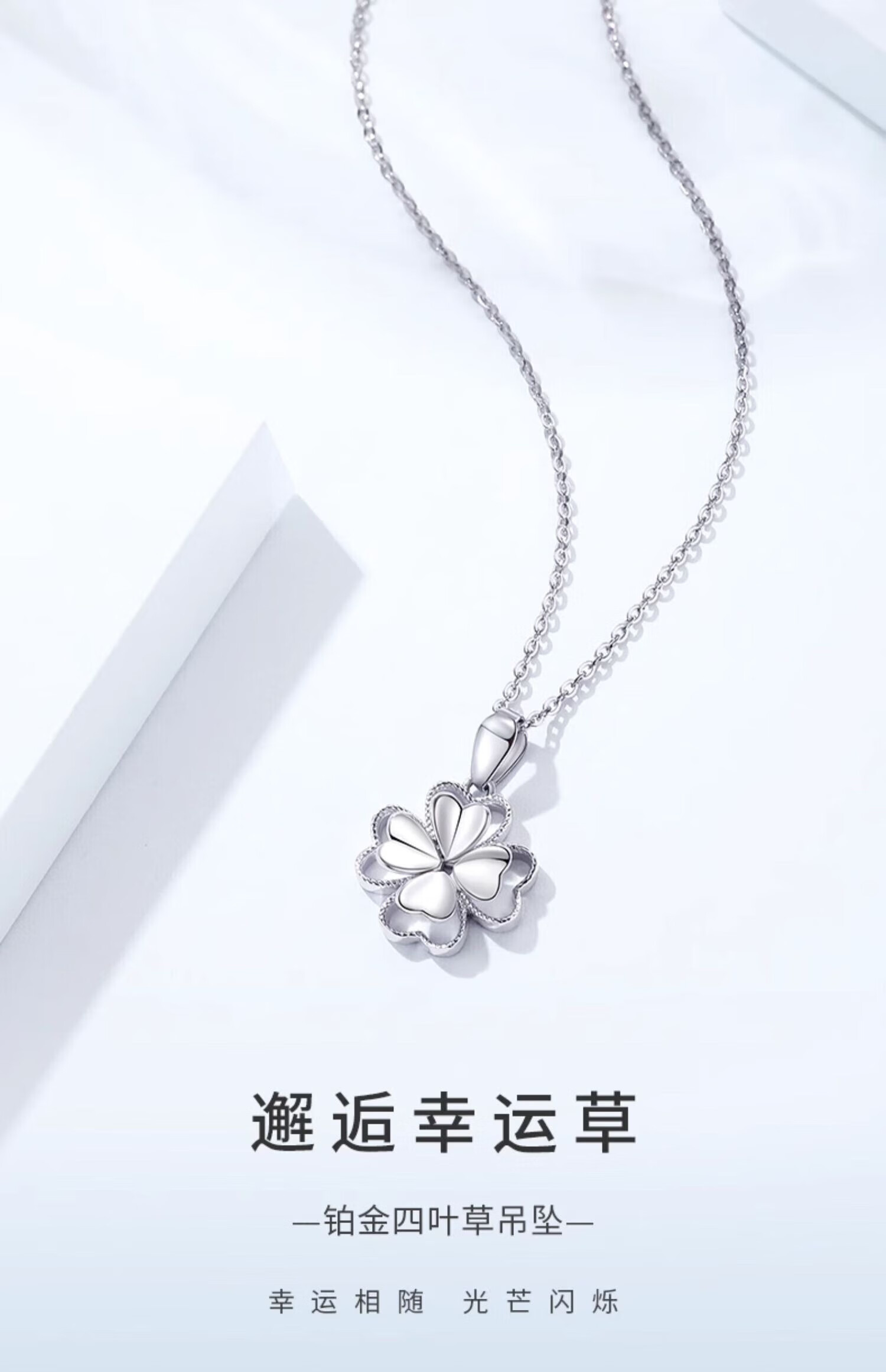 Dirholl encounters four-leaf clover necklace for women, light luxury niche necklace, can be engraved, Valentine's Day birthday gift for girlfriend and wife, PT950 necklace + silver-plated platinum gold pendant