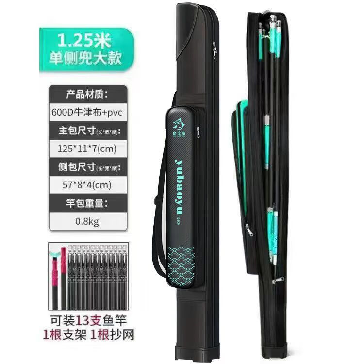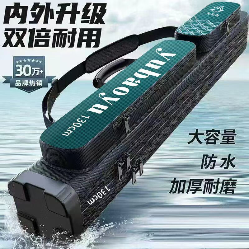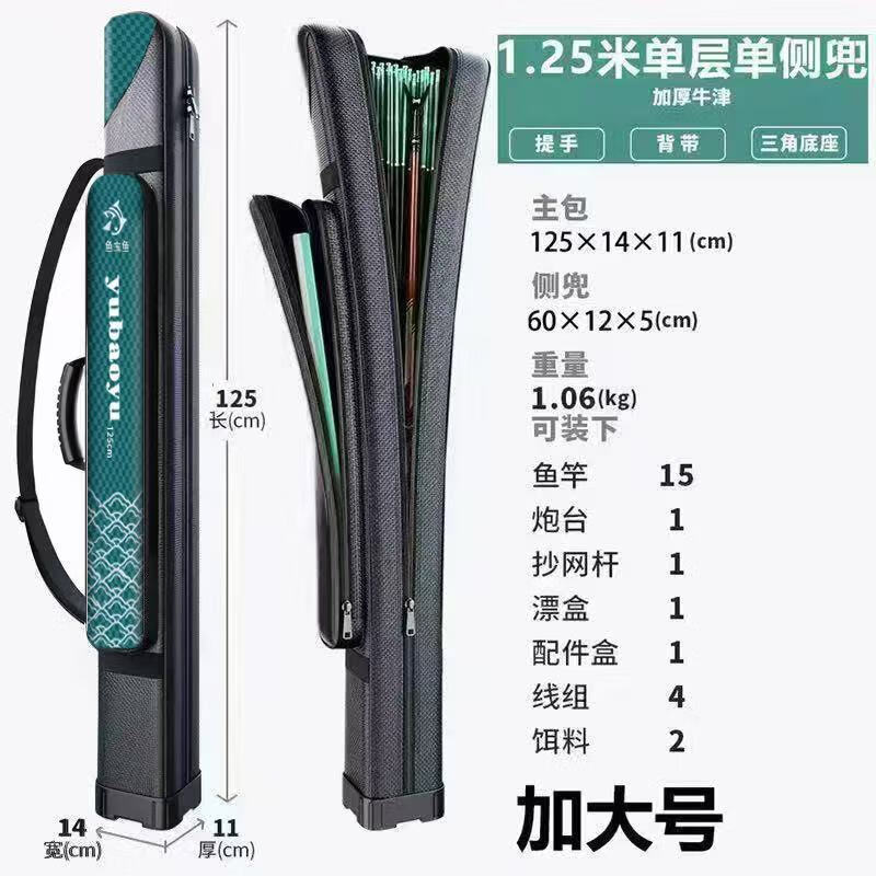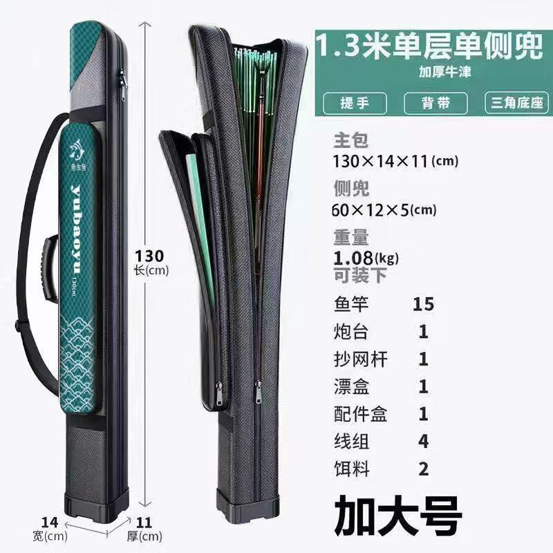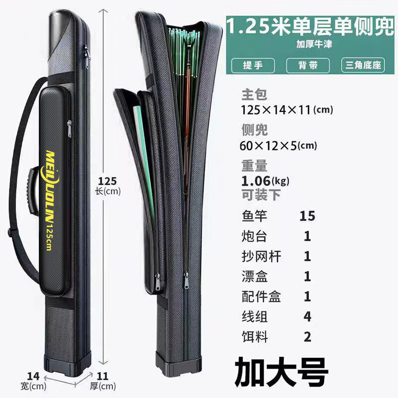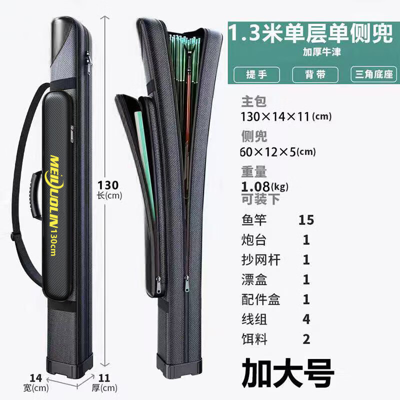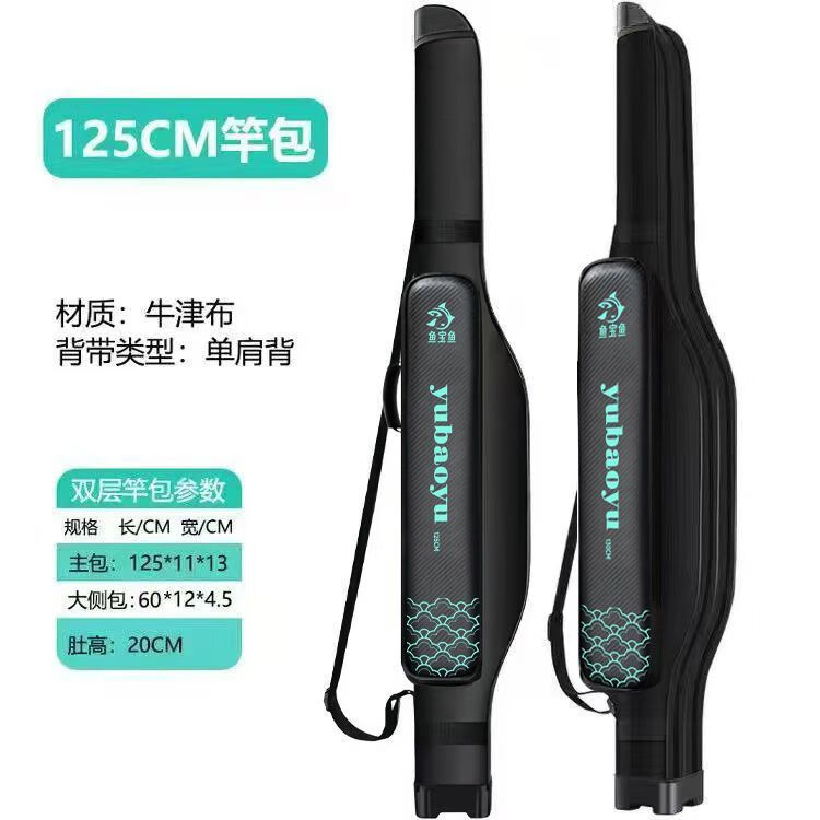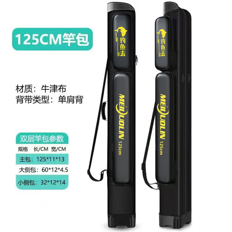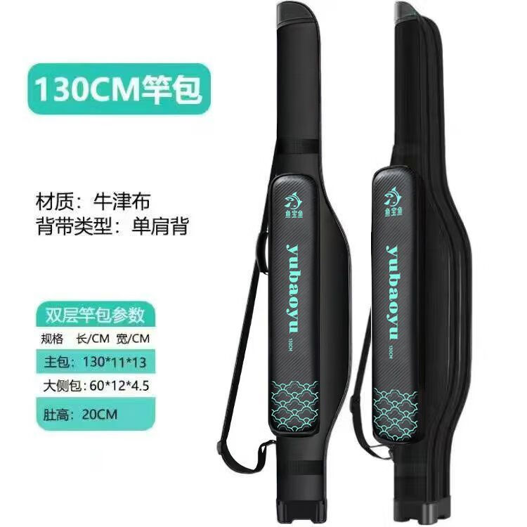 Fishing rod bag, big belly bag, lightweight, thickened and wear-resistant fishing gear bag, fishing bag, sea rod bag, sea rod bag, 1.25 meters, two layers, black gold, 1.3 meters, single layer, small size