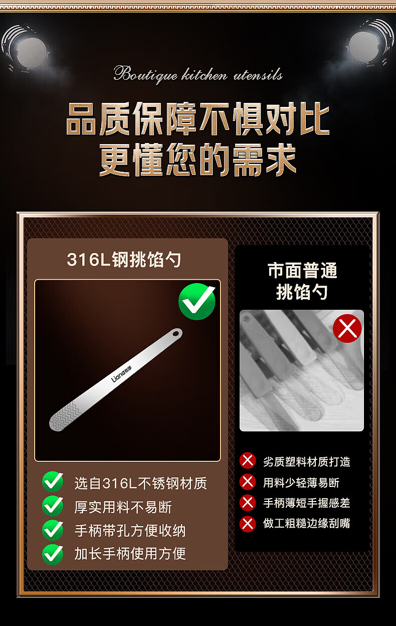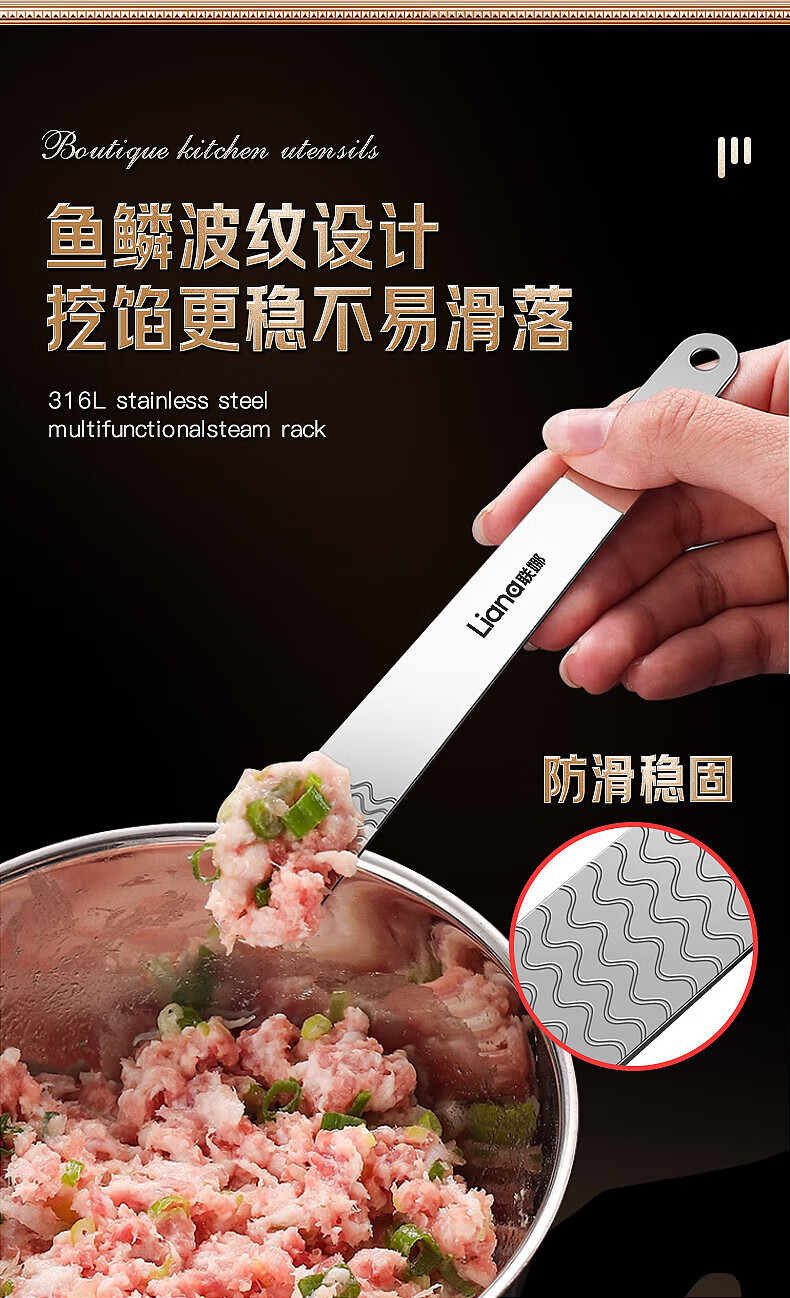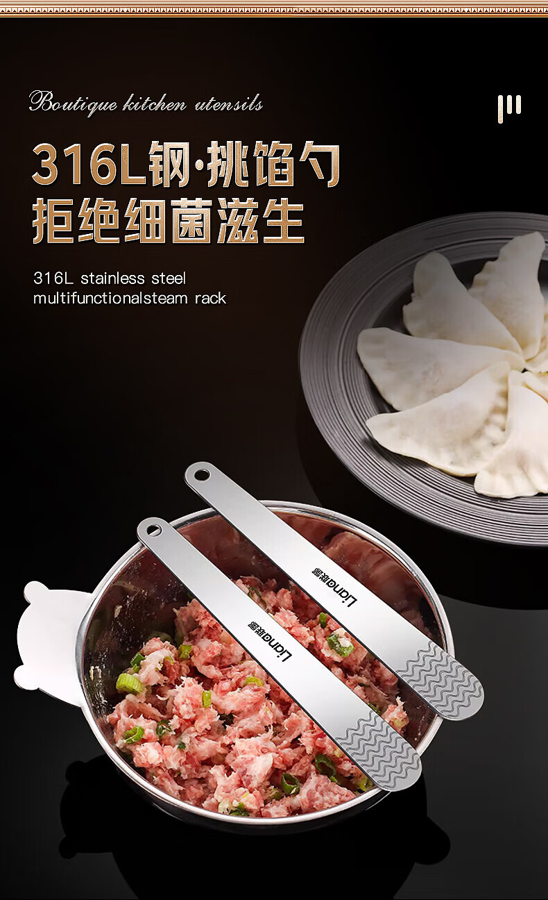 Lianna 316L one-piece stainless steel dumpling filling spoon wonton dumpling tool filling spoon filling picking artifact 316 filling spoon 2 pieces